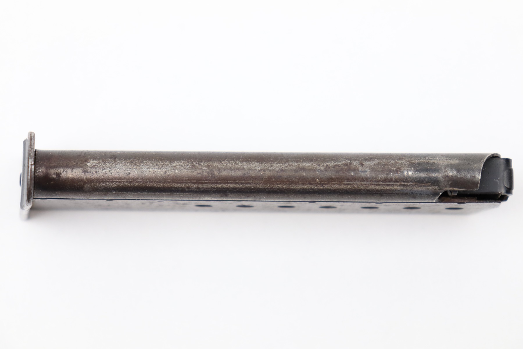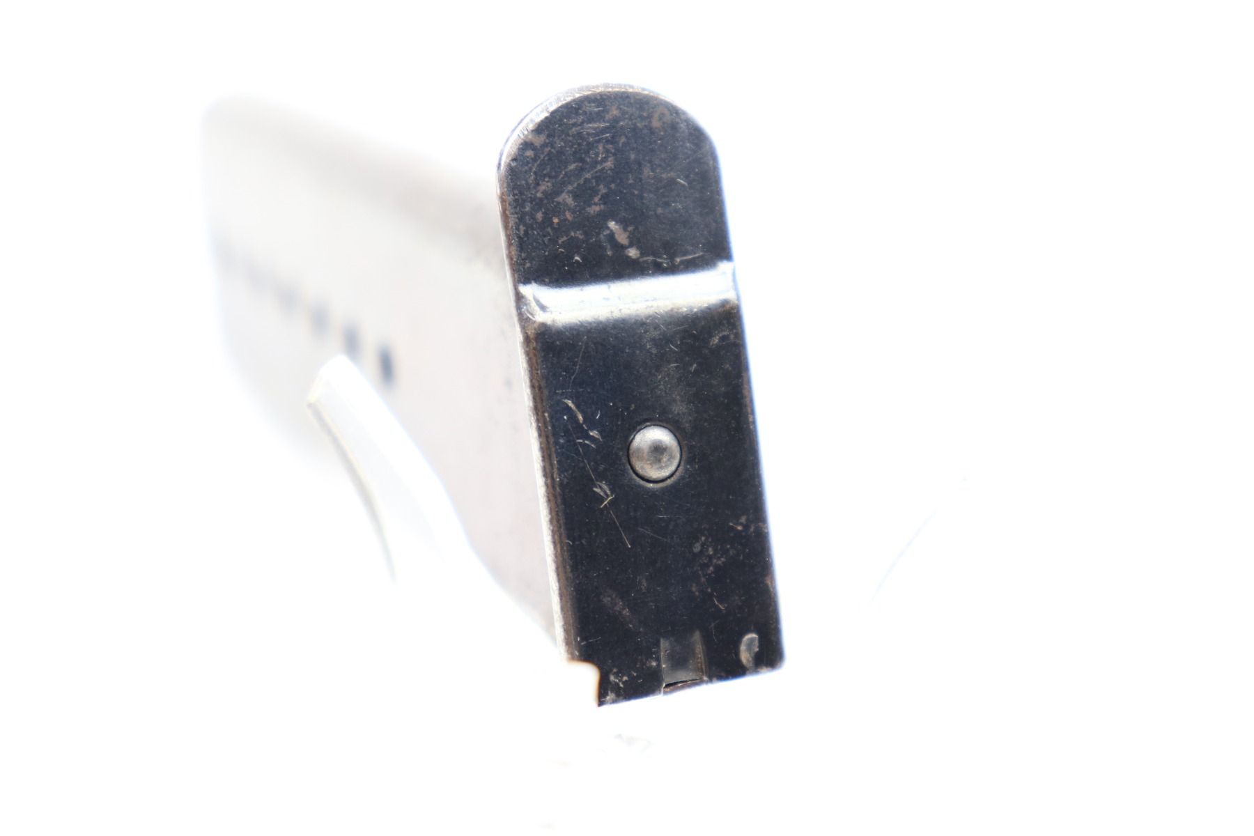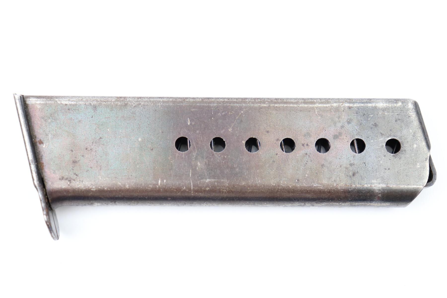 6/20/22 – This is an original Spreewerk P.38 magazine from WW2. The magazine is stamped on the spine with an eagle/88 proof stamp. There are no other markings. The tube has some surface patina and speckling throughout the finish, but no rust or pitting. The spring is strong and functional.