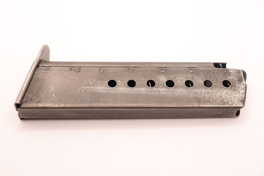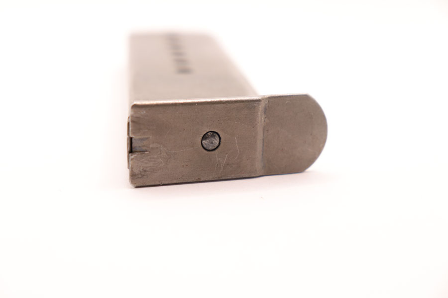 10/28/20 – This is an original, late war Spreewerke P.38 magazine from WW2. The magazine has a small eagle/88 stamped on the spine, and no other markings. There are some light marks on the frame, but this is expected with CYQ production. The magazine is in excellent condition and has a strong, fully functional spring.