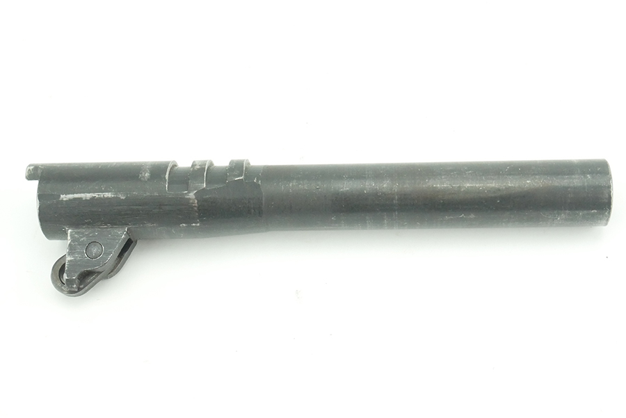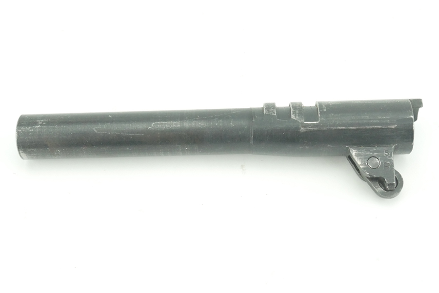 8/29/24 – This is a Springfield M1911 barrel. The S and P markings on the left side of the lug indicate it is a later Springfield barrel. This barrels outside finish is in great+ condition and the bore is in great condition, rifling is still strong and pronounced. These are commonly known to be replacement barrels.