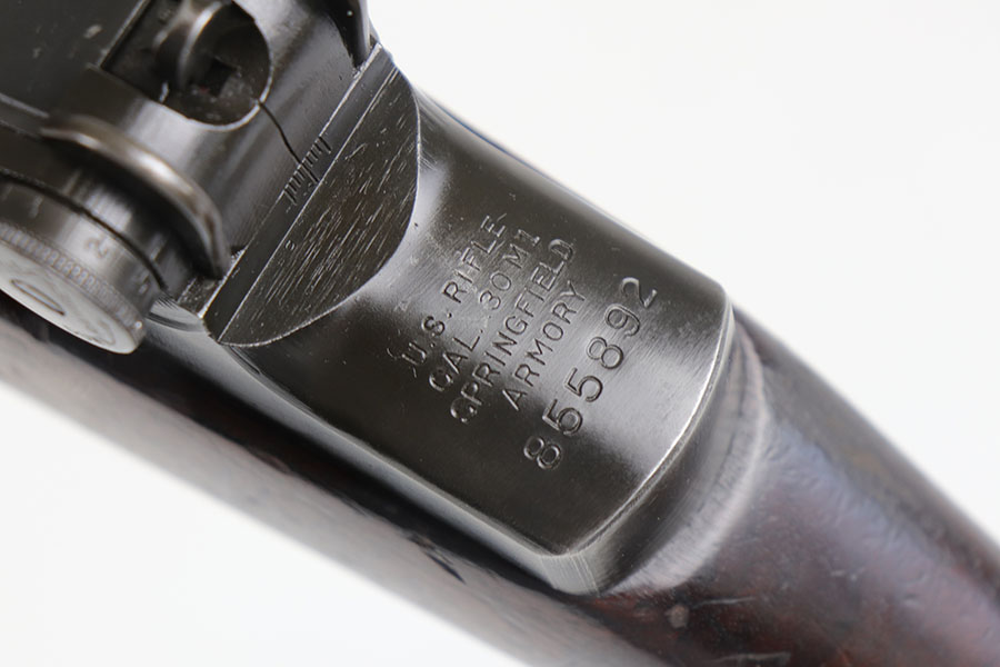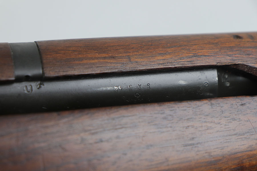 7/29/20 – This is a very nice example of an original Springfield Armory M1 Garand that was made in 1942 for the US military. Serial dates the gun to about September of that year, and the barrel is also dated to September of 1942 with SA marking. The original finish is excellent with most of the wear on the gas tube. Original stock with faint SA cartouche on the left side. Circle P proof on wrist. The wood shows several dings and nicks but no cracks. Muzzle is a 3.5, throat is a 1. Bore is shiny with strong rifling.