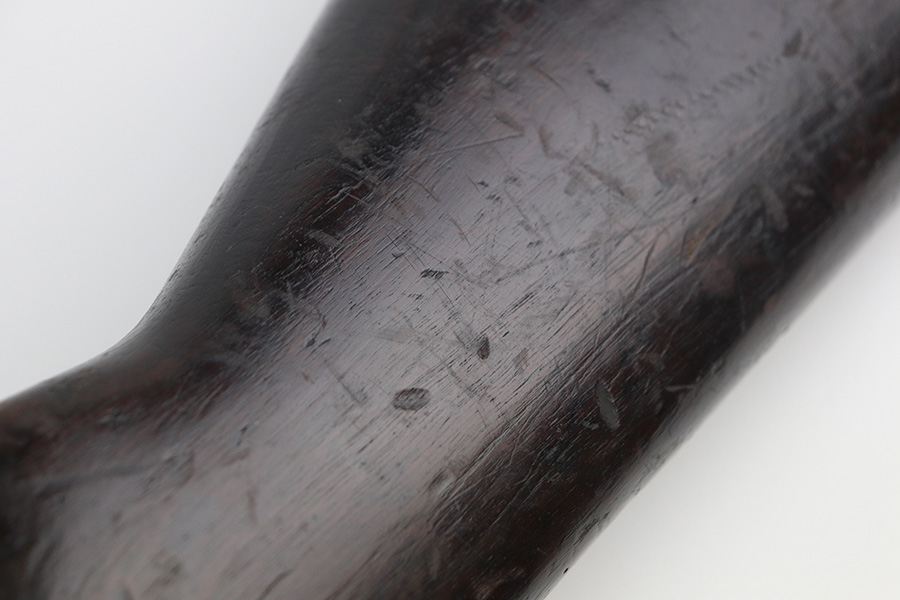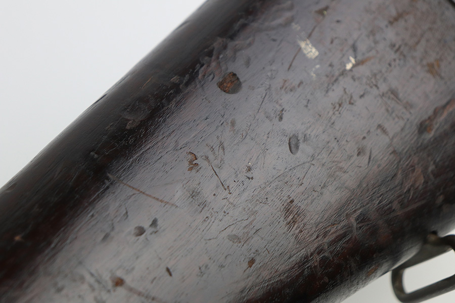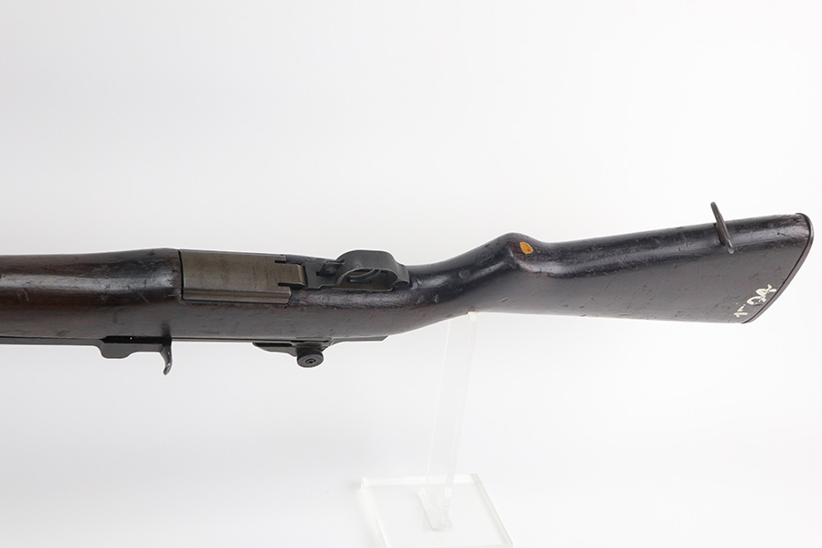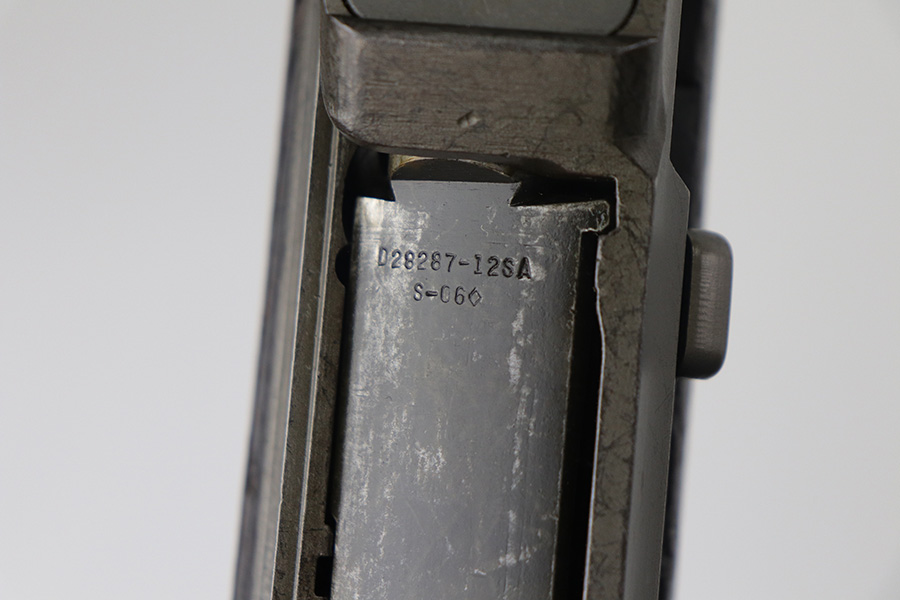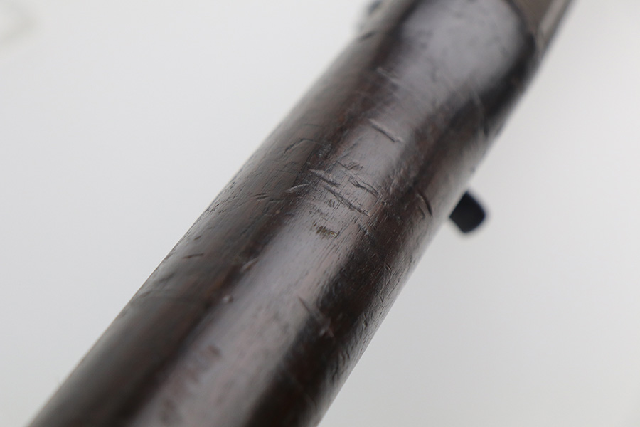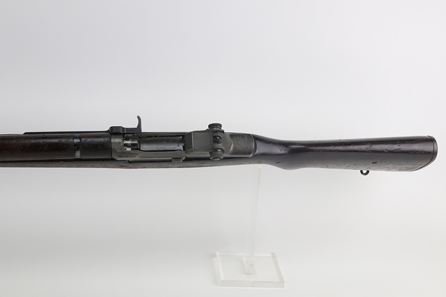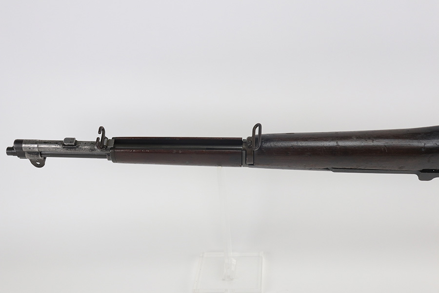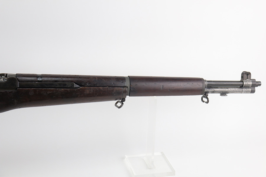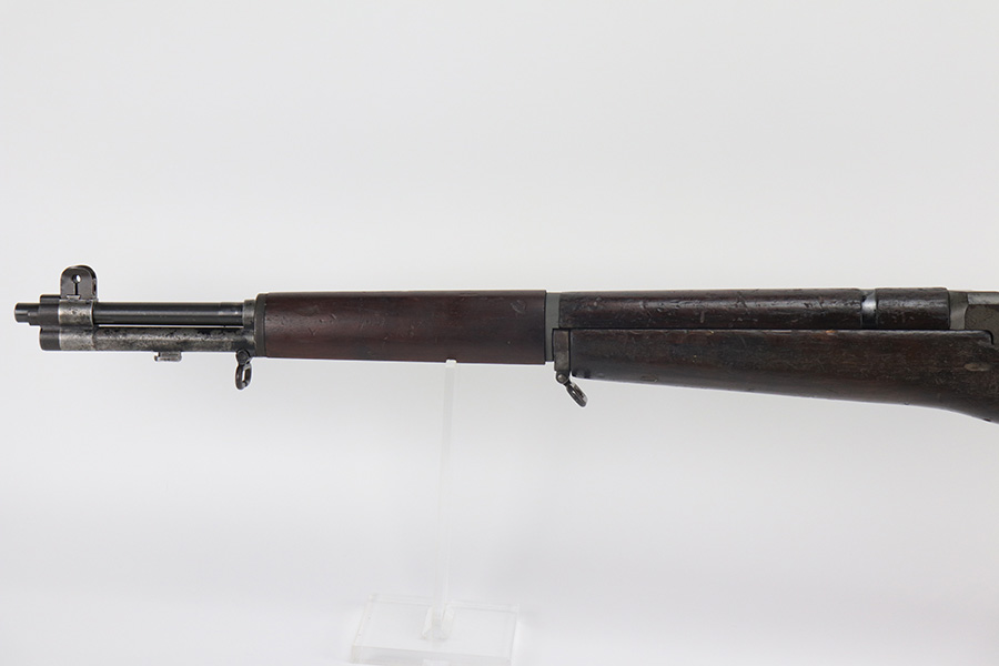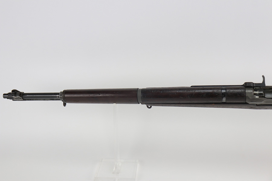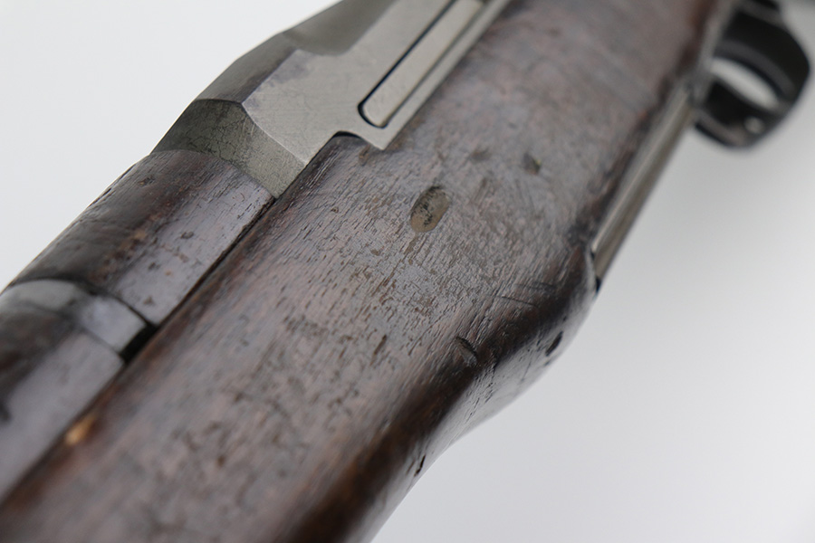 11/30/21 – This is an early Springfield Armory M1 Garand with 1942 manufactured receiver that was re-worked after the war. Barrel is also Springfield-made and dates to May of 1953. The internals appear to be Springfield also, including trigger group and slide. The stock is marked only with a circle P on the wrist, and obviously has many dings and visible wear throughout. The finish on the rifle is nice on the receiver but there’s pitting on the trigger guard and wear all over the gas tube. The bore is excellent and shiny with strong rifling. Muzzle is a 3, throat is a 1.