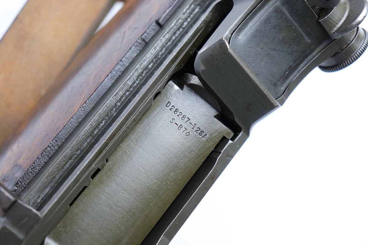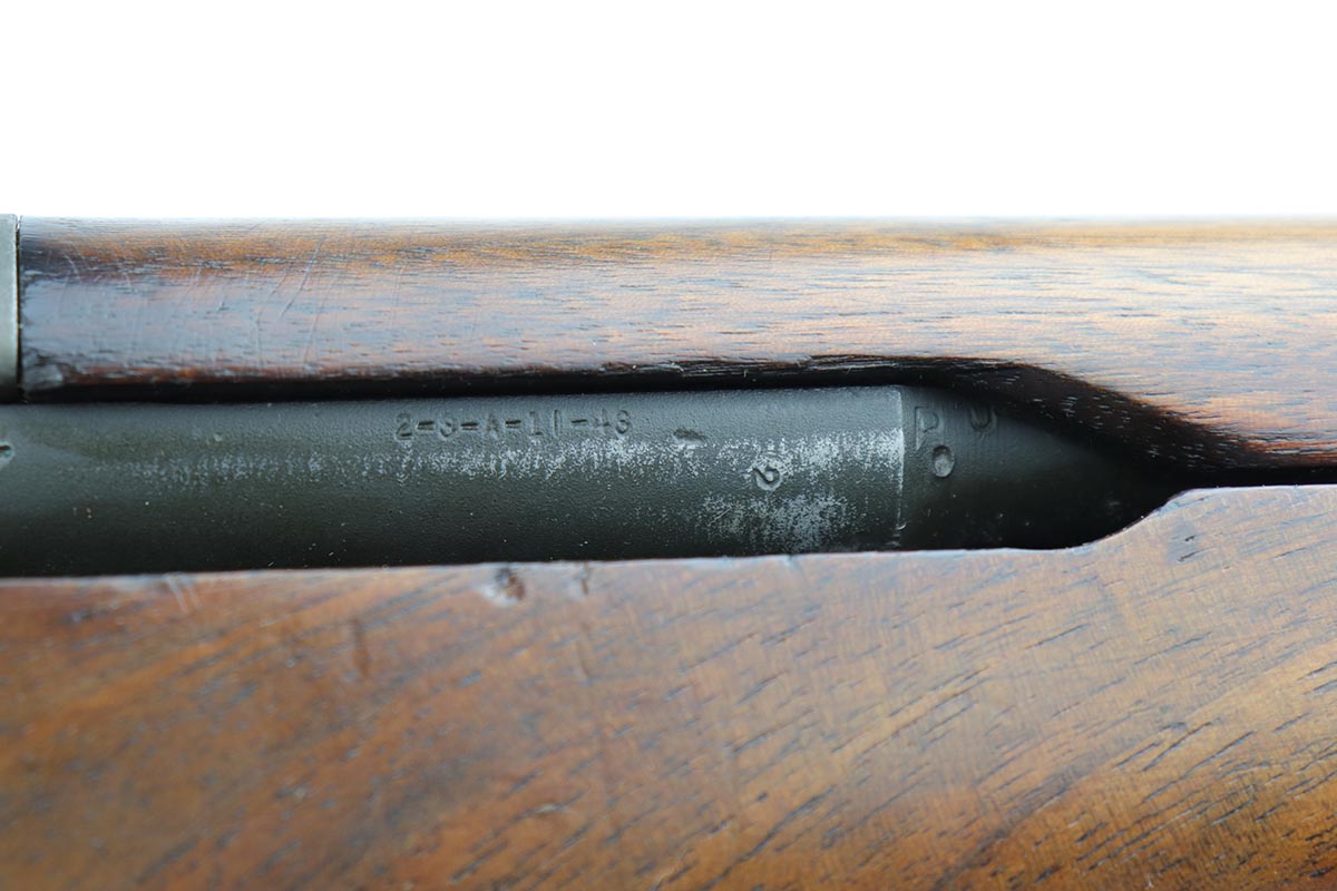 3/27/19 – This is a very nice and all original Springfield Armory M1 Garand from November of 1943. The original metal finish rates at about 95% with most of the thinning on the barrel but a very nice receiver. The stock is very nice with minor nicks and dings but no major chips or cracks. Sharp crossed cannons cartouche and clear inspector cartouche on stock (SA over GAW). Barrel is 11-43 dated. Nice, original Boyt sling. Throat measurement is a 3, muzzle is a 1.5. Minty bore.