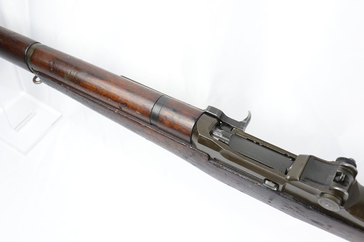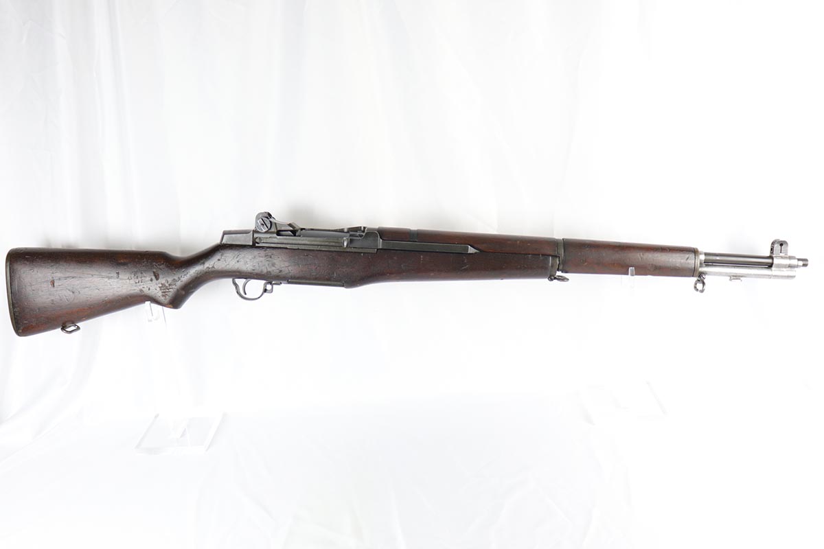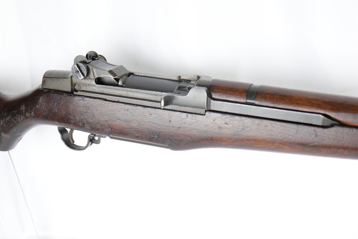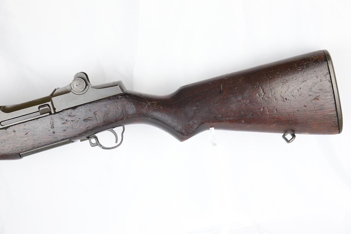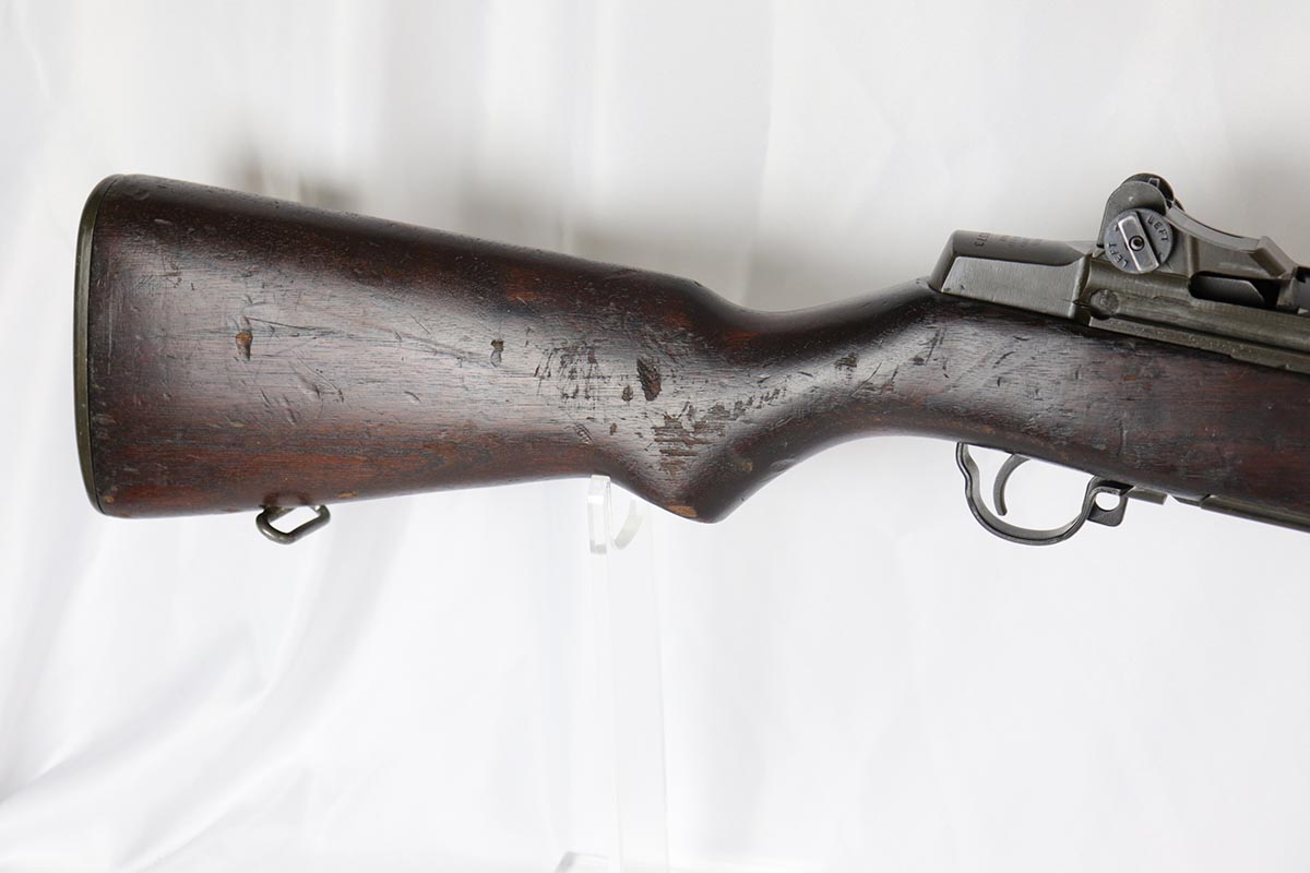 6/6/18 – This is an excellent unmodified original example of the WWII best designed infantry rifle – an M1 Garand, made in 1944 and  chambered in 30.06 caliber. This is an all original and all correct rifle that had not been rearsenaled and retains ~90% of its parkerizing and has all the correct parts with appropriate “drawing” numbers.  The receiver and barrel show excellent finish for the most part, but the gas cylinder appears to be largely missing finish or have never been finished.  The barrel is dated 5/44 which matches the year of production of the receiver. Very good unrefinished wood with nice ordnance wheel cartouche and SA GAW acceptance marking next to it. There are no cracks present but there are some nicks and scratches appropriate for a battle used rifle. A rack number is painted on the buttstock. Everything on this rifle is original WWII Springfield Armory, including the lock-bar rear sight. Very few of the unmodified WWII M1 Garands exist as the vast majority had gone through an Arsenal update at least once in the past 70 years.