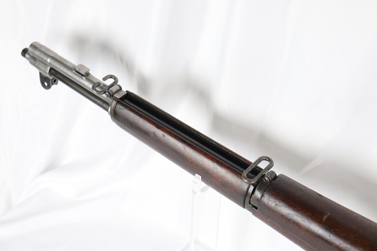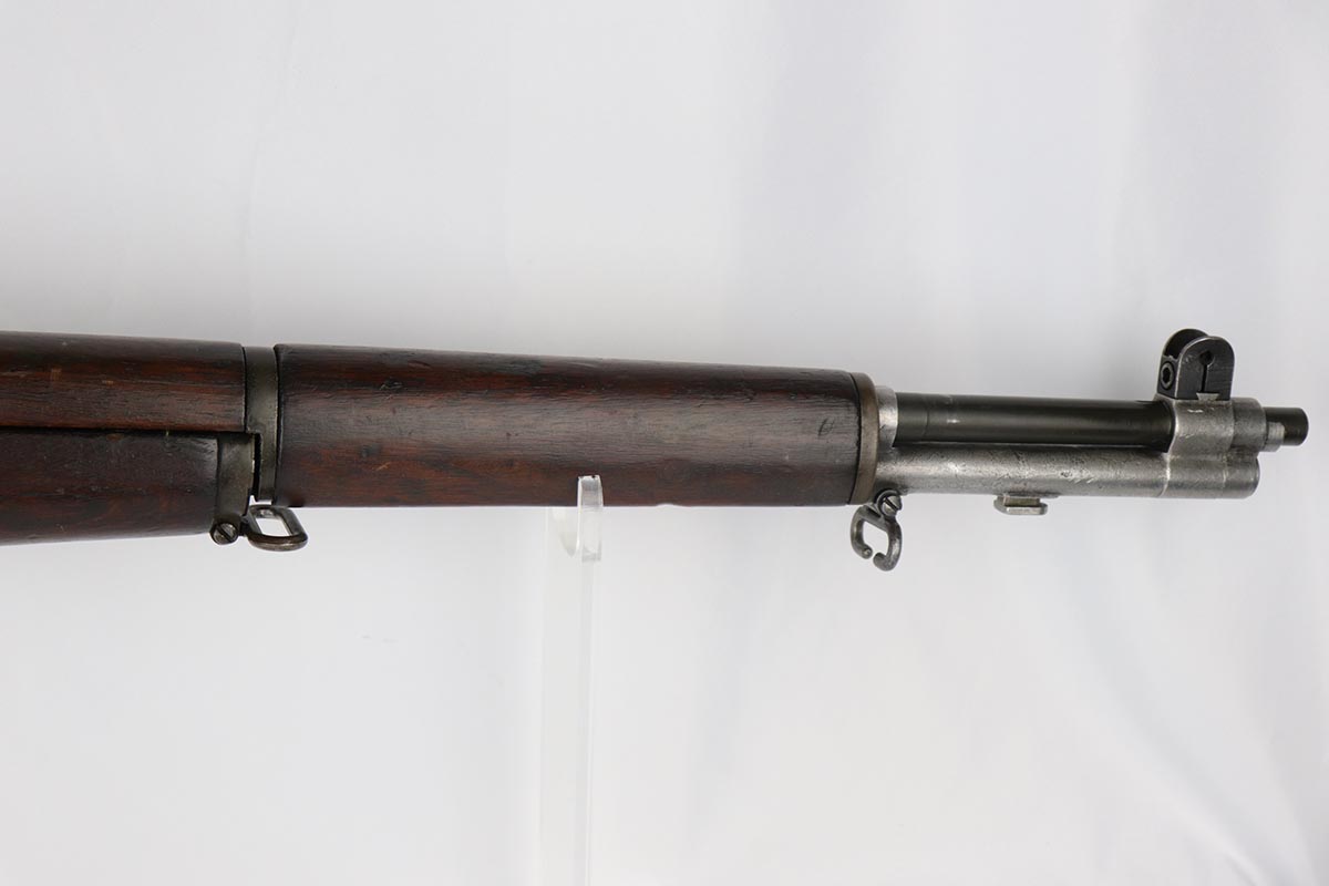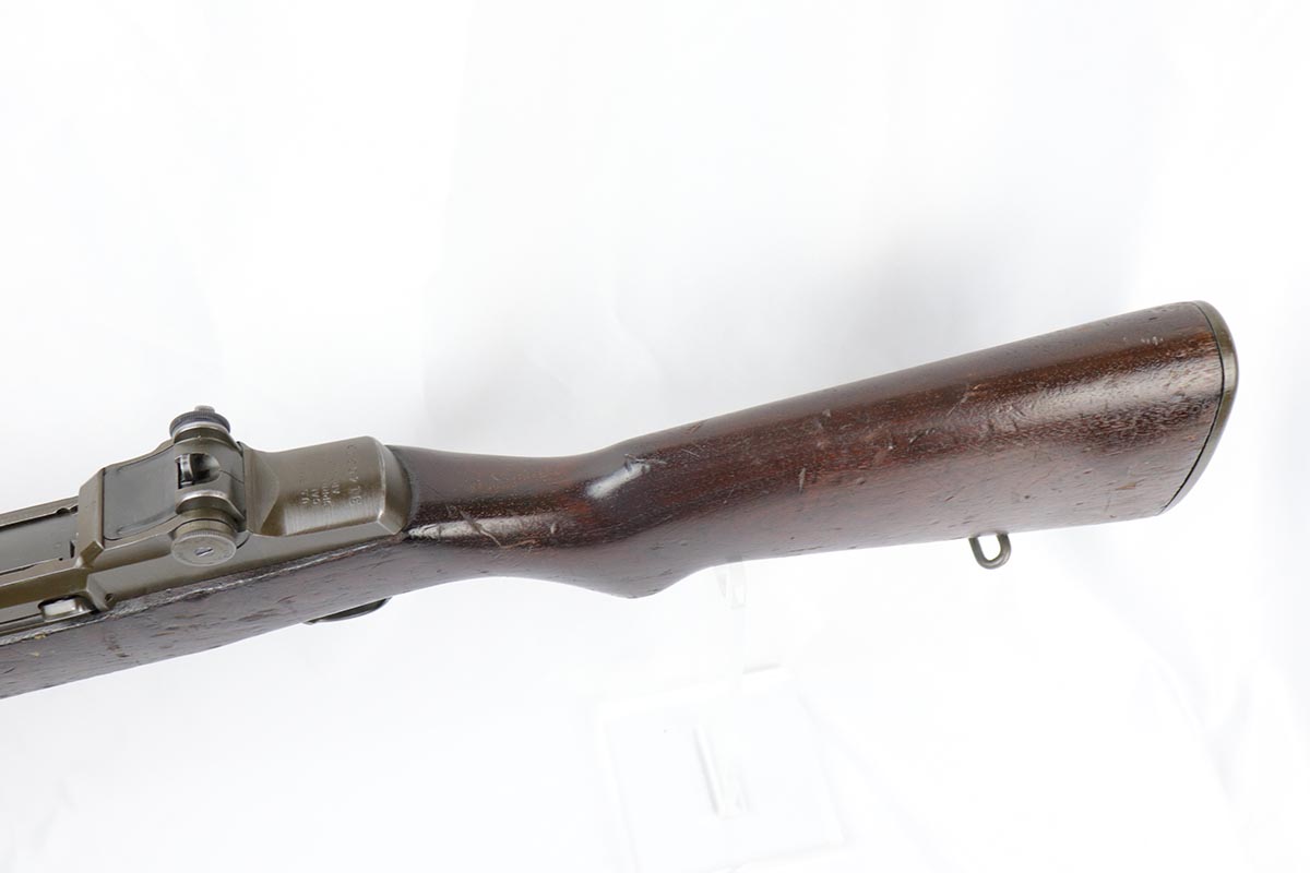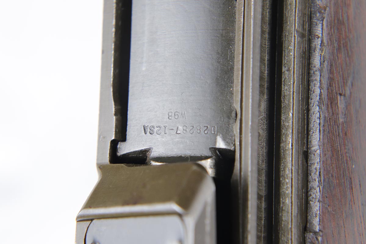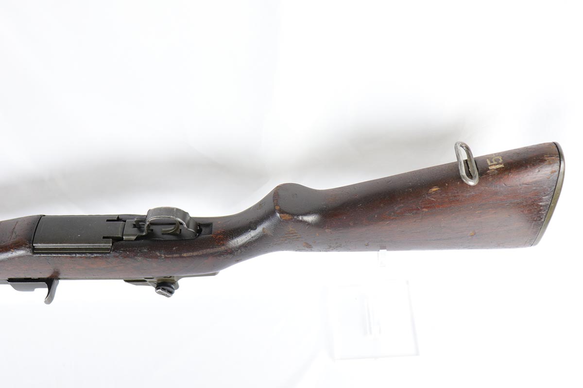 6/6/18 – This is an excellent unmodified original example of the WWII best designed infantry rifle – an M1 Garand, made in 1944 and  chambered in 30.06 caliber. This is an all original and all correct rifle that had not been rearsenaled and retains ~90% of its parkerizing and has all the correct parts with appropriate “drawing” numbers.  The receiver and barrel show excellent finish for the most part, but the gas cylinder appears to be largely missing finish or have never been finished.  The barrel is dated 5/44 which matches the year of production of the receiver. Very good unrefinished wood with nice ordnance wheel cartouche and SA GAW acceptance marking next to it. There are no cracks present but there are some nicks and scratches appropriate for a battle used rifle. A rack number is painted on the buttstock. Everything on this rifle is original WWII Springfield Armory, including the lock-bar rear sight. Very few of the unmodified WWII M1 Garands exist as the vast majority had gone through an Arsenal update at least once in the past 70 years.