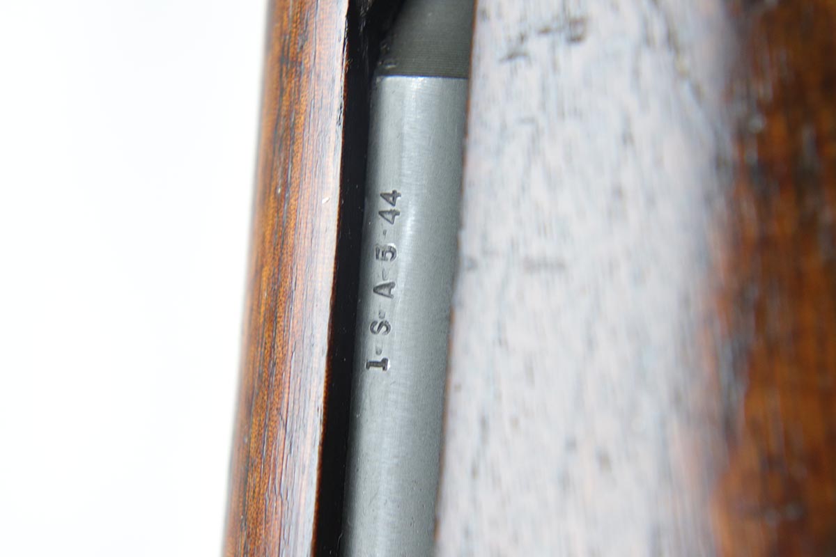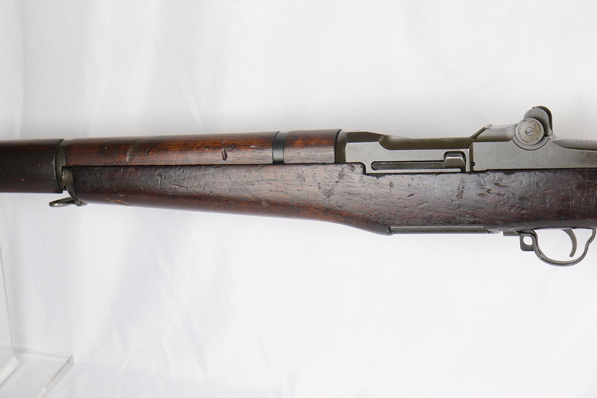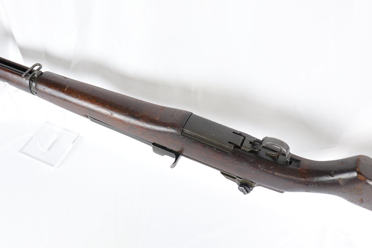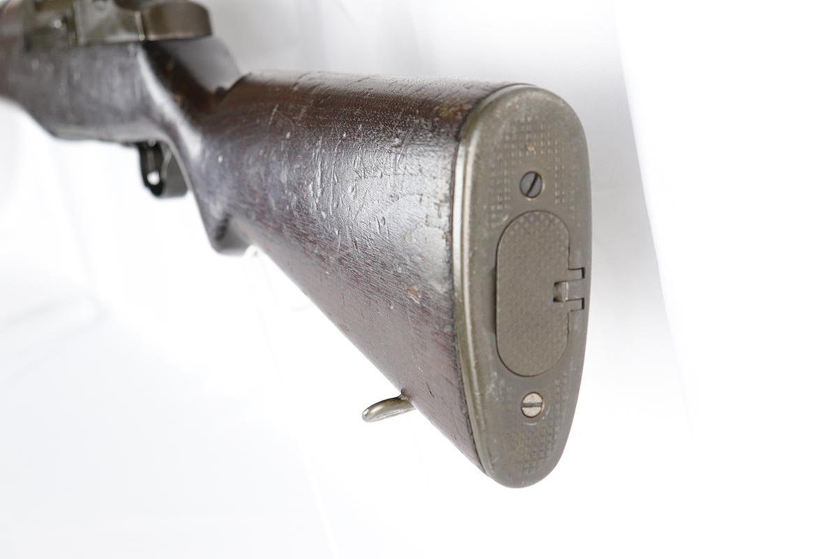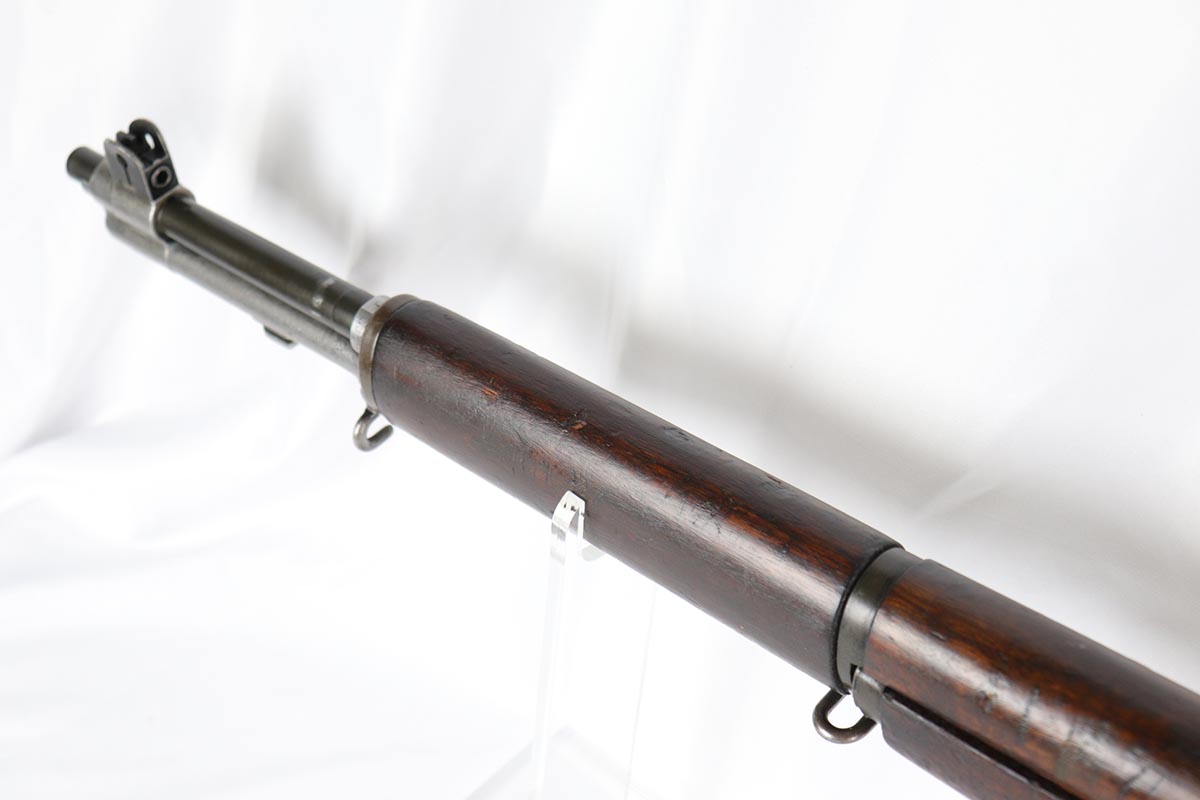 6/6/18 – This is an excellent unmodified original example of the WWII best designed infantry rifle – an M1 Garand, made in 1944 and  chambered in 30.06 caliber. This is an all original and all correct rifle that had not been rearsenaled and retains ~90% of its parkerizing and has all the correct parts with appropriate “drawing” numbers.  The receiver and barrel show excellent finish for the most part, but the gas cylinder appears to be largely missing finish or have never been finished.  The barrel is dated 5/44 which matches the year of production of the receiver. Very good unrefinished wood with nice ordnance wheel cartouche and SA GAW acceptance marking next to it. There are no cracks present but there are some nicks and scratches appropriate for a battle used rifle. A rack number is painted on the buttstock. Everything on this rifle is original WWII Springfield Armory, including the lock-bar rear sight. Very few of the unmodified WWII M1 Garands exist as the vast majority had gone through an Arsenal update at least once in the past 70 years.