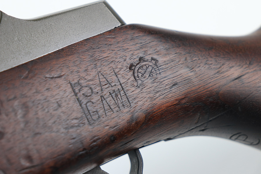 1/7/22 – This is a nice Springfield Armory M1 Garand from 1944. Original and correct SA parts throughout, including the stock which is G.A.W. inspector marked and features the crossed cannons cartouche. Serial and barrel both date to July of 1944. The parkerized finish is excellent throughout but we believe some parts may have been re-parkerized years ago. Excellent bore, muzzle reading of 2 and throat reading of 1. Stock has dings and handling wear throughout but no cracks or chips.
