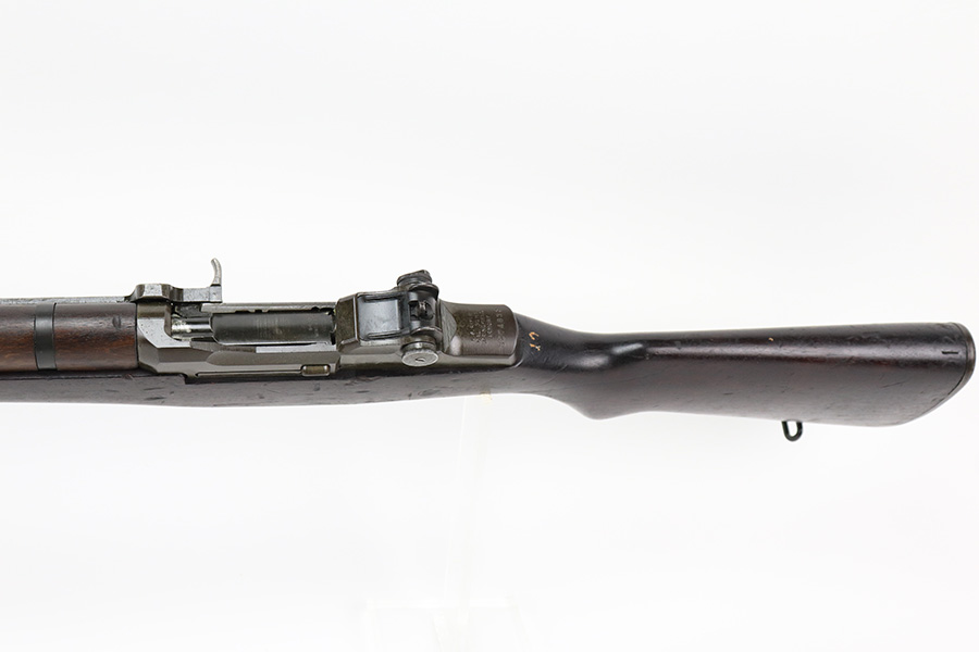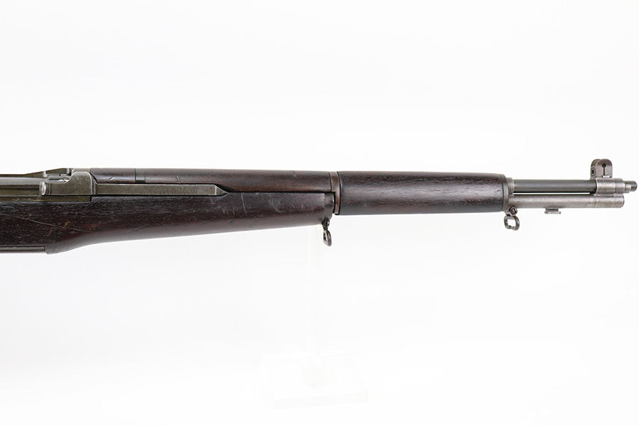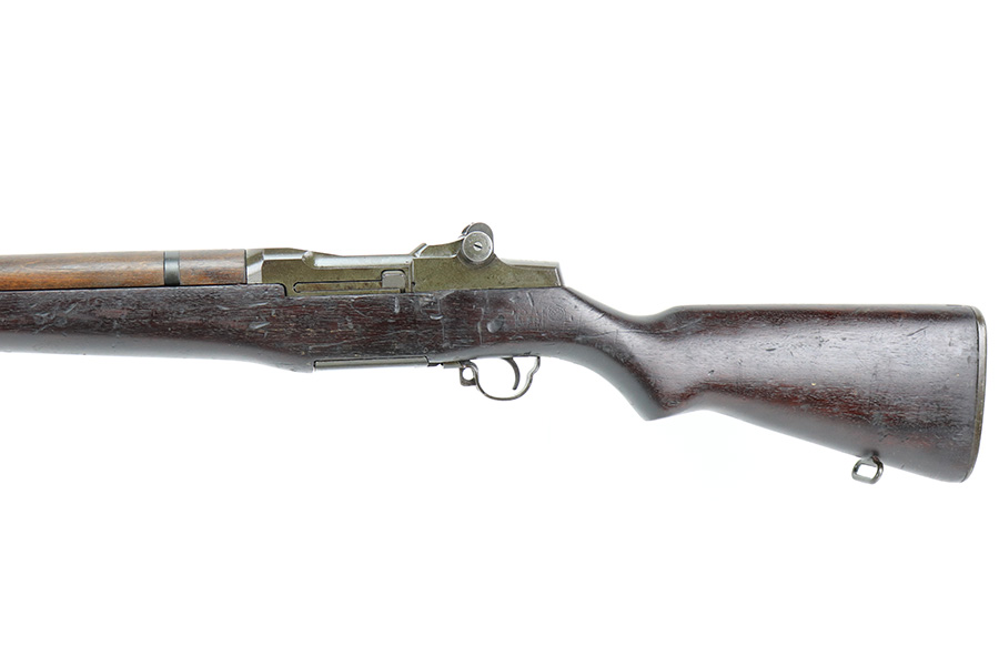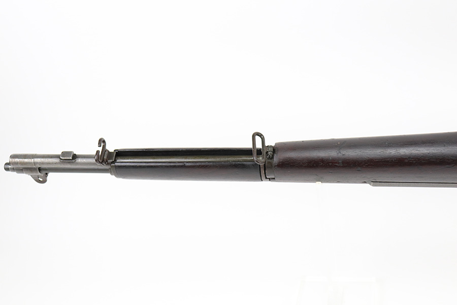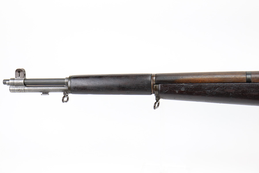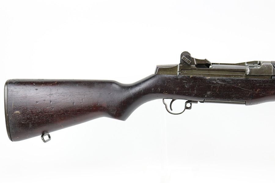 5/5/22 – This is an original and correct Springfield Armory M1 Garand from late in 1944. Sharp N.F.R. inspectors mark on the stock with two crossed cannons cartouche and circle P proof. All Springfield parts throughout with barrel date of August, 1944. The original finish shows some wear and patina on the receiver, and thinning all along the gas tube. Stock has dings and handling wear, and a small gouge near the trigger guard. No cracks or structural issues though. Bore has decent rifling but frost throughout. TE of 5, muzzle is a 3.