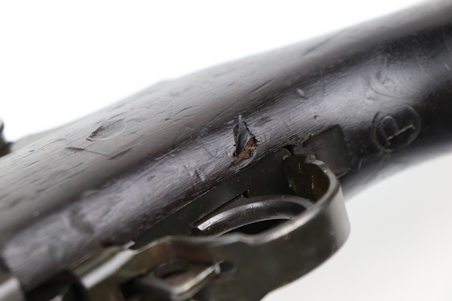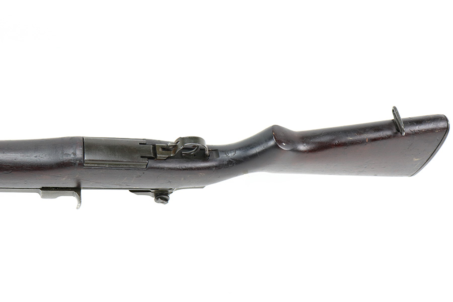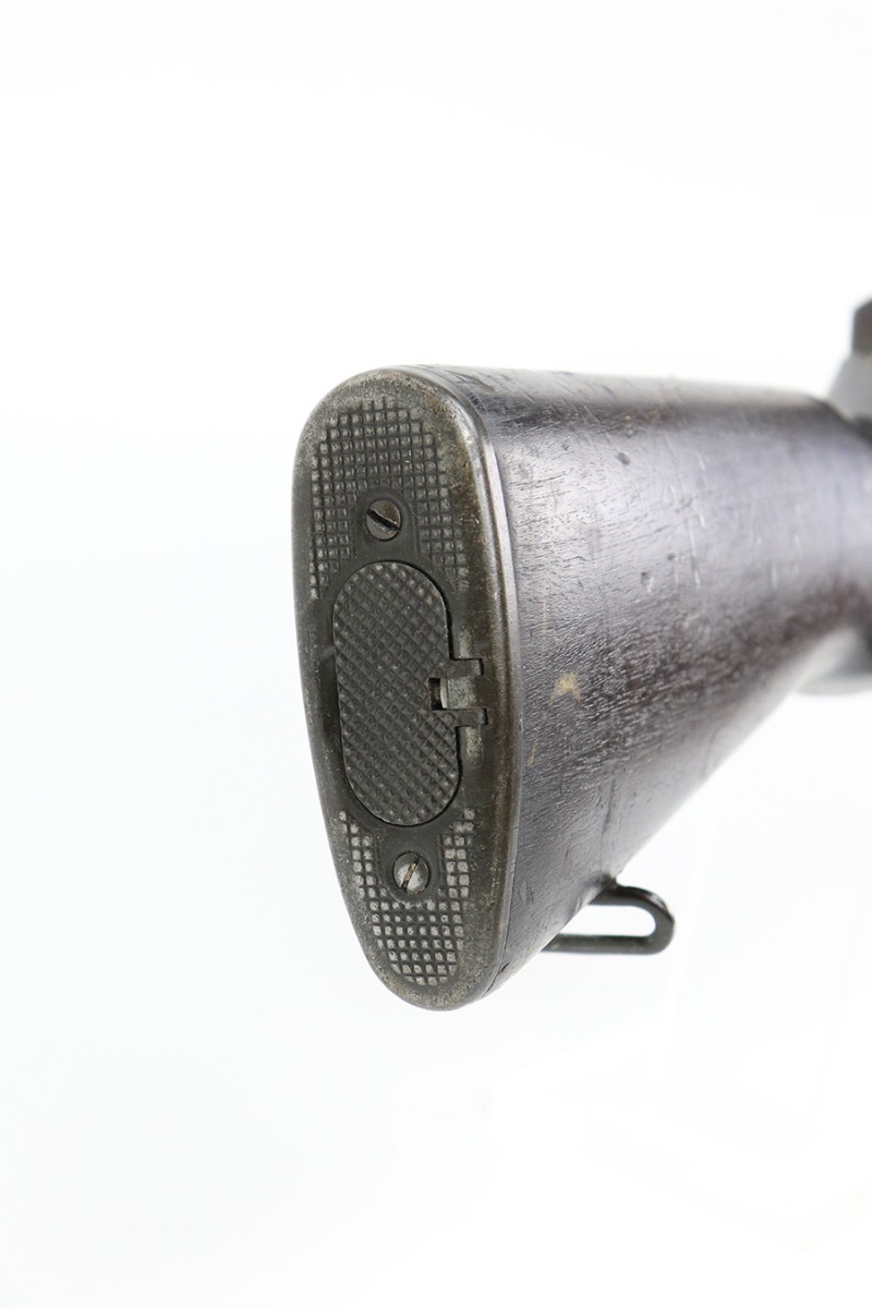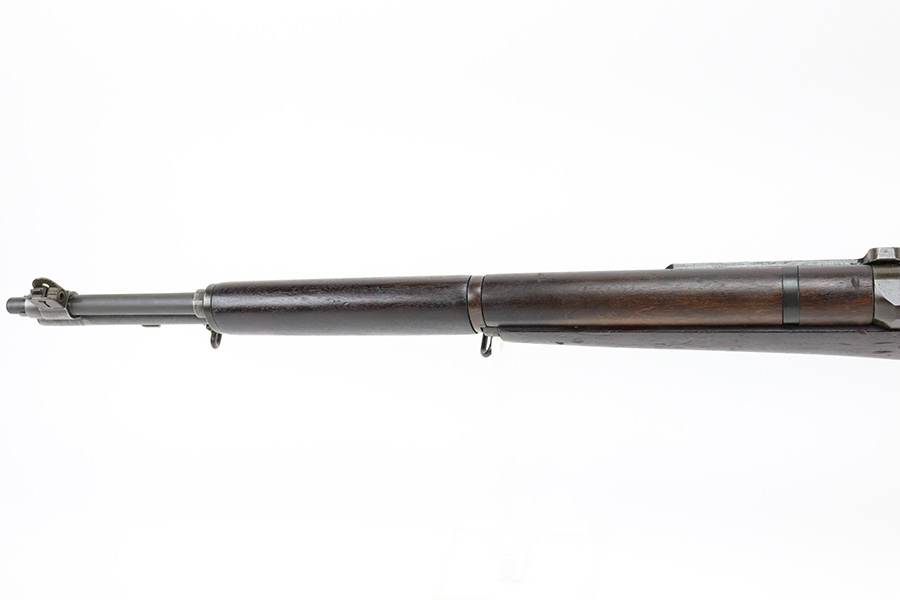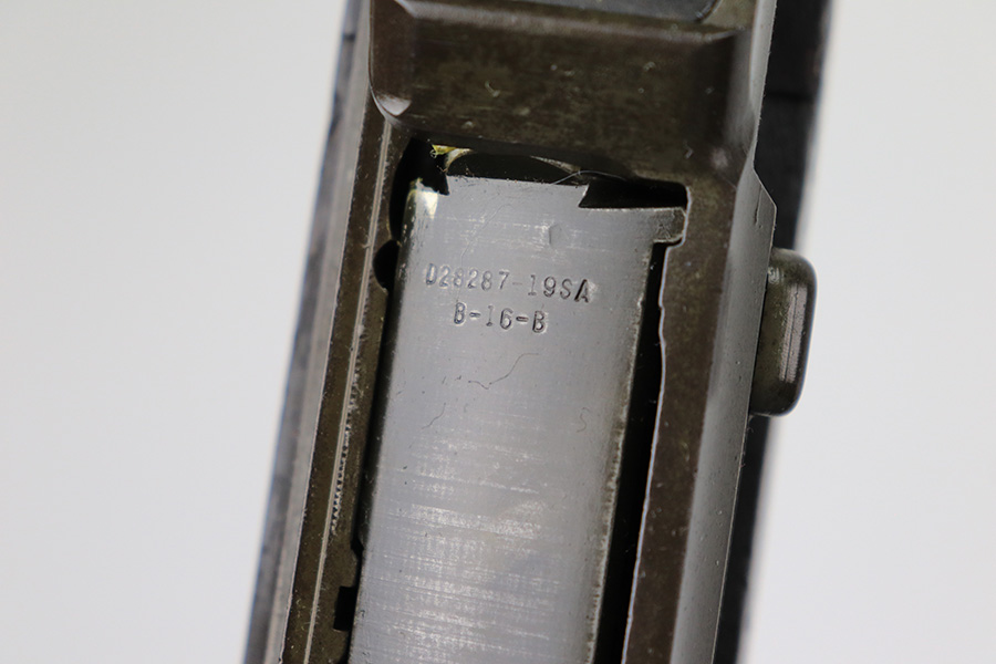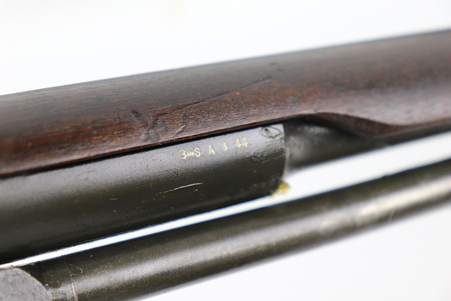 5/5/22 – This is an original and correct Springfield Armory M1 Garand from late in 1944. Sharp N.F.R. inspectors mark on the stock with two crossed cannons cartouche and circle P proof. All Springfield parts throughout with barrel date of August, 1944. The original finish shows some wear and patina on the receiver, and thinning all along the gas tube. Stock has dings and handling wear, and a small gouge near the trigger guard. No cracks or structural issues though. Bore has decent rifling but frost throughout. TE of 5, muzzle is a 3.