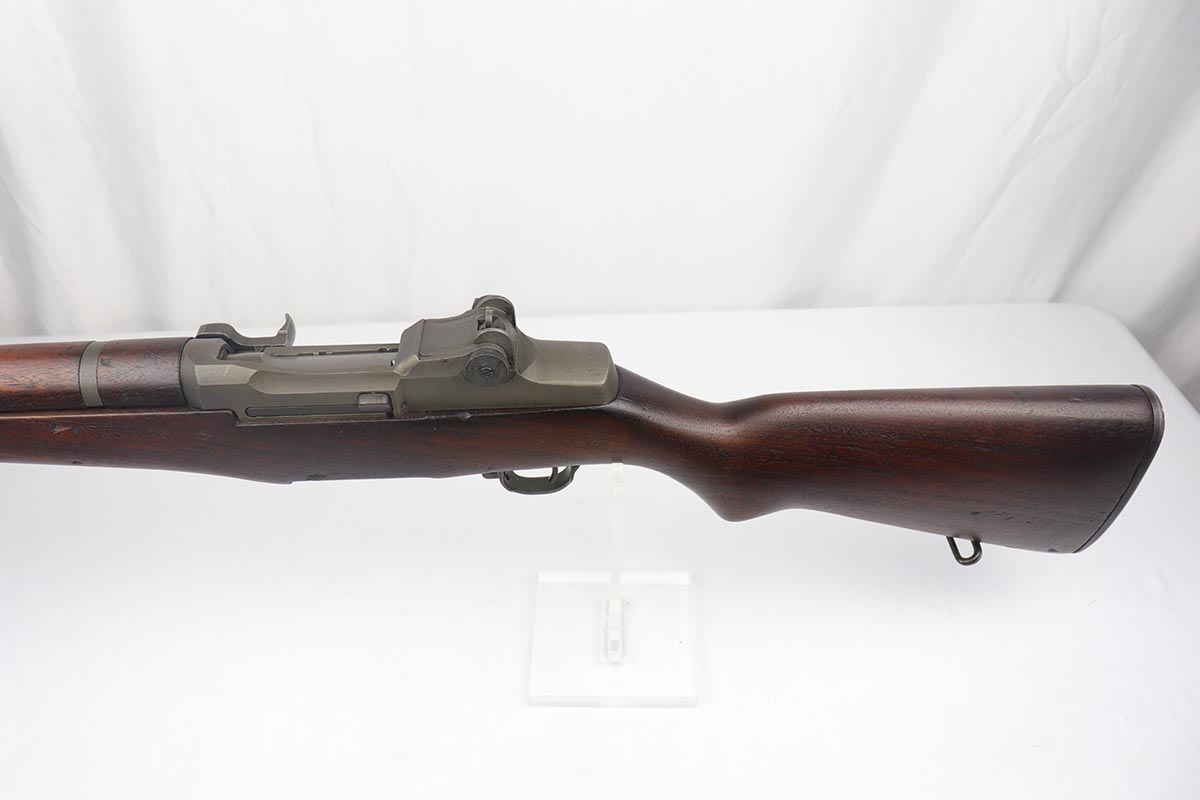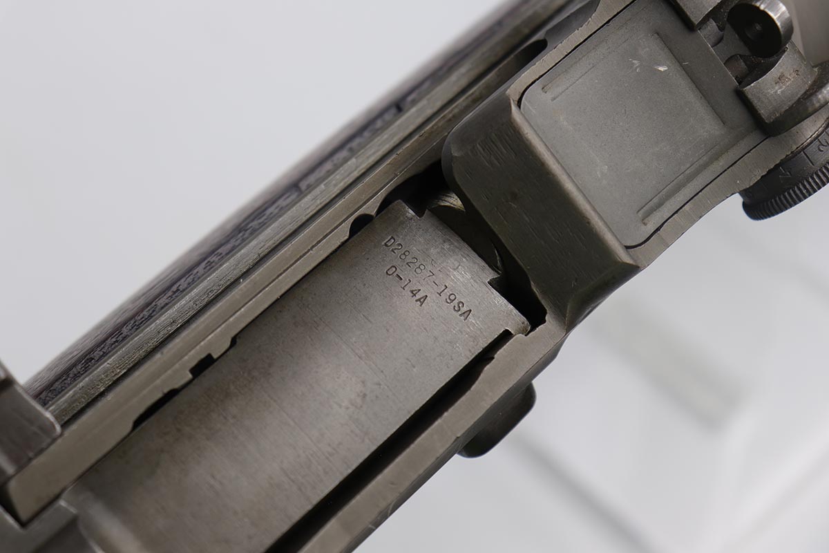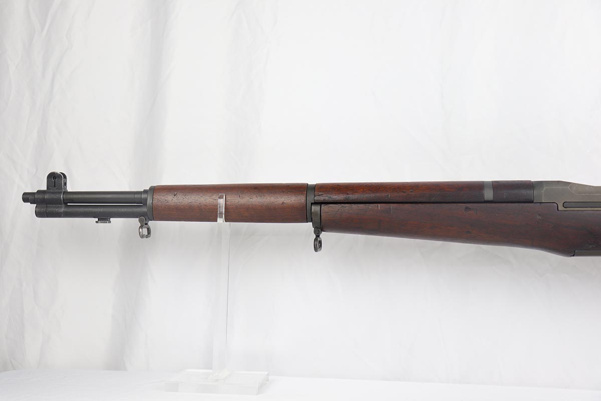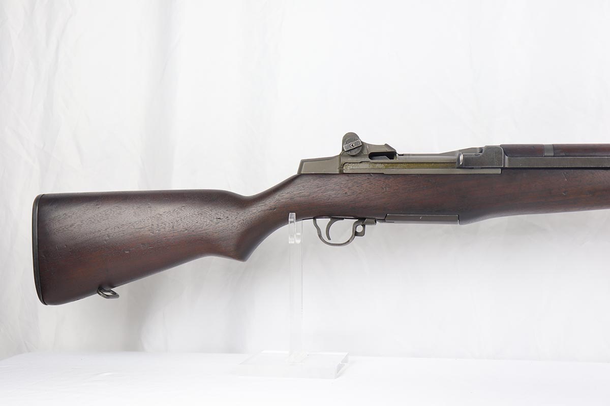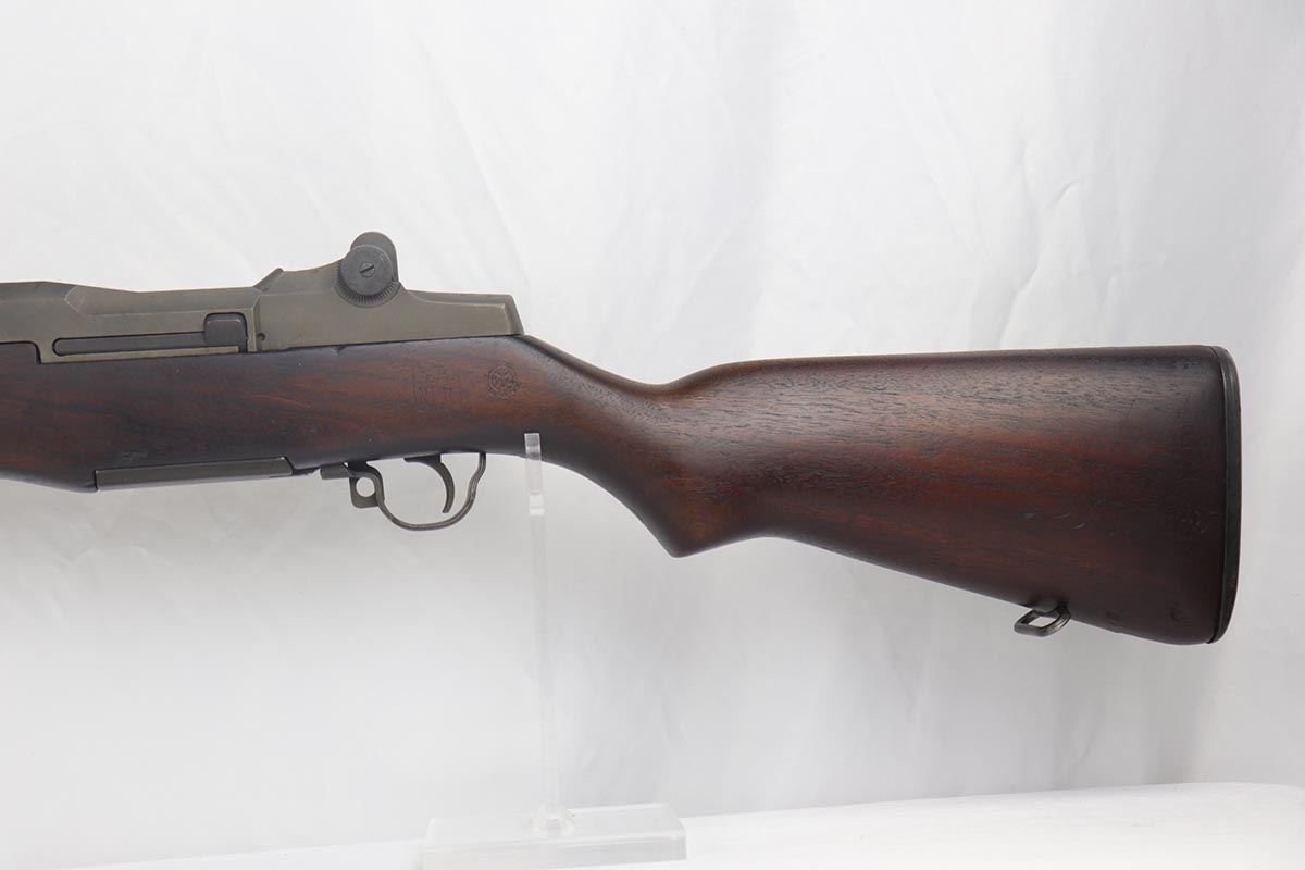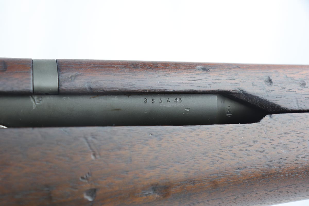 4/5/19 – This is a very nice example of a late-war M1 Garand, produced by Springfield Armory in 1945. Finish on metal parts is excellent, with minor barrel/muzzle/front sight wear but a minty receiver. Barrel is dated to April of 1945. Original stock is in good condition with clear cartouches and P in circle proof. No cracks but a few small chips. Minty bore.