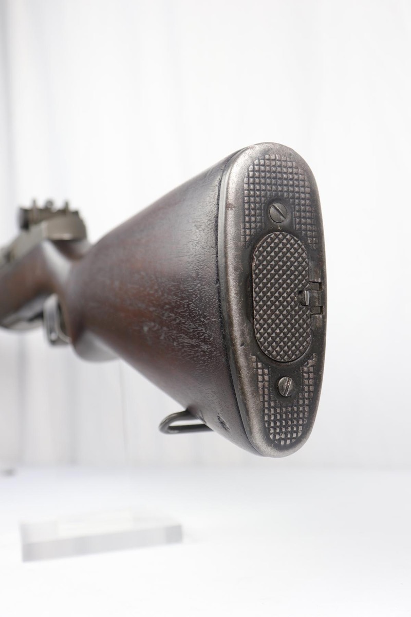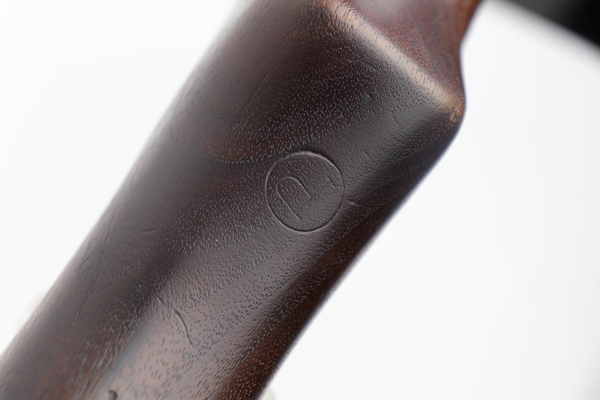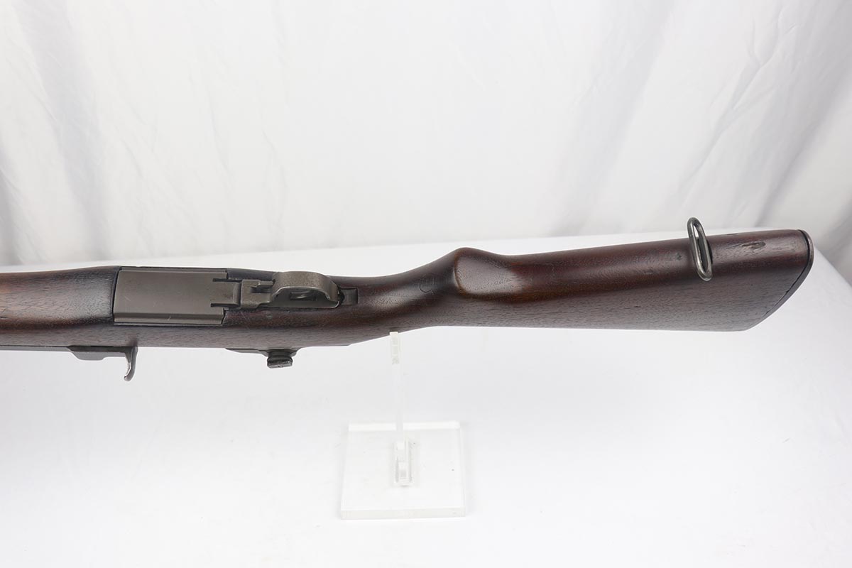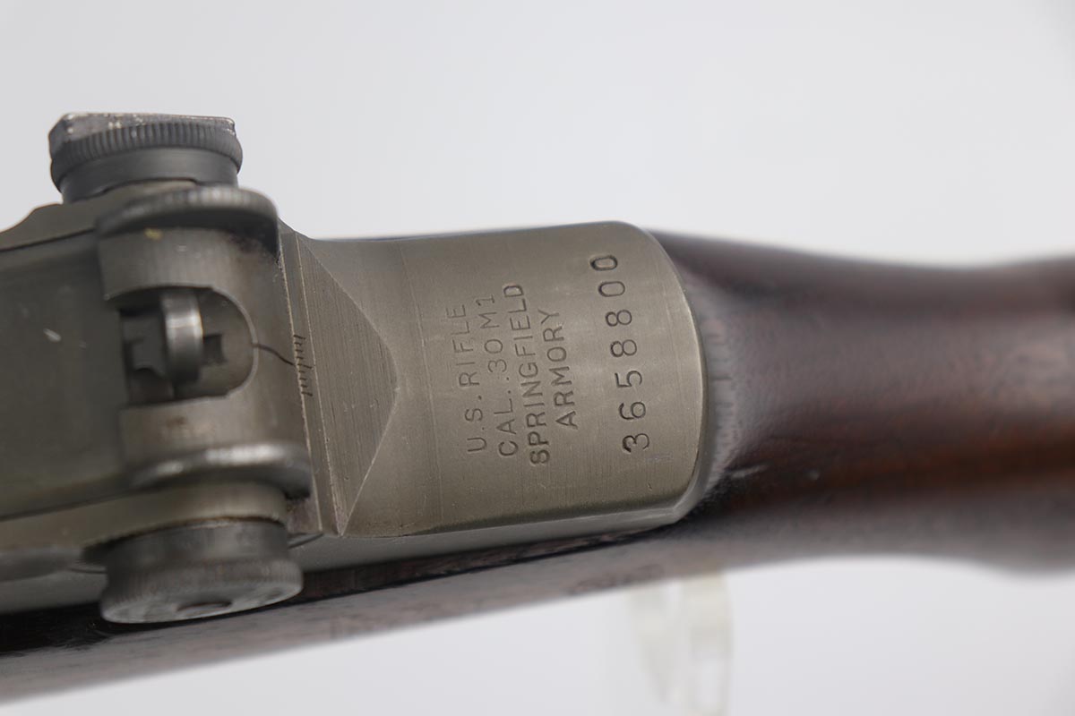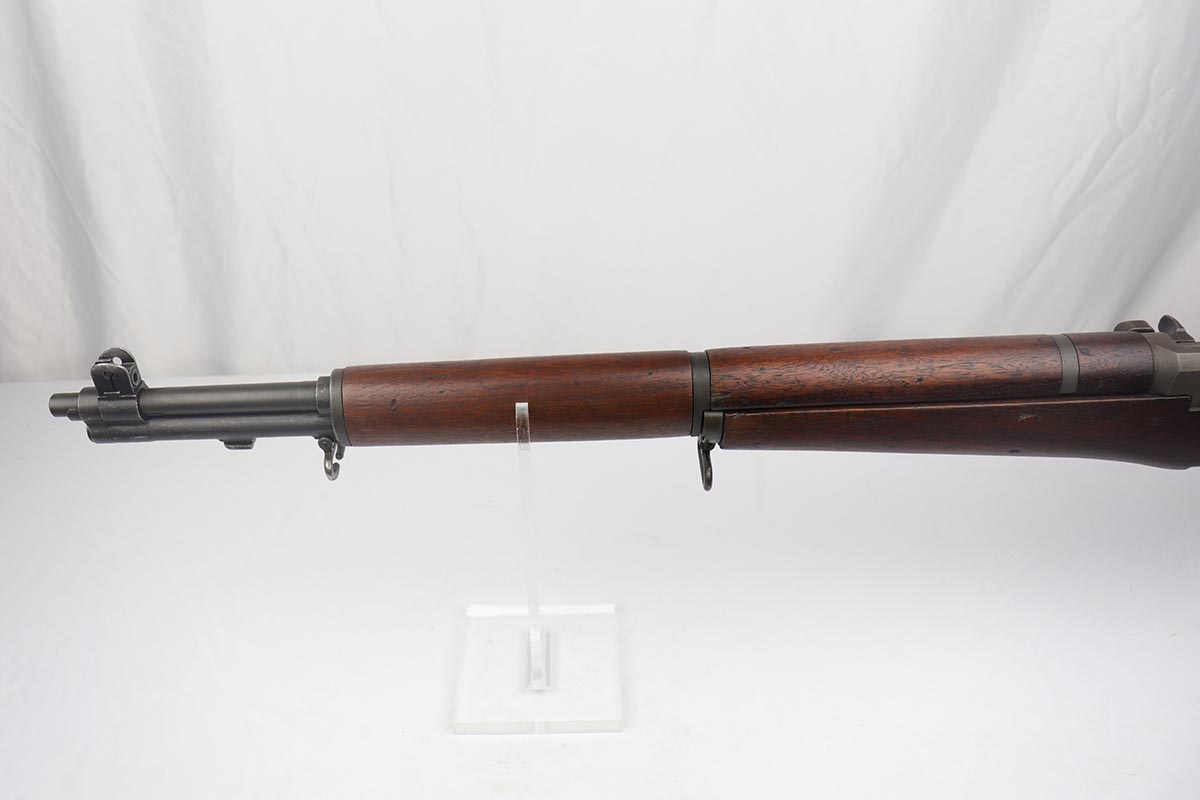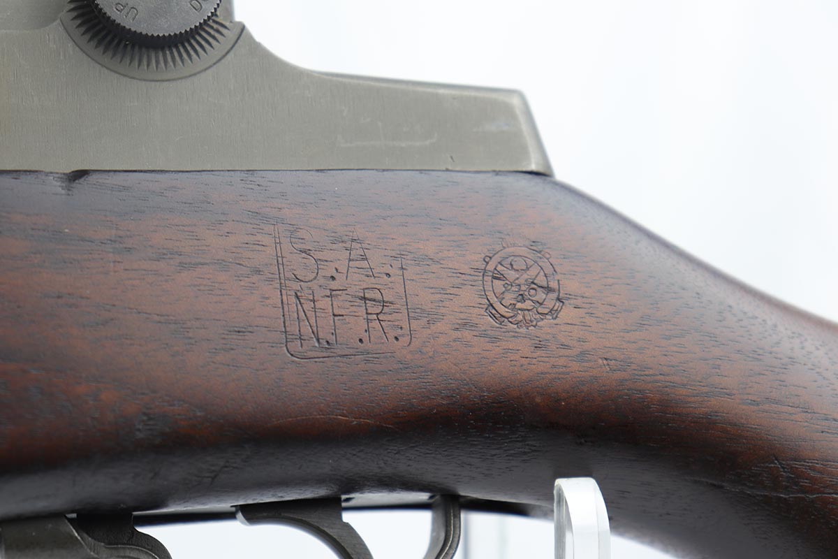 4/5/19 – This is a very nice example of a late-war M1 Garand, produced by Springfield Armory in 1945. Finish on metal parts is excellent, with minor barrel/muzzle/front sight wear but a minty receiver. Barrel is dated to April of 1945. Original stock is in good condition with clear cartouches and P in circle proof. No cracks but a few small chips. Minty bore.