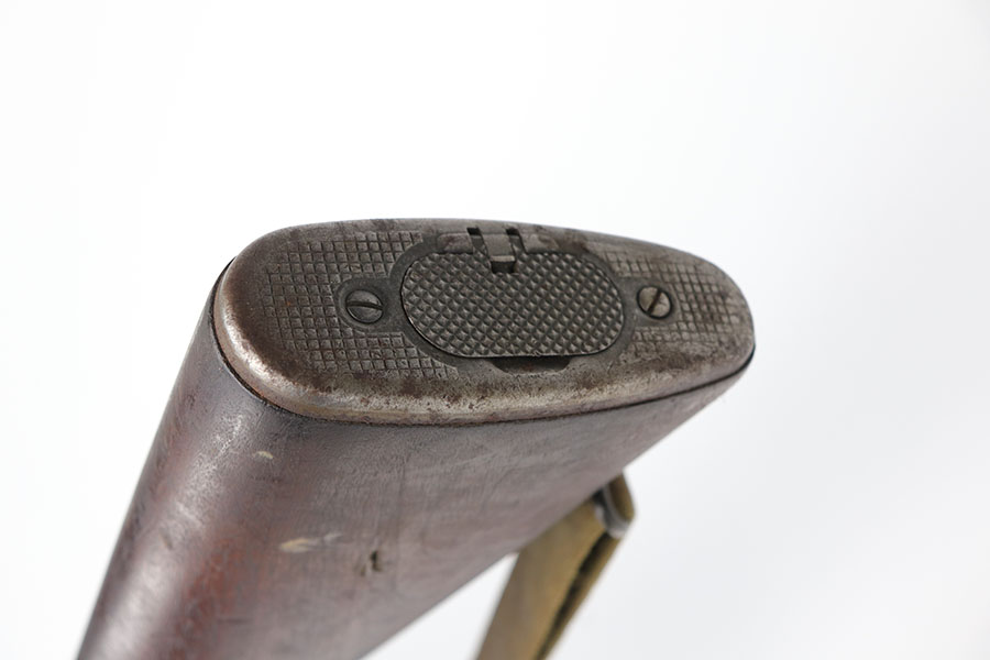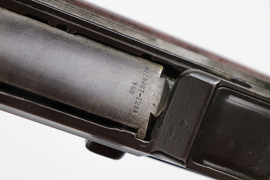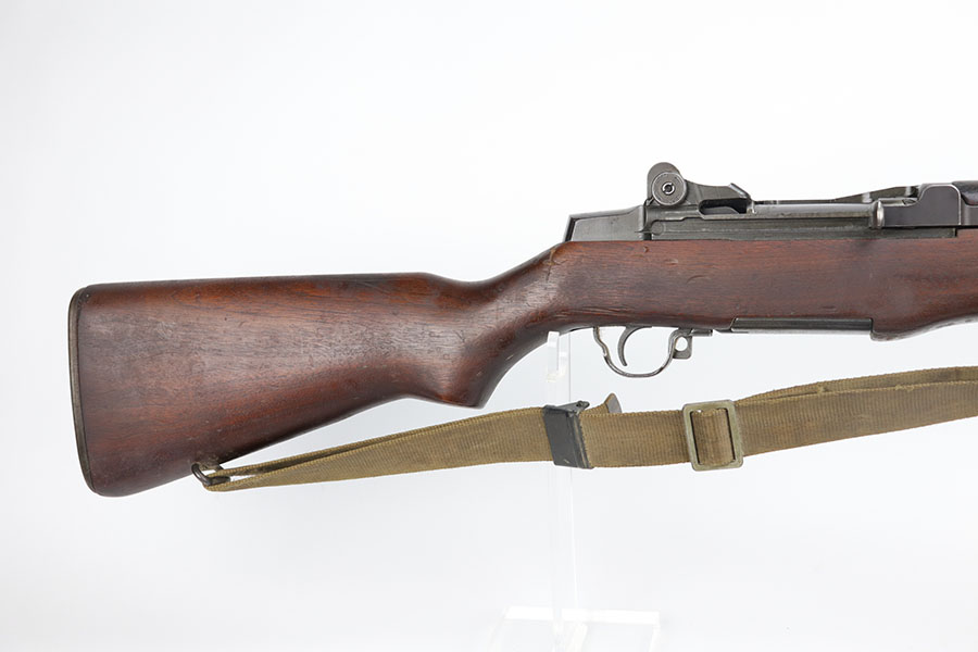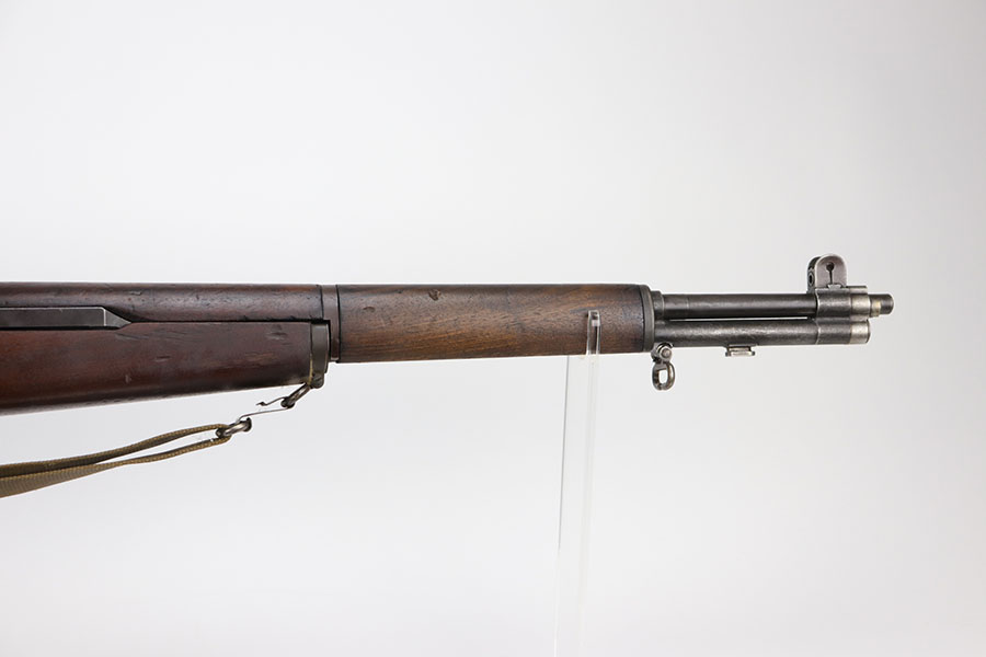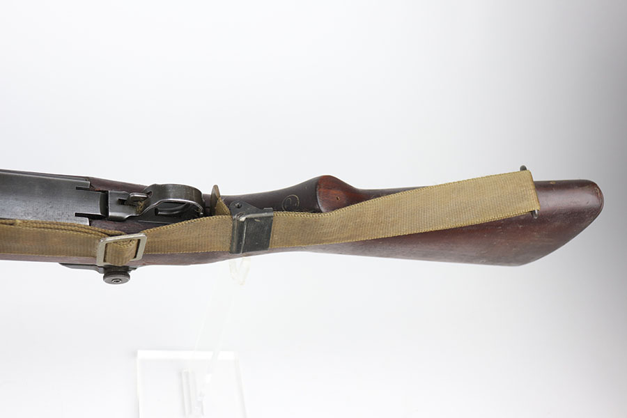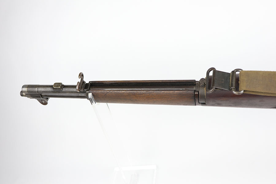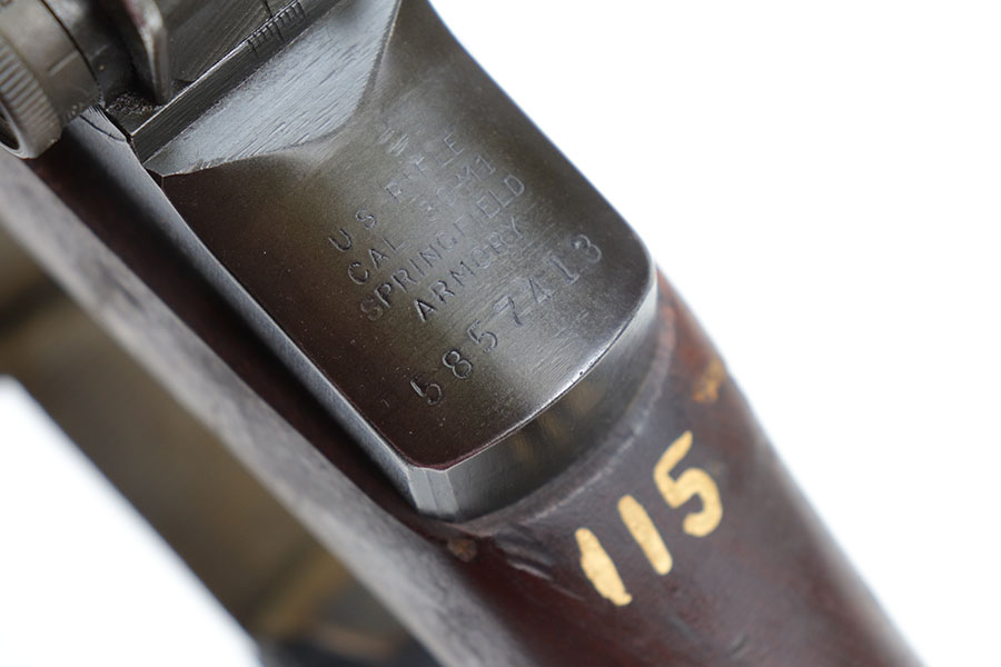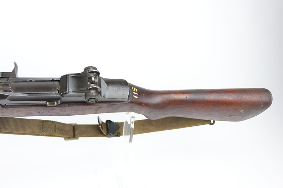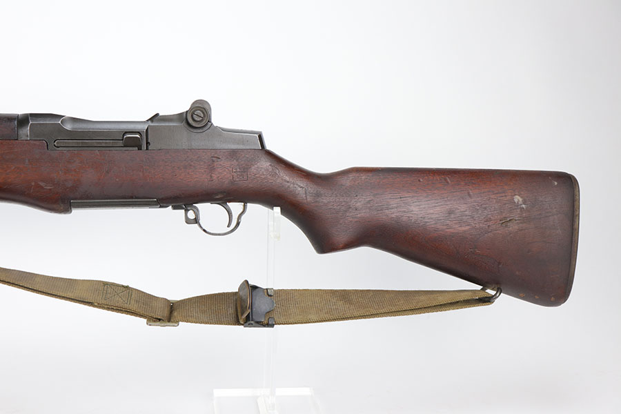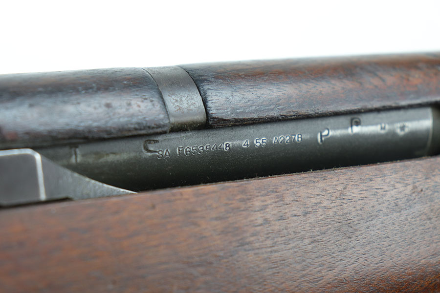 8/27/20 – This is a Springfield Armory M1 Garand from 1955, with receiver dating to that year and barrel date of April, 1955. The original finish is in good condition with some edge thinning throughout but no major defects. The stock has circle P proof on wrist, and DoD stamp on left side. Stock has various dings throughout, and a few small chips on the underside. Bore has strong rifling but some frost throughout. Muzzle is a 2, throat is less than 1. Comes with period original sling.