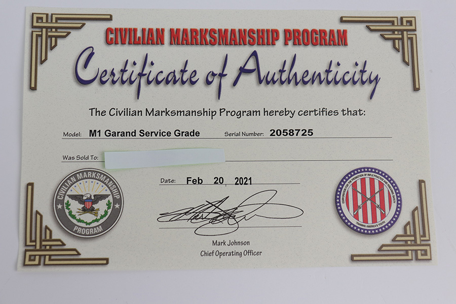 9/13/21 – This is a nice Springfield Armory M1 Garand that was manufactured in 1943 and later went through the CMP. The barrel is also produced by Springfield and dated to October of 1943, appearing to match the receiver. Possible these are original to each other, which is uncommon for CMP Garands. Parkerized finish is excellent throughout. Stock is unmarked and has several small dings or nicks. Strong, shiny bore. Muzzle is a 1, throat is a 3. Comes with the CMP hard case and COA, as well as an en-bloc clip.