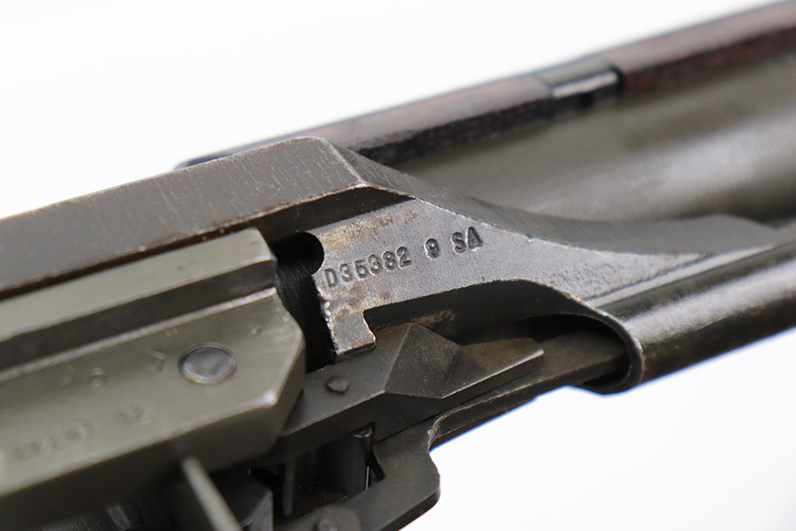 6/1/22 – This is a very nice example of a correct Springfield Armory M1 Garand from WW2. Receiver was made in December of 1943 while the Springfield barrel is dated to January of 1944. The original finish is very good overall with most of the wear on the trigger group and the gas tube. Excellent, shiny bore. Stock shows dings and handling wear but no cracks, and is marked with a ‘P’ on the wrist. Muzzle is a 4, TE is a 3.