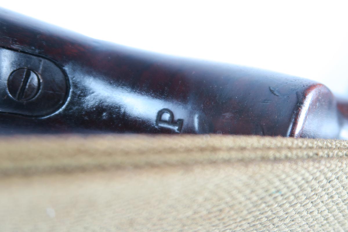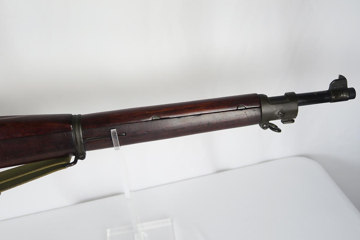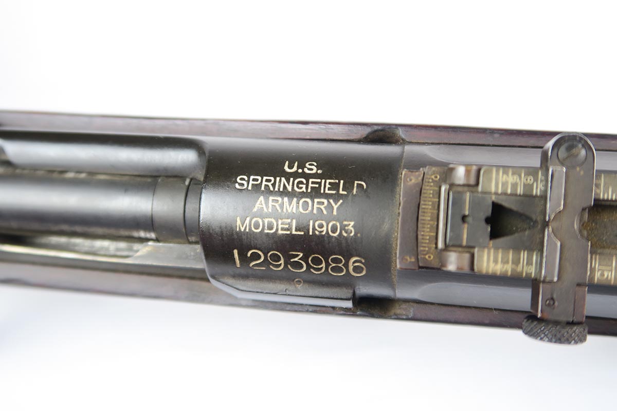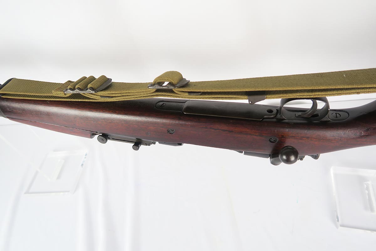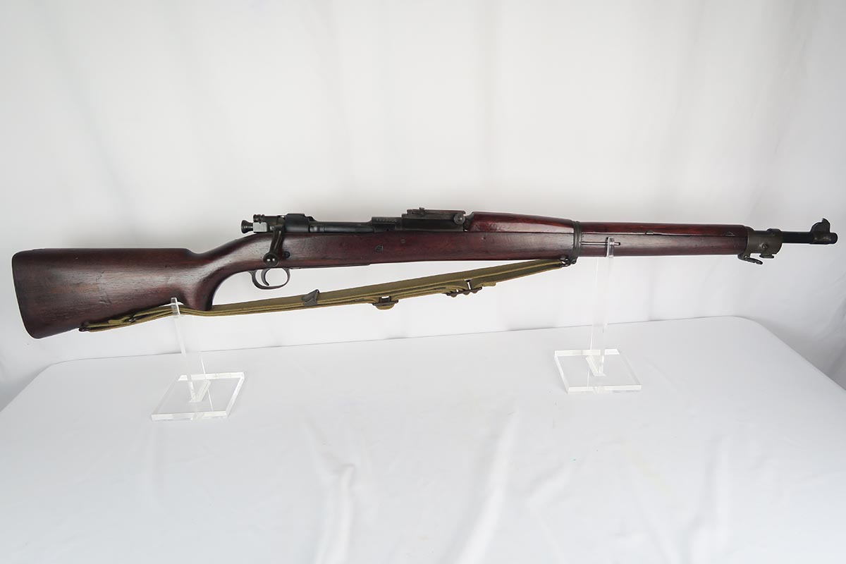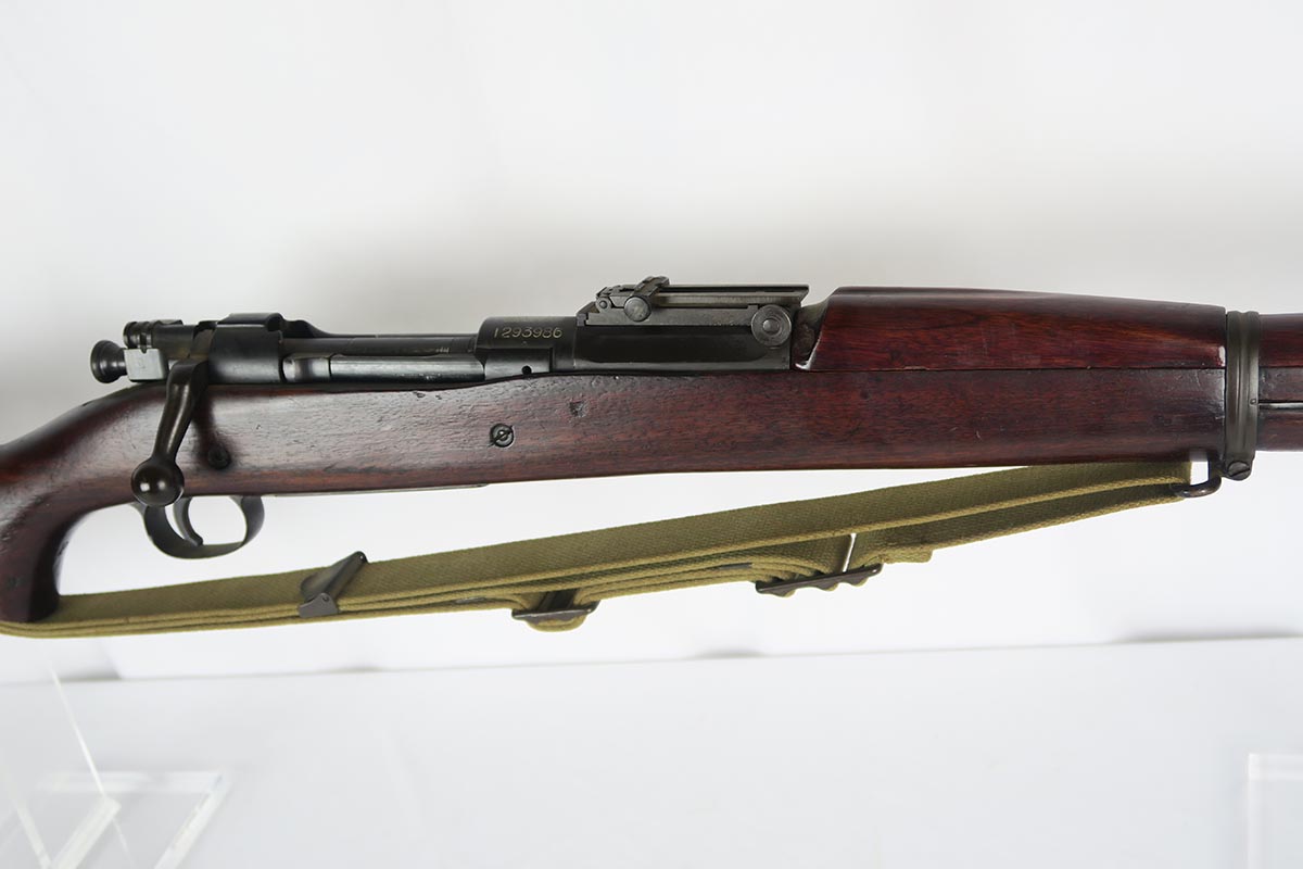 2/15/18 – This is a very nice example of a Springfield Armory M1903, manufactured in March of 1929. The M1903 Springfield, caliber .30-06, is an American five-round magazine fed, bolt-action service repeating rifle, used primarily during the first half of the 20th century. It was officially adopted as a United States military bolt-action rifle on June 19, 1903, and saw service in World War I. It was officially replaced as the standard infantry rifle by the faster-firing semi-automatic eight-round M1 Garand starting in 1936. However, the M1903 Springfield remained in service as a standard issue infantry rifle during World War II, since the U.S. entered the war without sufficient M1 rifles to arm all troops. This particular rifle was manufactured between the wars, and has an excellent stock with no notable cracks or chips. The metal finish is very good as well, with patina coming through but only the front sight showing much finish loss. The sling appears original but is unmarked. The bore has strong rifling with minor residue but looks like it would clean out and still fire/function correctly. Some of the residue might be minor corrosion. The left side stock is marked RA-P, denoting Raritan Arsenal rebuild. It also has an Augusta Arsenal cartouche (AAH1).
