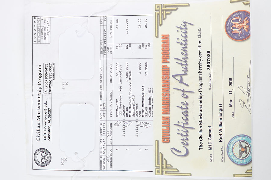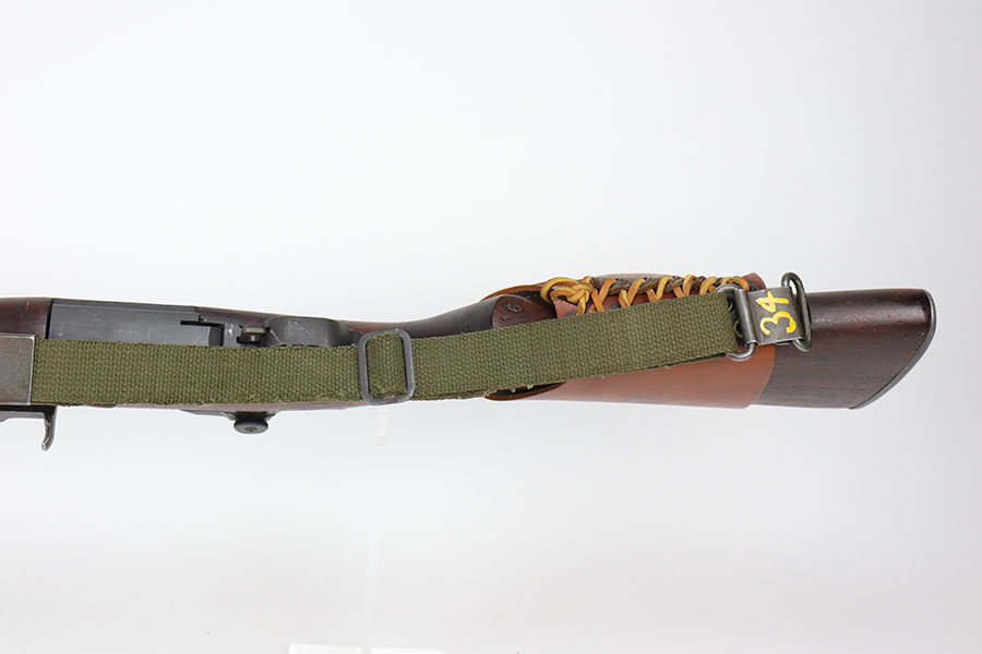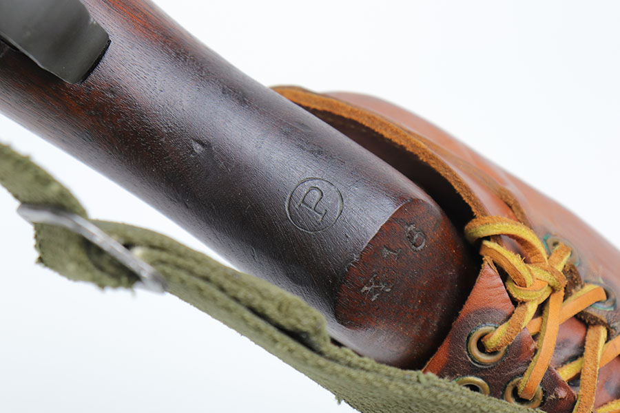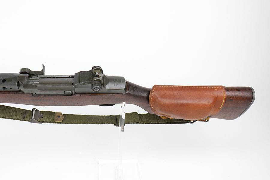 10/6/20 – This is an excellent Springfield Armory M1D Garand Sniper rifle from 1945. The gun was upgraded to M1D specifications at the armory and has a barrel date of June, 1952. It has an original M84 telescopic sight with clear optics that was made by Libby-Owens Ford. SA marked trigger group, bolt carrier and hammer, with standard markings on the heel of receiver. Circle ‘P’ proof on stock. The leather cheek pad is dated to November of 1962. Canvas sling. Comes with the CMP bill of sale and certificate of authenticity.