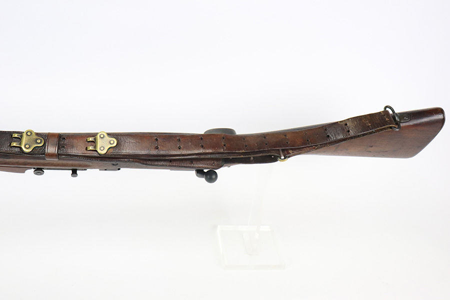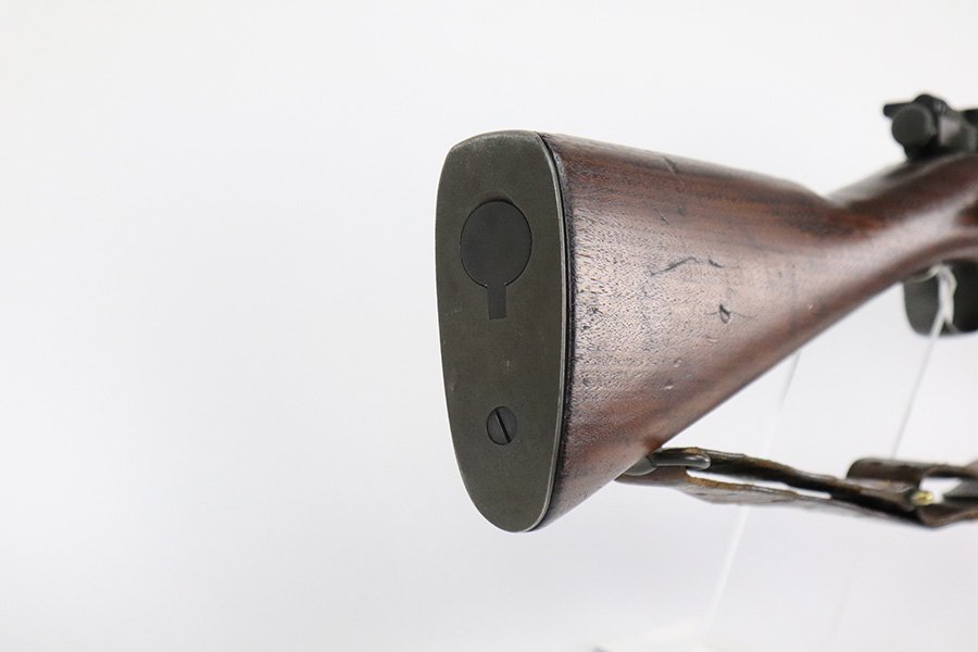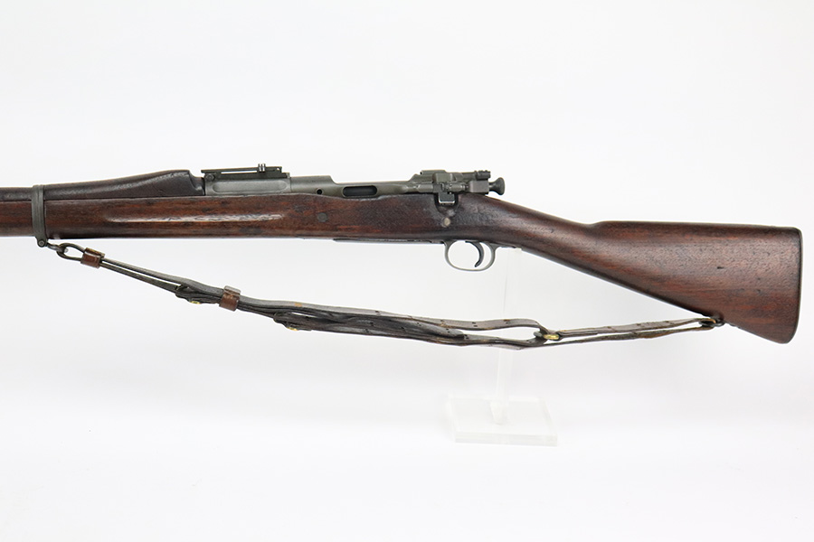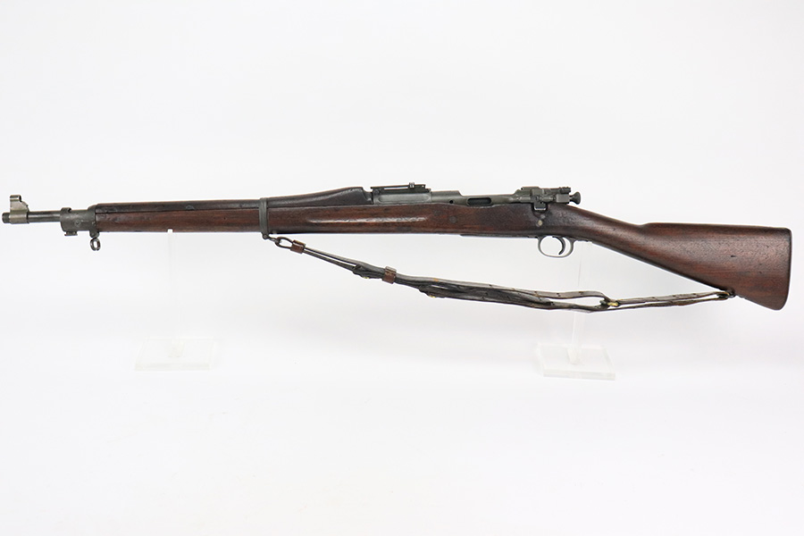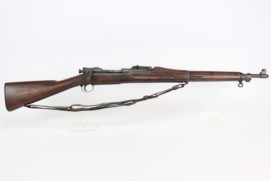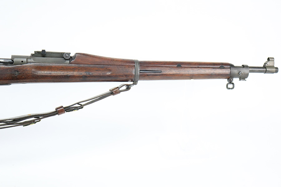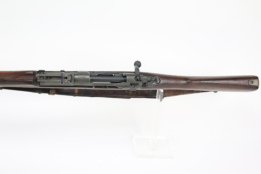 7/6/22 – This is an excellent example of a Springfield Model 1903 Mark I bolt action rifle. The receiver dates to 1919 and the barrel is dated to October of 1919. The barrel is marked “SA” and has a flaming bomb proof. The receiver has a cutout to receive a Pedersen device. The stock is “P” proofed, has a faint cartouche that appears to be a “C-SAA” proof. This would indicate the gun was reworked at the San Antonio Arsenal. The gun is excellent condition, retaining most of its finish with minor scuffs around the muzzle, and some thinning on the trigger group. Nice stock but it does have a surface crack through the handguard. Comes with a period-correct sling. Strong, shiny bore.