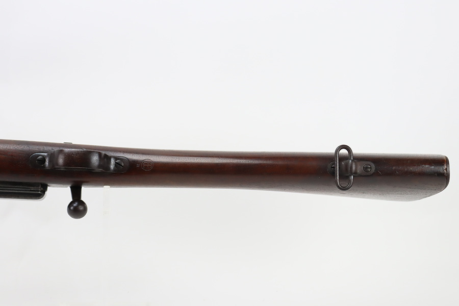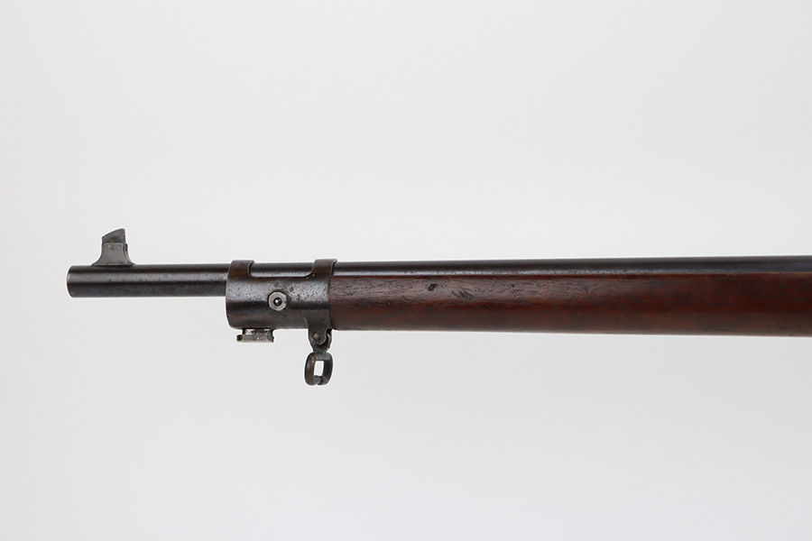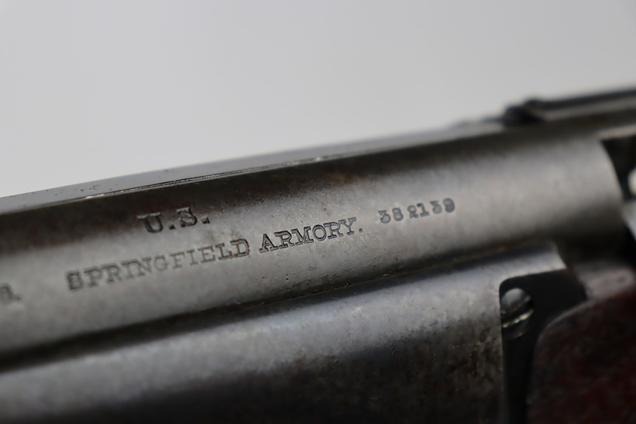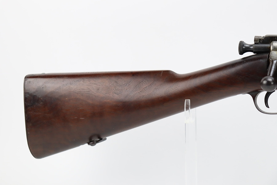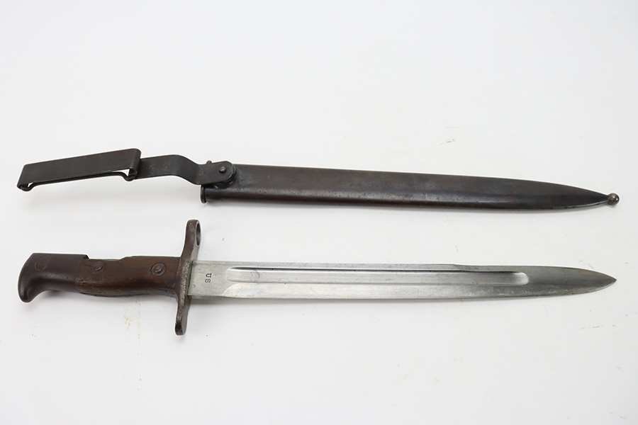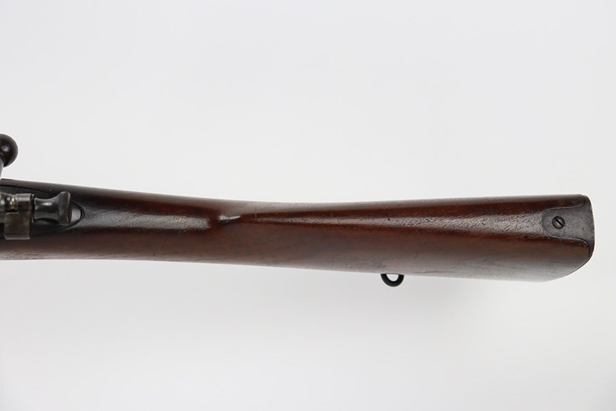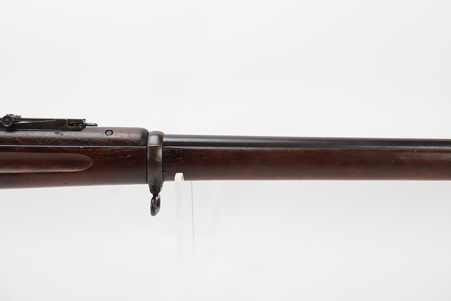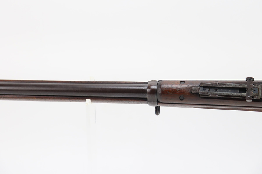 12/7/23 – This is a nice example of a Springfield Krag Model 1898 issued to the US military in 1902. The left side of the stock is dated 1902 and has the proper military inspection stamp. The wrist has the proper “P” proof. The gun also comes with a period-correct 1903-dated bayonet with an original scabbard. The original wire cartridge belt loop is still intact on the scabbard. Overall, the gun isn’t bad for its age. There is some thinning on and around the receiver area. But the most obvious sign of wear is dark brown patina and some spotty oxidation throughout. The original fire-bluing is still visible on the top of the bolt. Excellent stock with below-average wear. The bore has decent rifling, but there is tiny pitting throughout.
