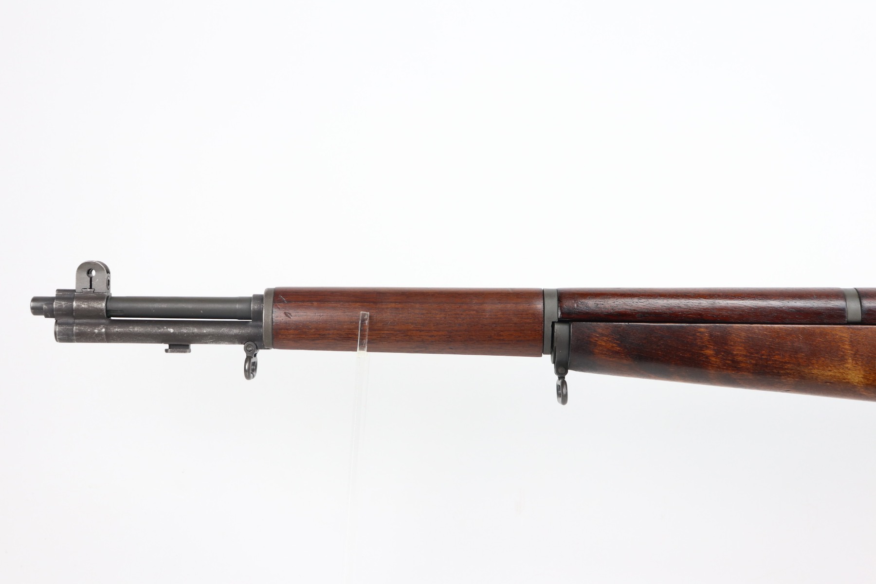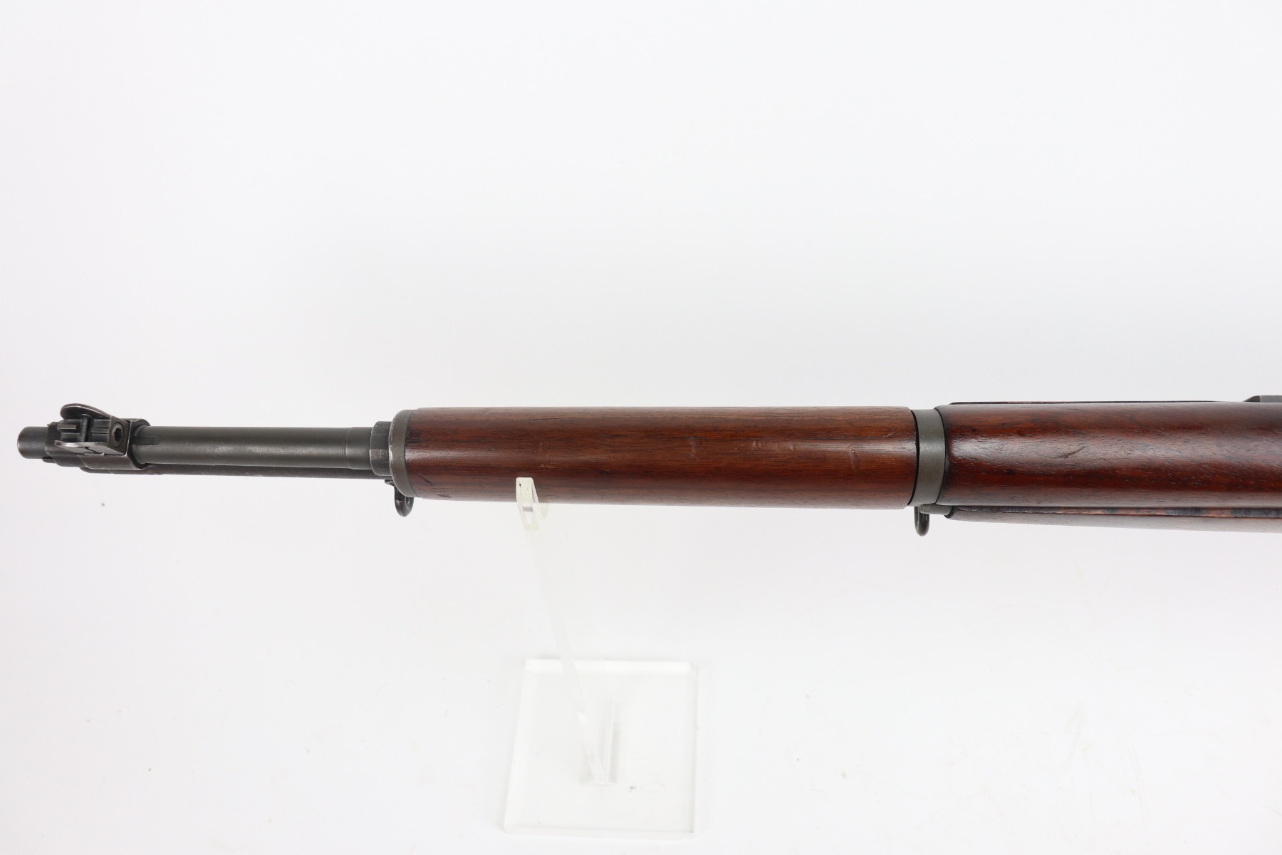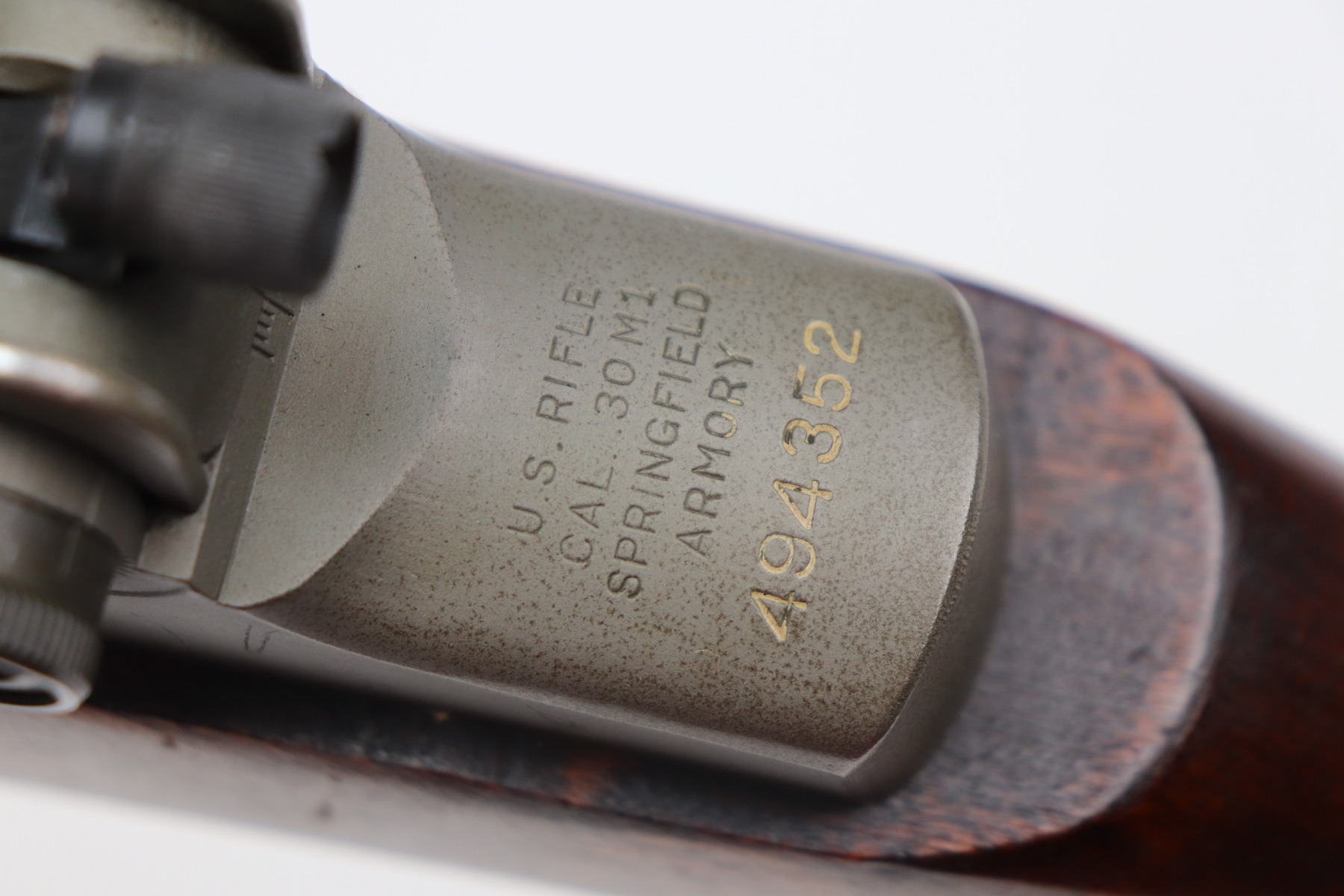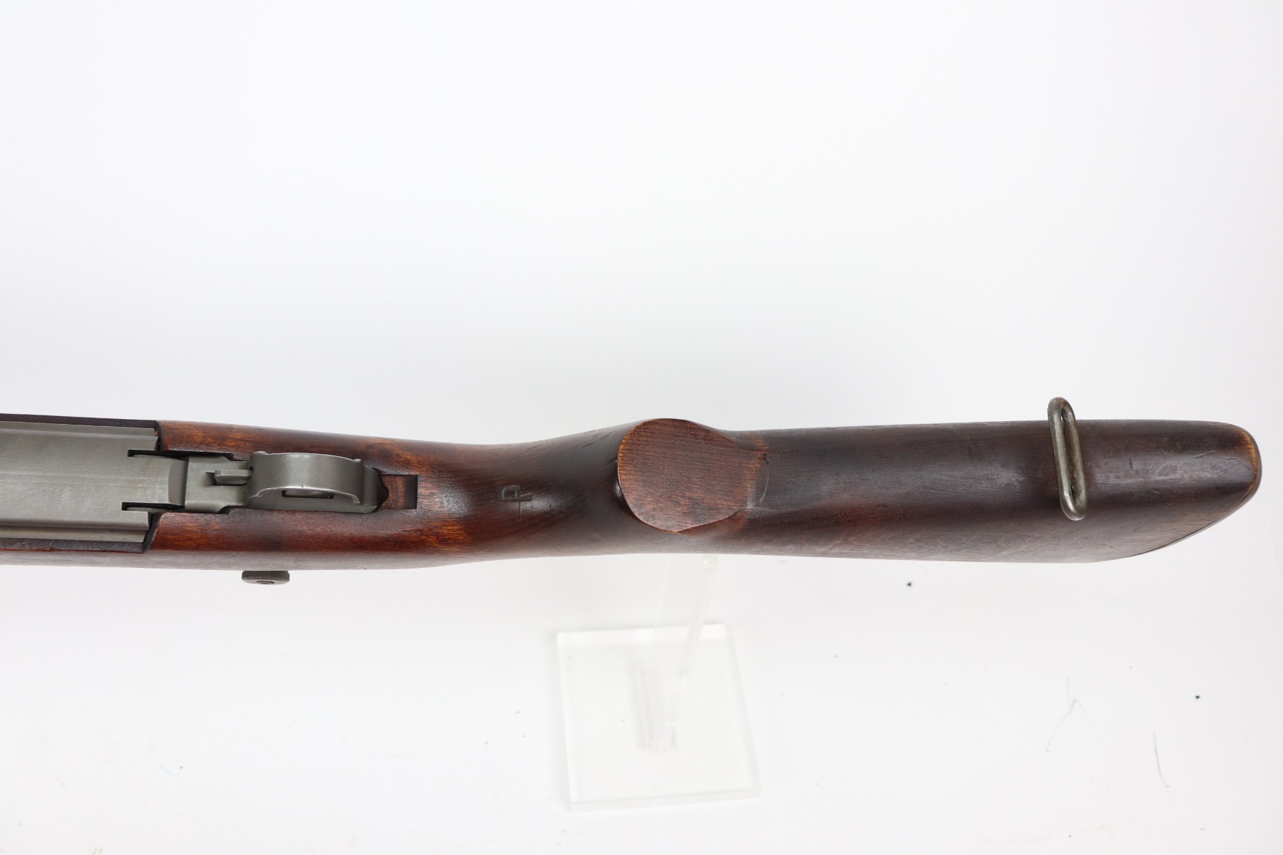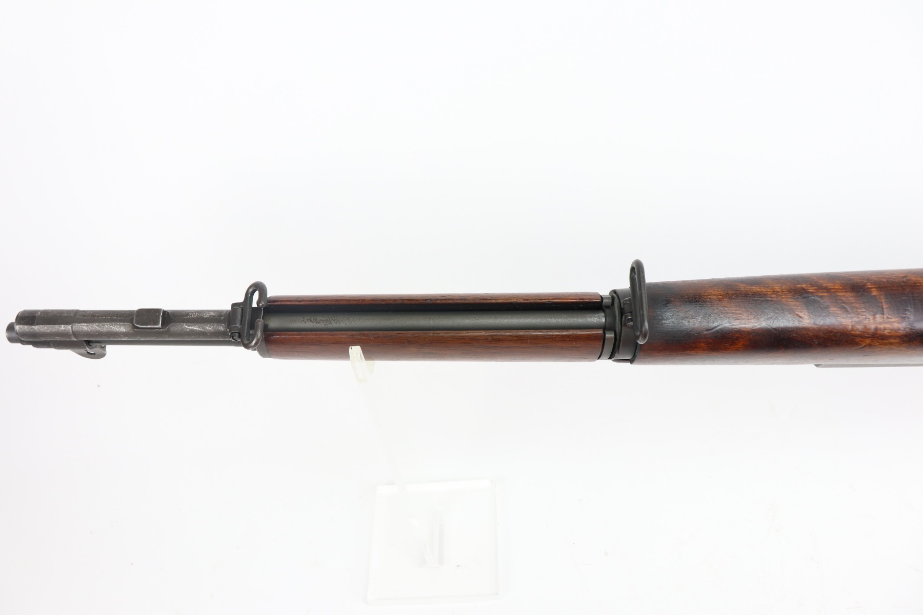 3/26/21 – This is an excellent Springfield M1 Garand. The receiver dates to 1942 and the barrel is dated 1951. This gun was likely reworked for the Korean war. A peep sight was added to the rear sight. “NM” mark on the op rod. It looks like it has been re-parkerized. It has retained most of its finish with minor handling marks. There is a “P” proof on the wrist of the stock. The stock is very nice with minor dings and scratches here and there. The bore has good rifling with minor pin-pricking in the grooves.