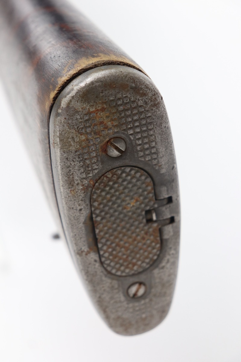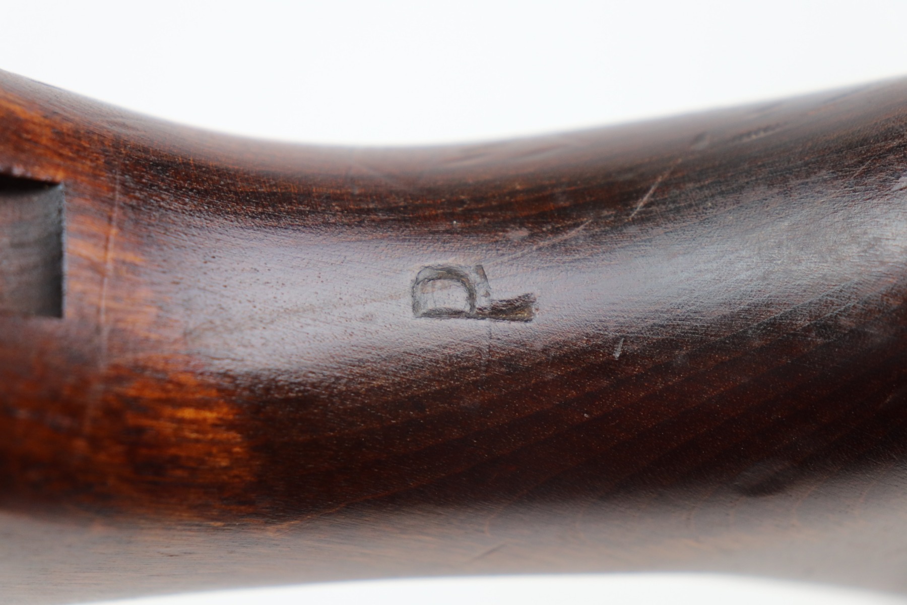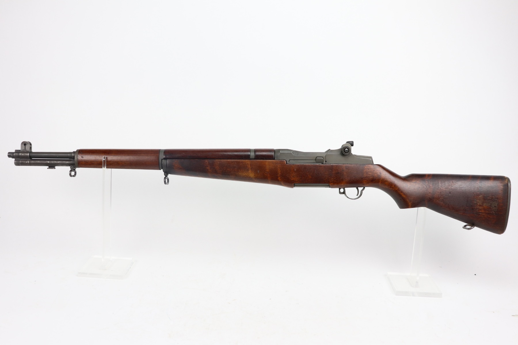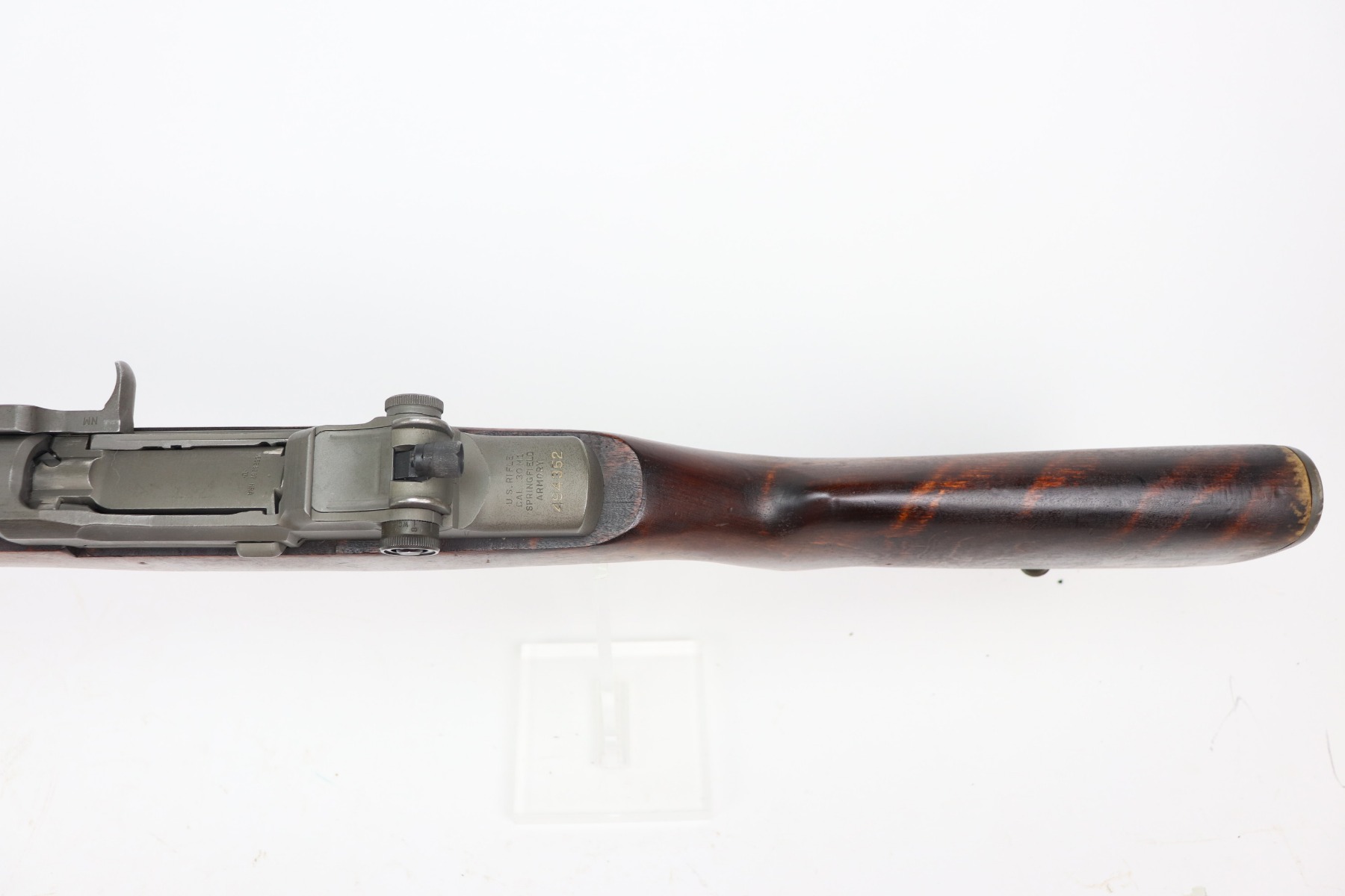 3/26/21 – This is an excellent Springfield M1 Garand. The receiver dates to 1942 and the barrel is dated 1951. This gun was likely reworked for the Korean war. A peep sight was added to the rear sight. “NM” mark on the op rod. It looks like it has been re-parkerized. It has retained most of its finish with minor handling marks. There is a “P” proof on the wrist of the stock. The stock is very nice with minor dings and scratches here and there. The bore has good rifling with minor pin-pricking in the grooves.