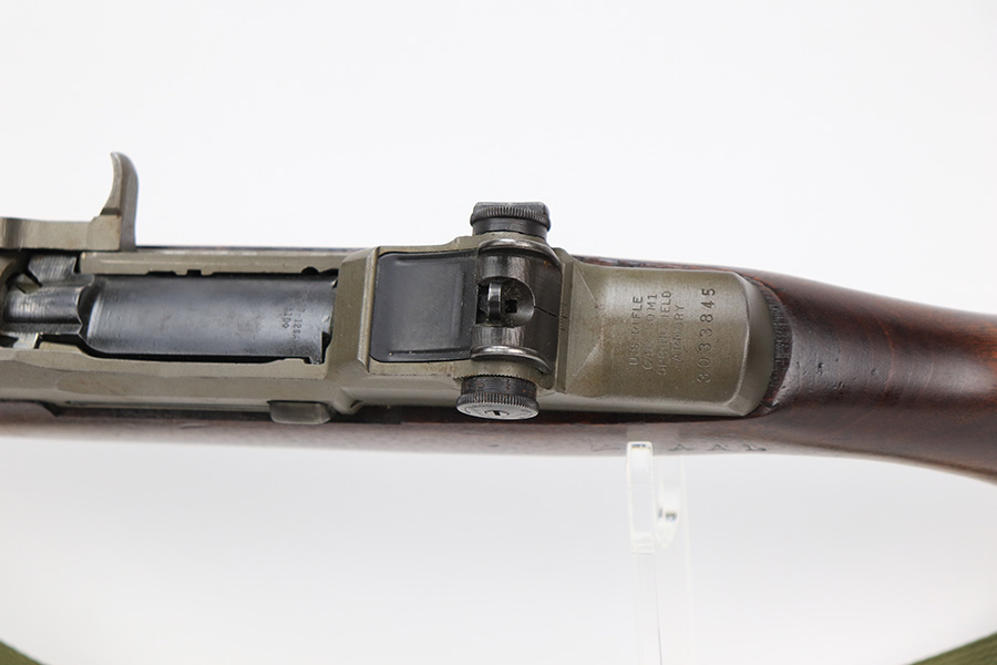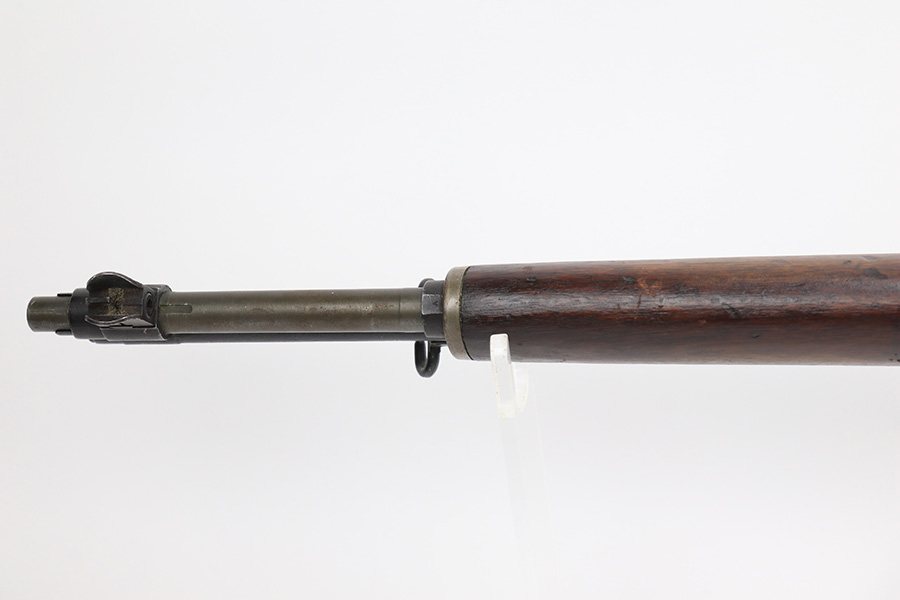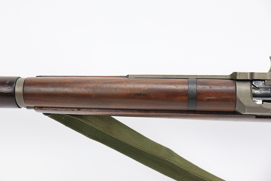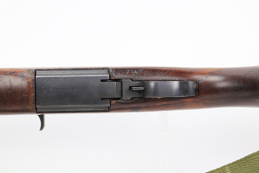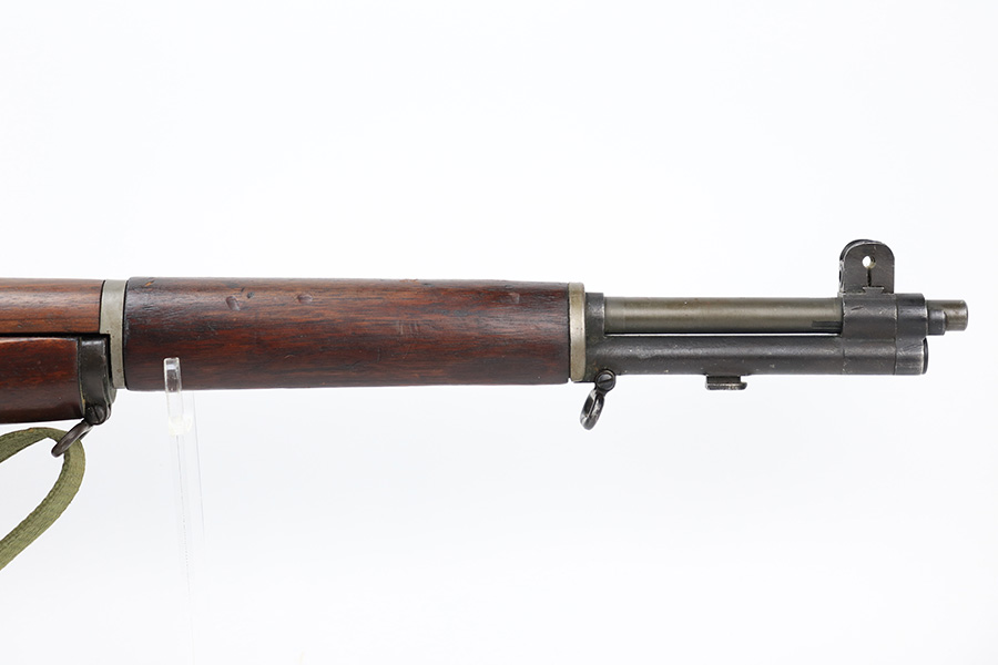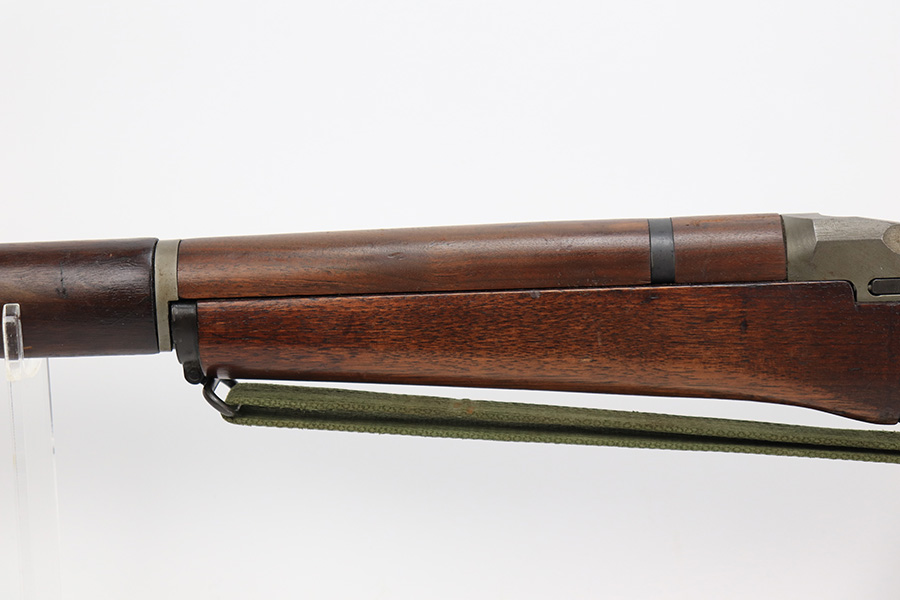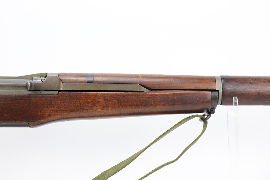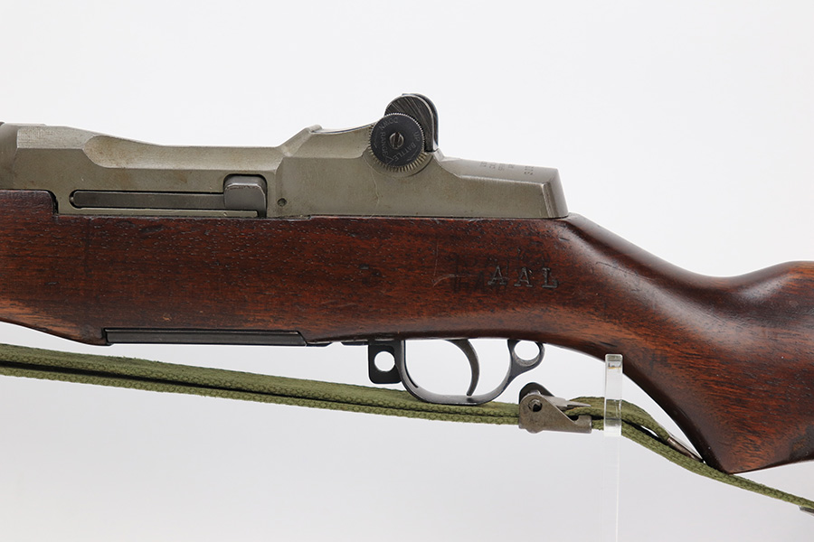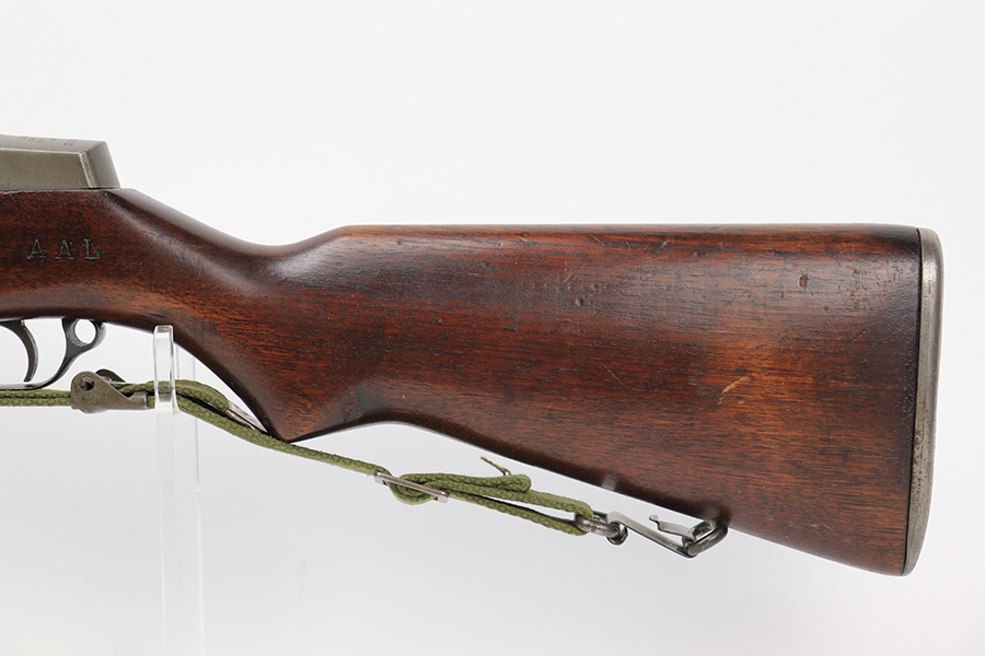 5/11/23 – This is an excellent example of a Springfield M1 Garand issued to the US military during WW2. The receiver dates to June of 1944. The barrel is Springfield marked and dated 1945. The left side of the stock is faintly SA proofed with a cross canon cartouche. Another tiny cartouche on the grip cap. There is an “AAL” arsenal marking on the left side of the stock as well. The gun has a proper lock bar sight. The metal parts have retained most of their original finish with very minor wear around the muzzle and on some of the high edges. Very nice wood furniture with minor dings and bruises here and there – also been lightly sanded. Tiny hairline crack in the upper handguard where it meets the receiver. Excellent bore with strong rifling. Comes with a canvas sling. Muzzle reading: 1. Throat reading: 0.