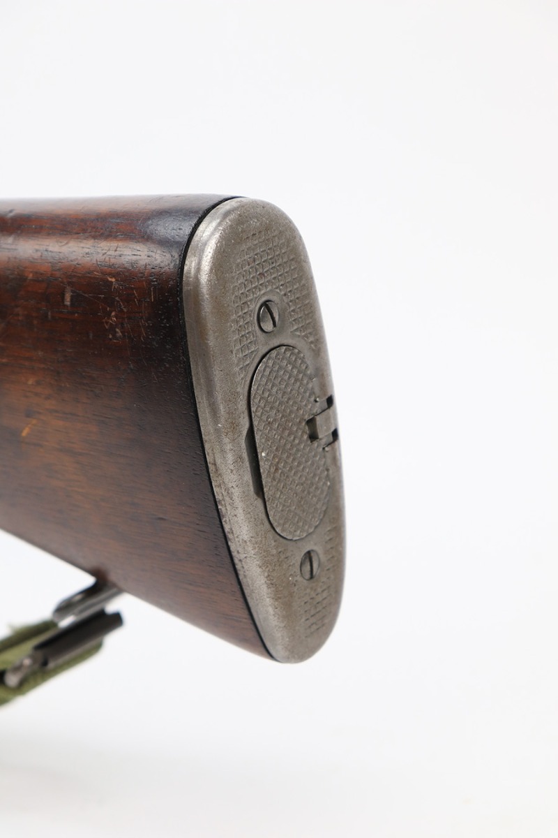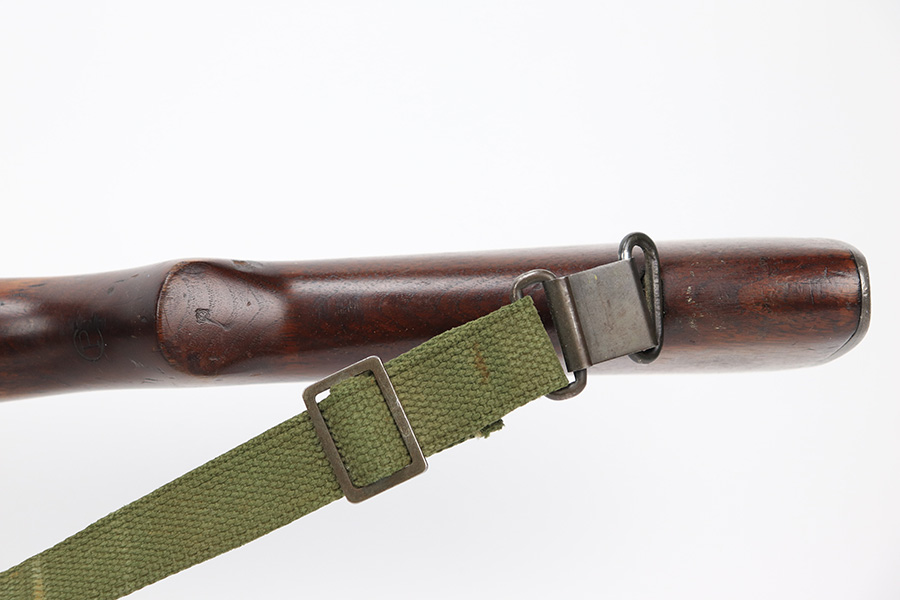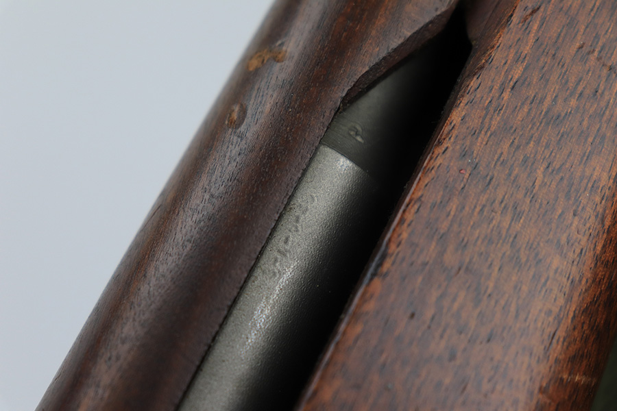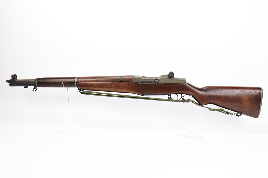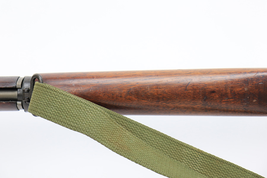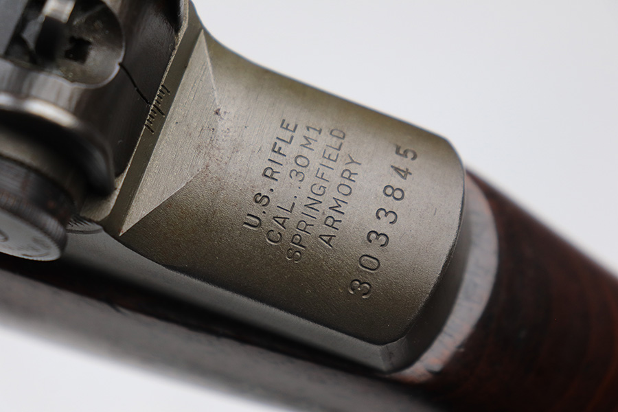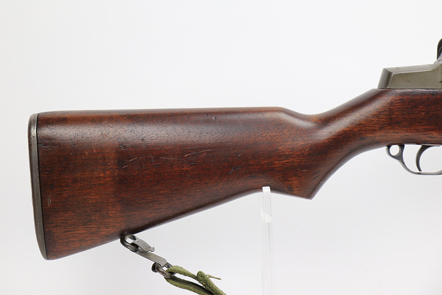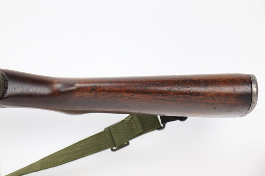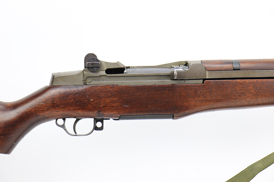 5/11/23 – This is an excellent example of a Springfield M1 Garand issued to the US military during WW2. The receiver dates to June of 1944. The barrel is Springfield marked and dated 1945. The left side of the stock is faintly SA proofed with a cross canon cartouche. Another tiny cartouche on the grip cap. There is an “AAL” arsenal marking on the left side of the stock as well. The gun has a proper lock bar sight. The metal parts have retained most of their original finish with very minor wear around the muzzle and on some of the high edges. Very nice wood furniture with minor dings and bruises here and there – also been lightly sanded. Tiny hairline crack in the upper handguard where it meets the receiver. Excellent bore with strong rifling. Comes with a canvas sling. Muzzle reading: 1. Throat reading: 0.