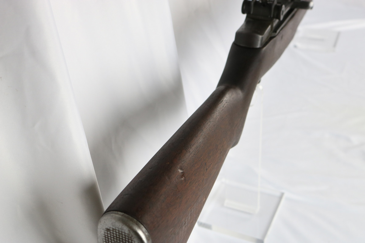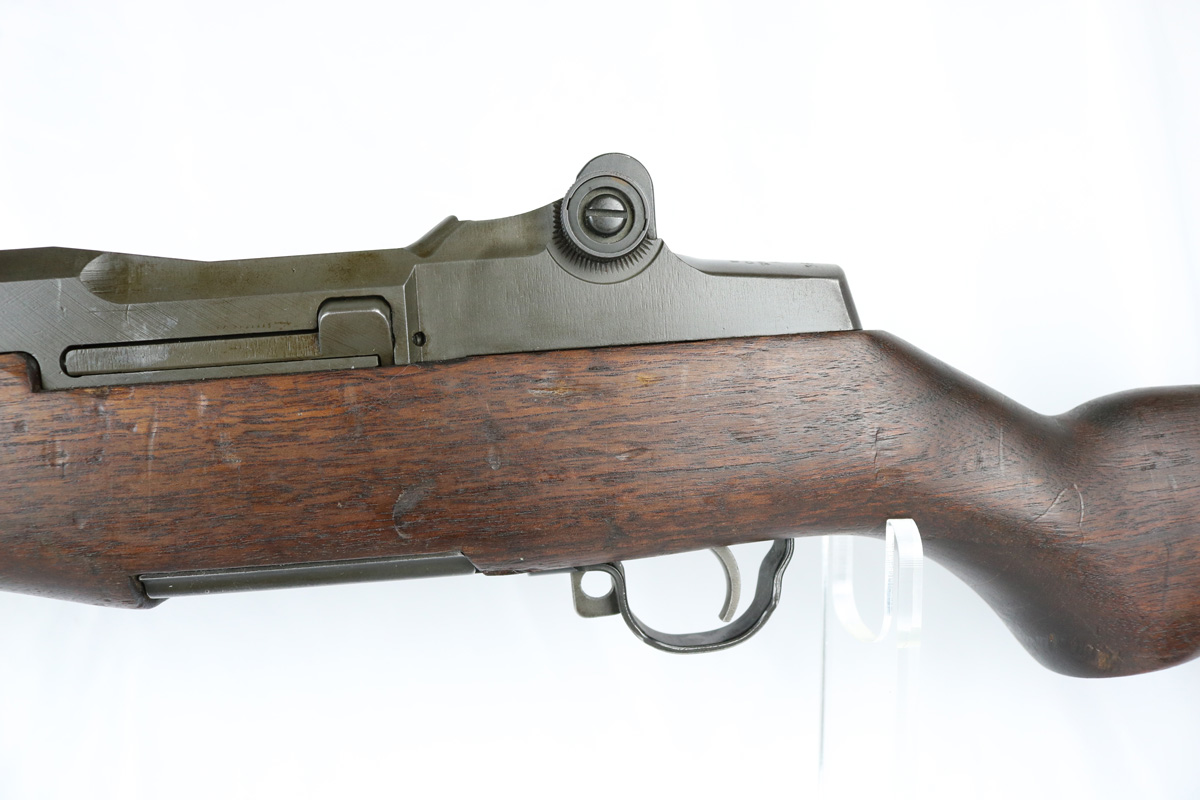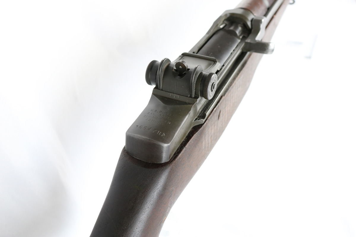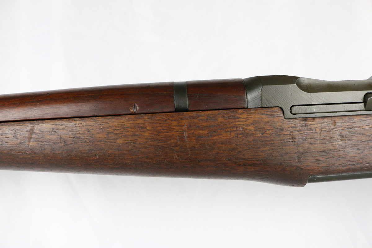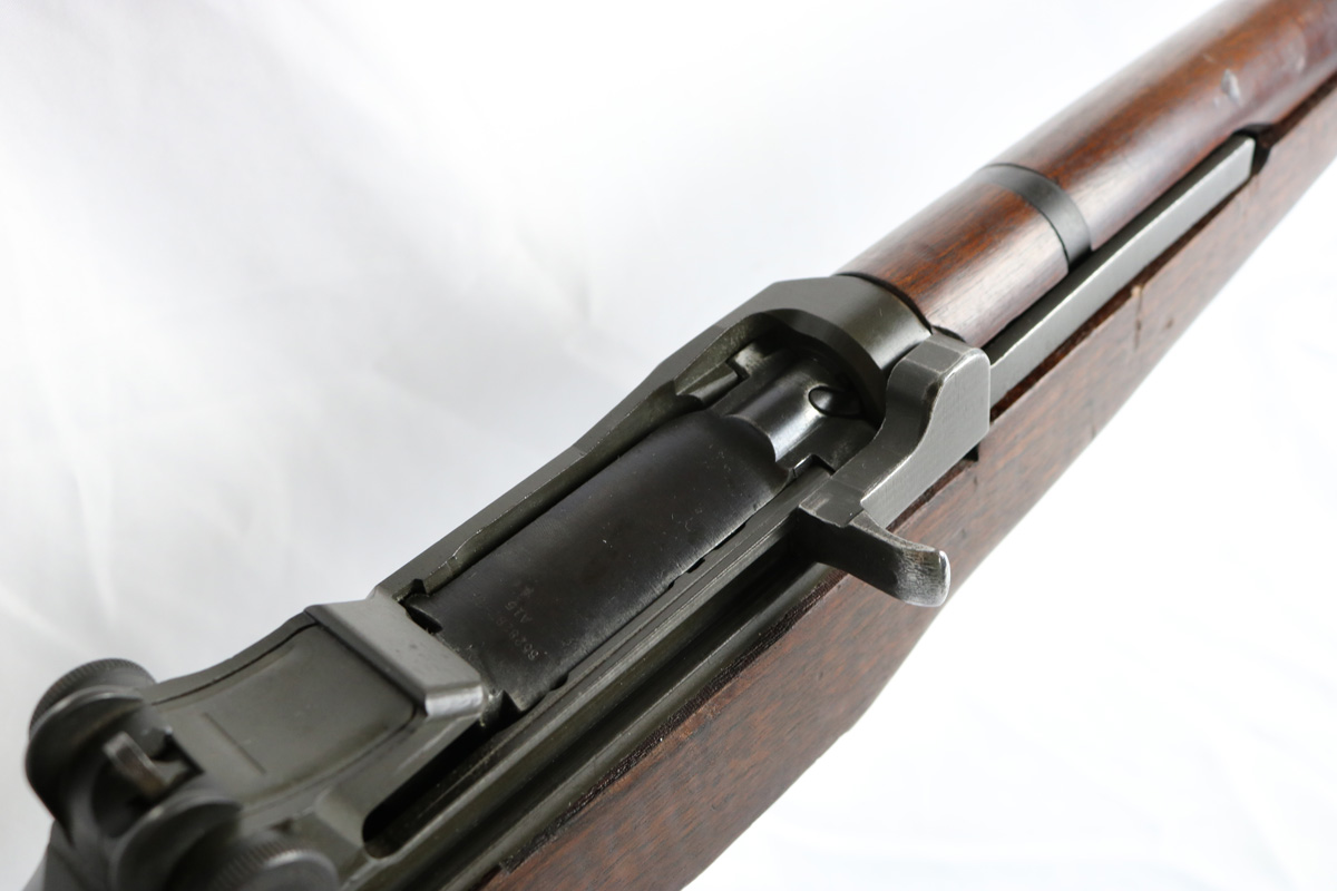 6/14/18 – This is an original late WW2 production M1 Garand rifle. The Receiver and barrel were made in March & April – most likely issued with reserve / replacement troops in the Pacific. The rifle is in excellent condition with only a few small spots of browning. There’s also some normal edge/use wear on the underside / muzzle area of the barrel. The wood stock is excellent despite one small chip on the underside of the wood near the magazine floorplate. The bore is clean with strong rifling. The muzzle is 1.5 and the gauge is 2. Guaranteed original and authentic.