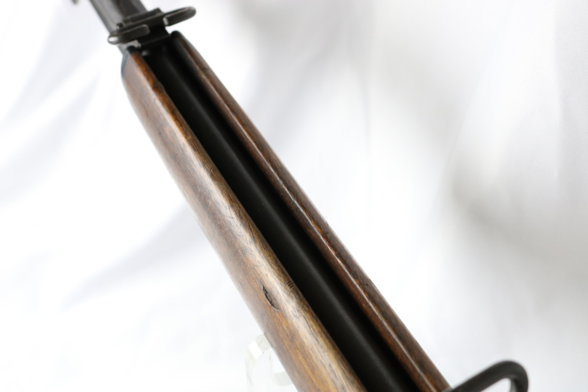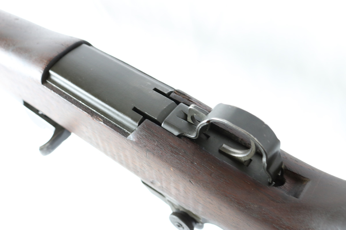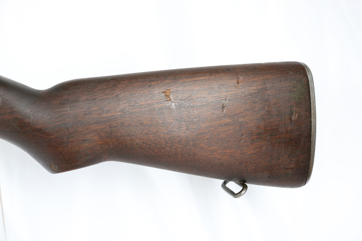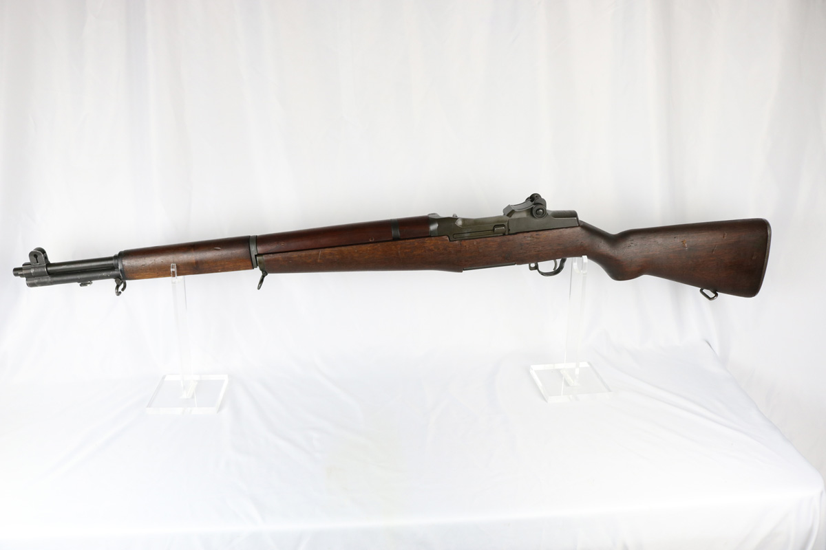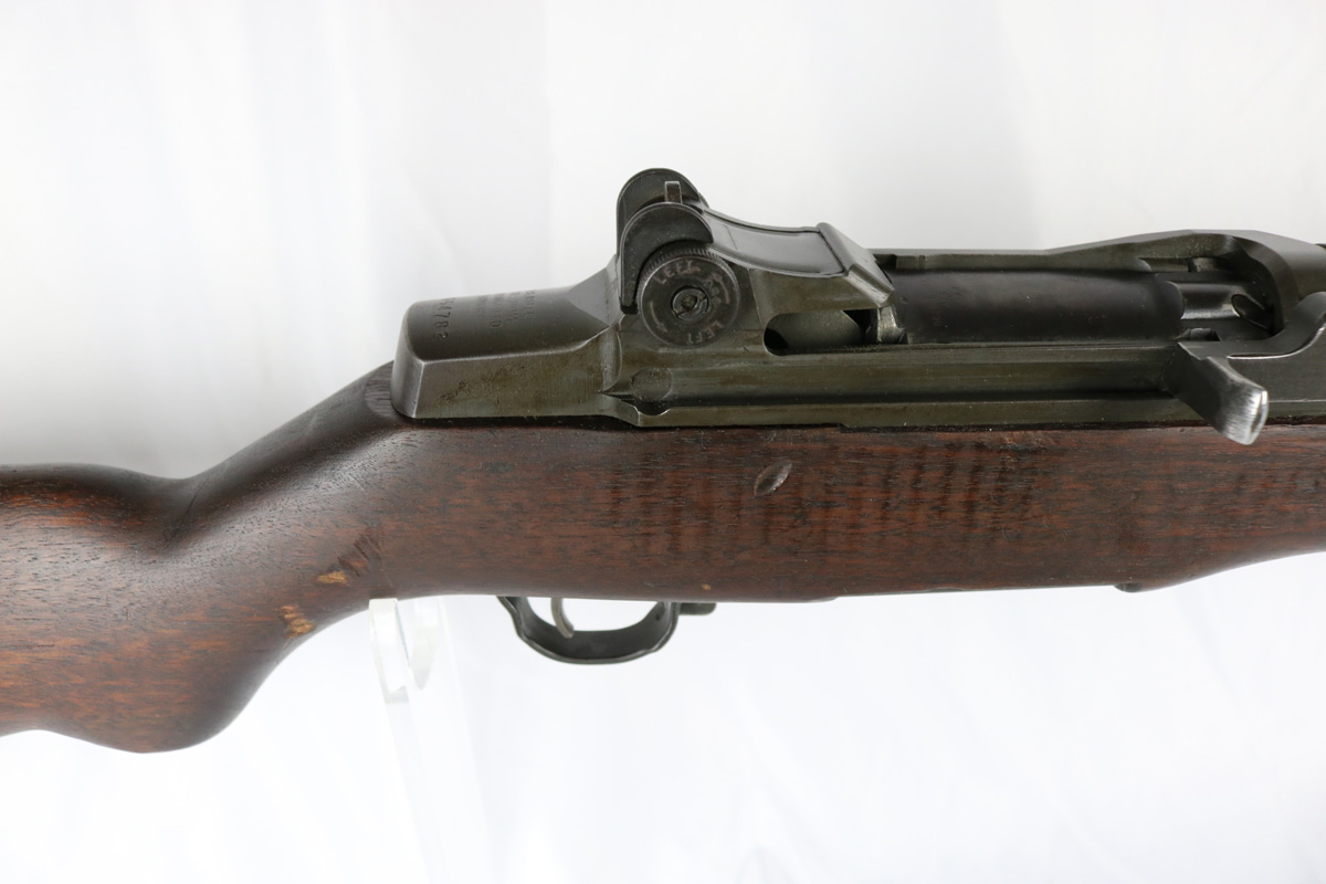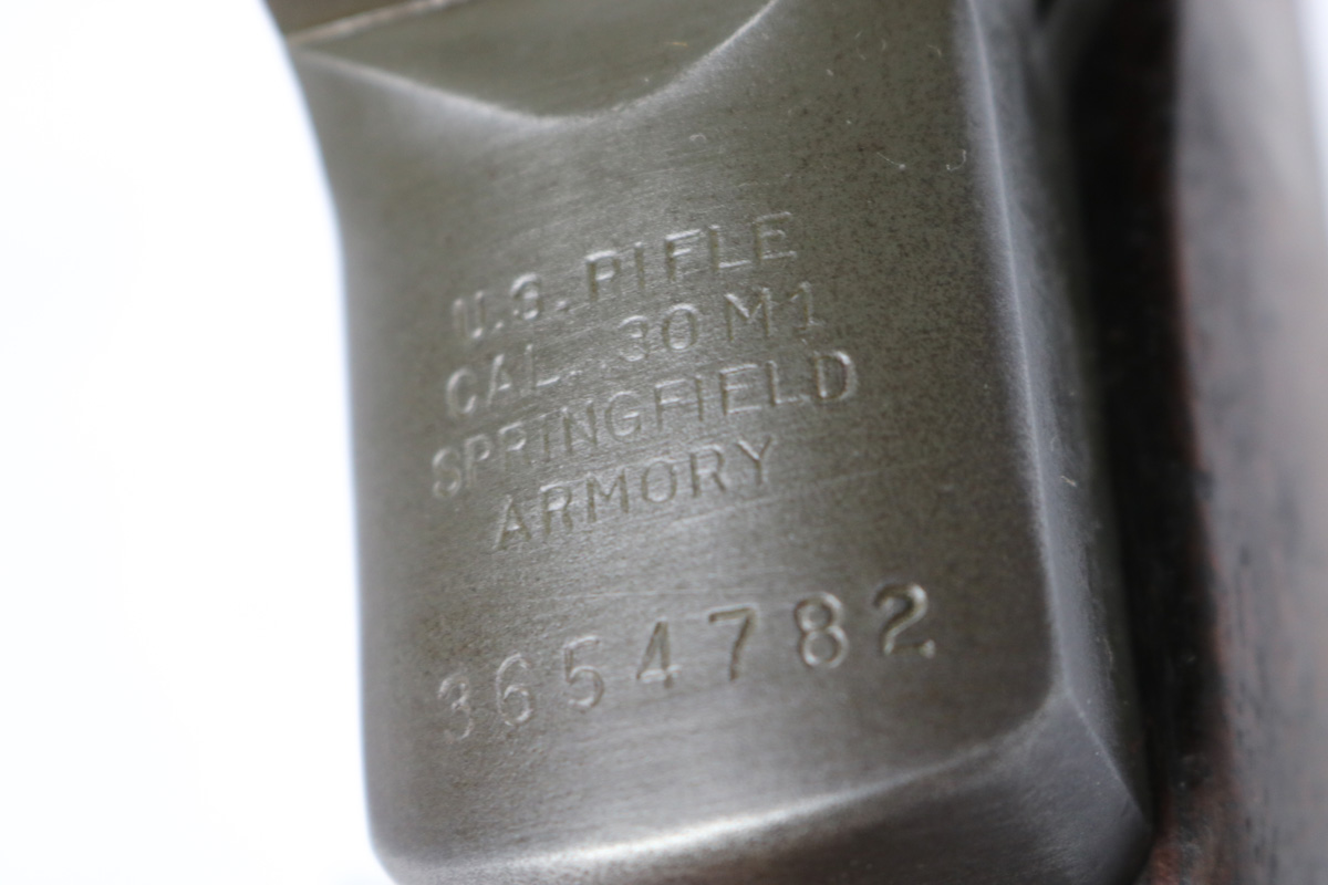6/14/18 – This is an original late WW2 production M1 Garand rifle. The Receiver and barrel were made in March & April – most likely issued with reserve / replacement troops in the Pacific. The rifle is in excellent condition with only a few small spots of browning. There’s also some normal edge/use wear on the underside / muzzle area of the barrel. The wood stock is excellent despite one small chip on the underside of the wood near the magazine floorplate. The bore is clean with strong rifling. The muzzle is 1.5 and the gauge is 2. Guaranteed original and authentic.