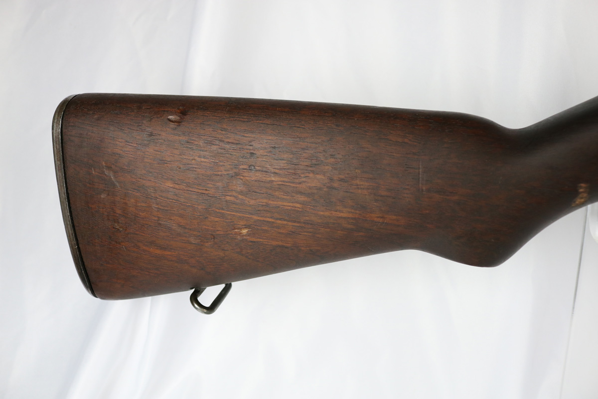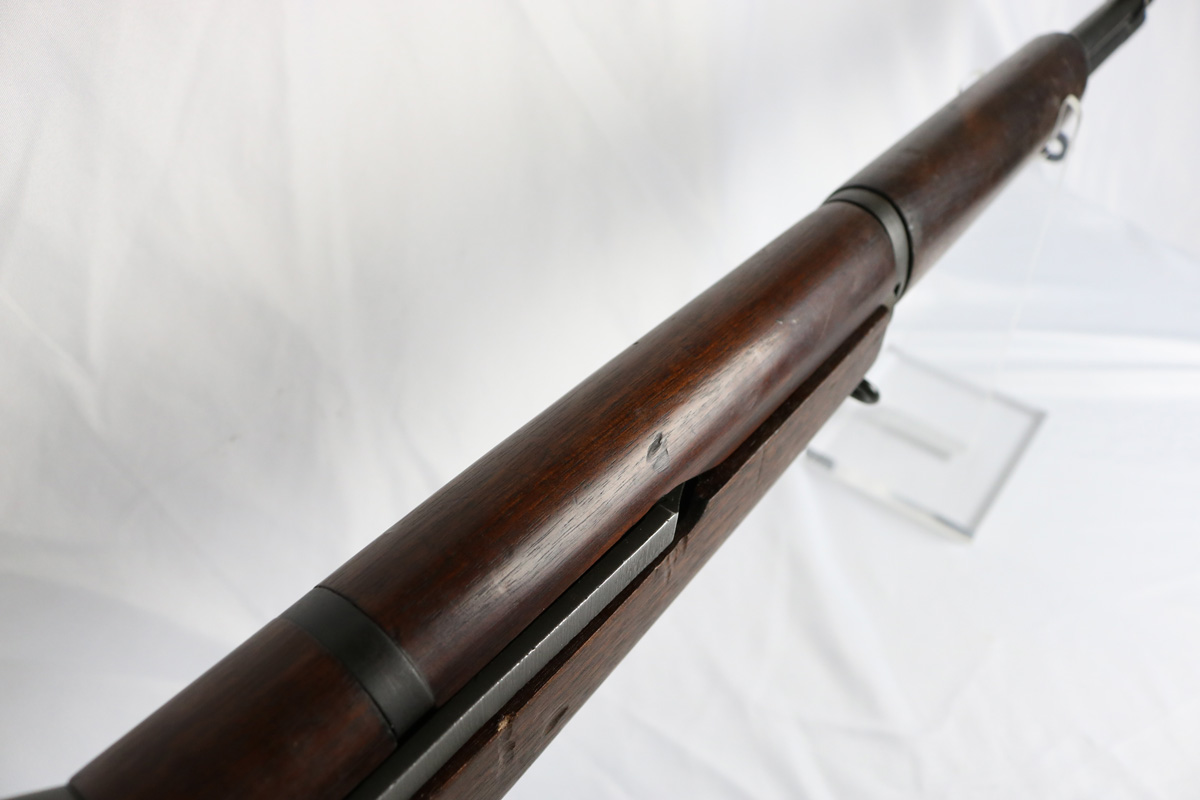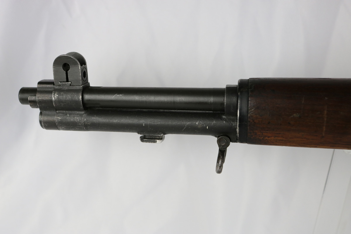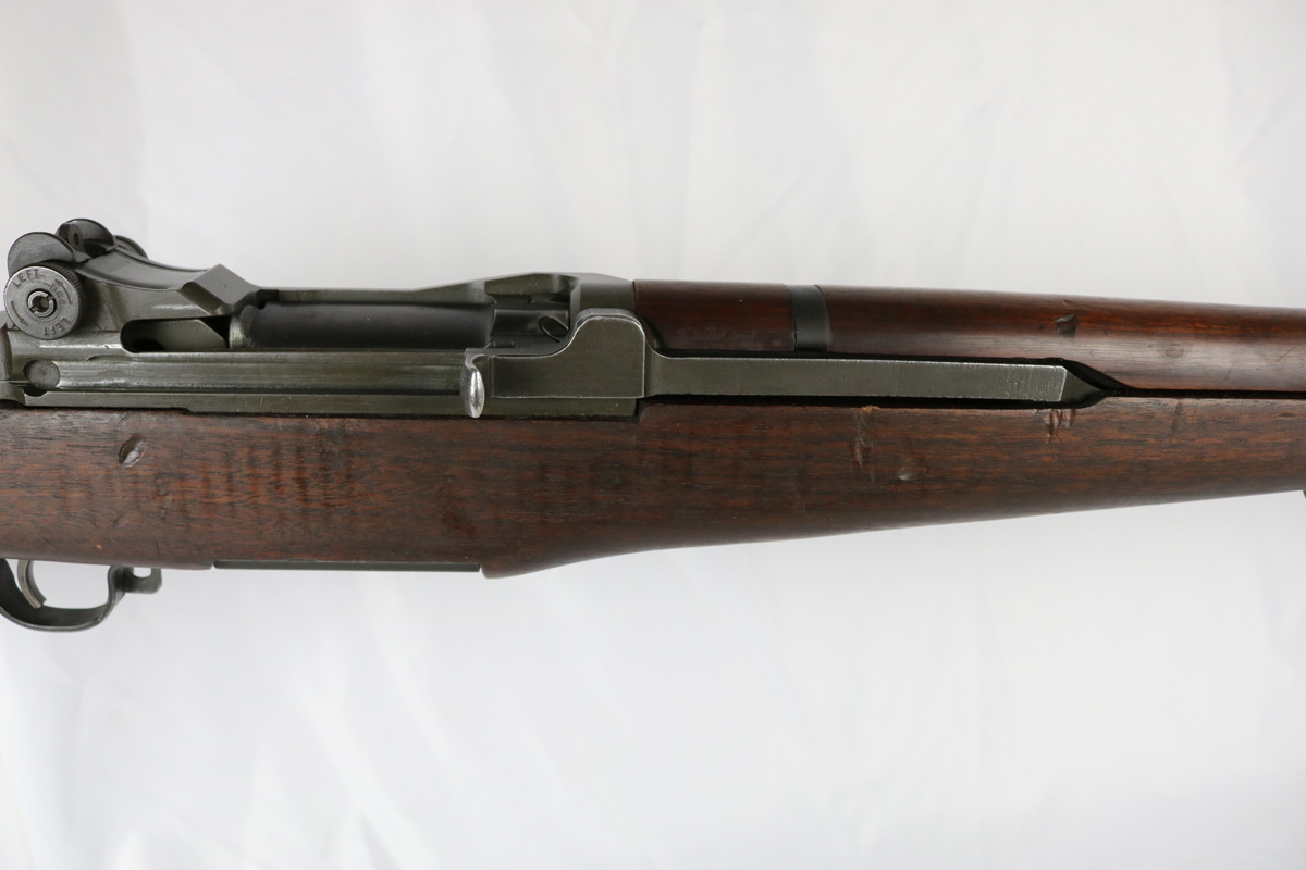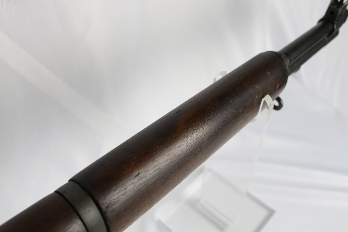 6/14/18 – This is an original late WW2 production M1 Garand rifle. The Receiver and barrel were made in March & April – most likely issued with reserve / replacement troops in the Pacific. The rifle is in excellent condition with only a few small spots of browning. There’s also some normal edge/use wear on the underside / muzzle area of the barrel. The wood stock is excellent despite one small chip on the underside of the wood near the magazine floorplate. The bore is clean with strong rifling. The muzzle is 1.5 and the gauge is 2. Guaranteed original and authentic.