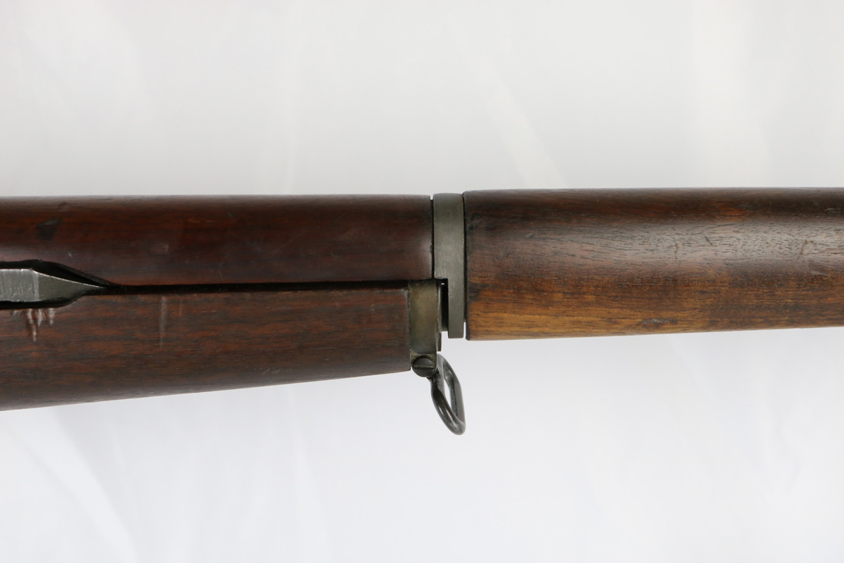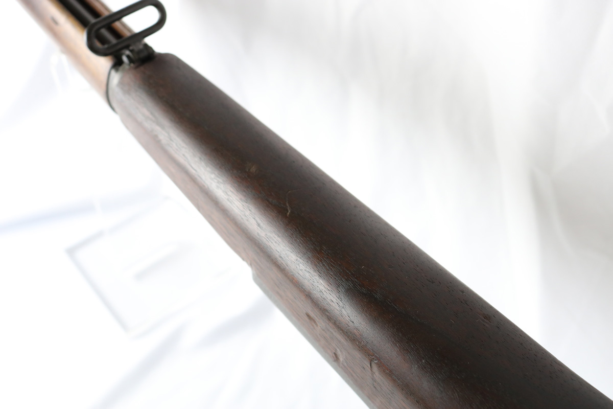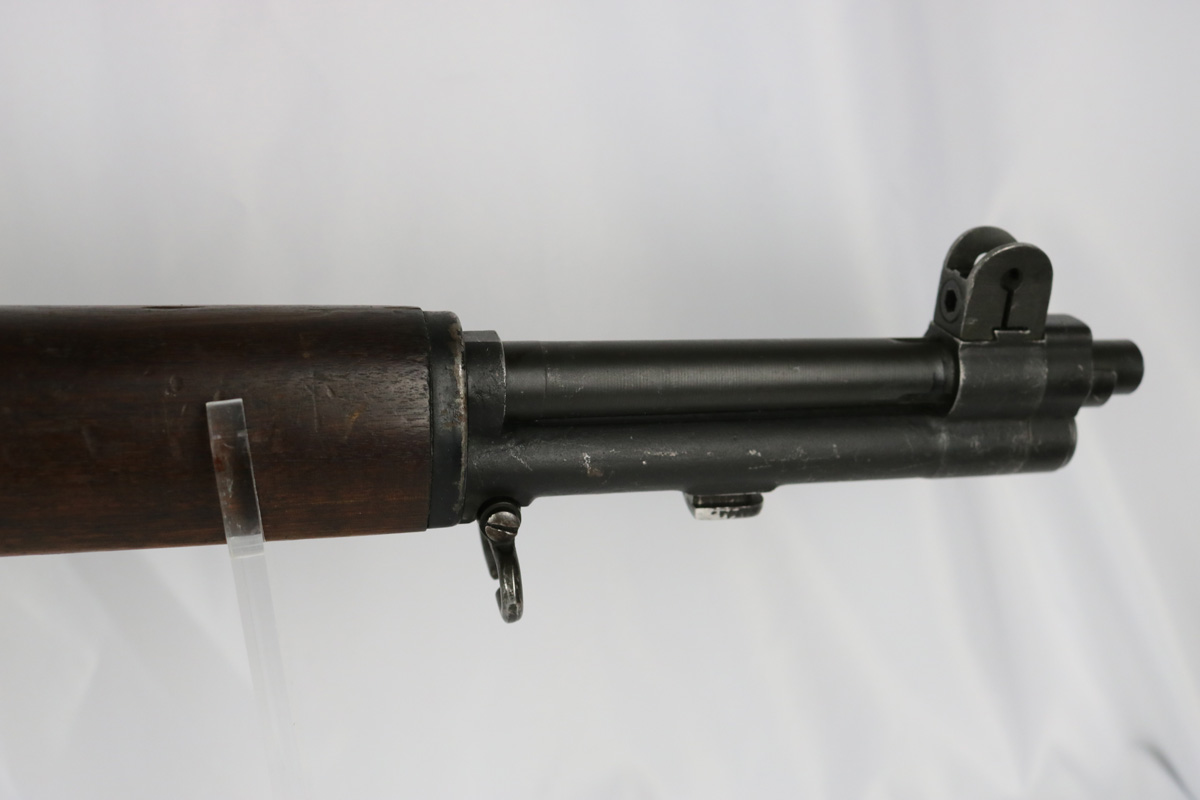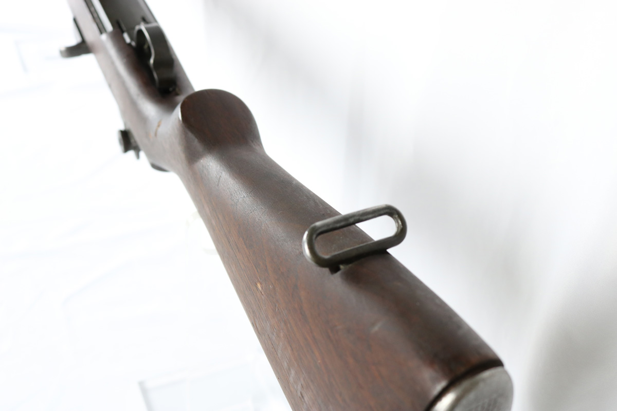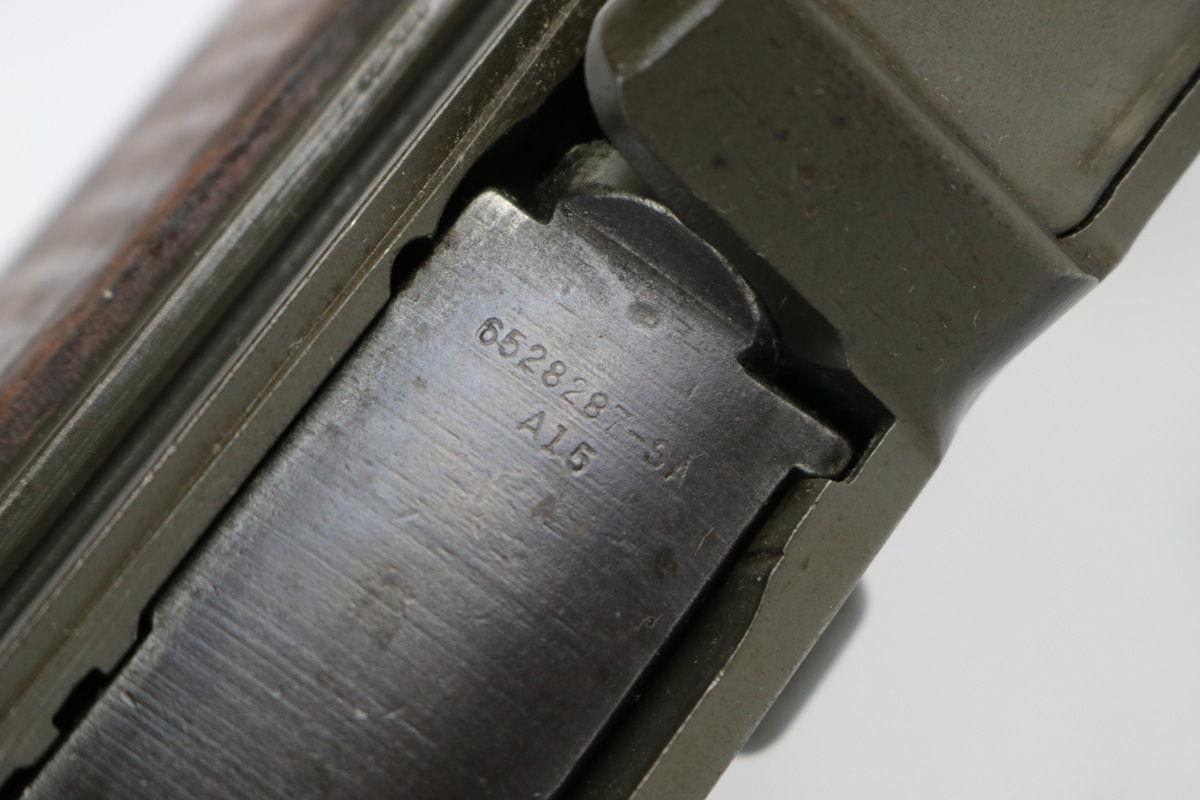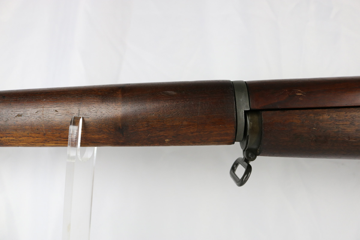 6/14/18 – This is an original late WW2 production M1 Garand rifle. The Receiver and barrel were made in March & April – most likely issued with reserve / replacement troops in the Pacific. The rifle is in excellent condition with only a few small spots of browning. There’s also some normal edge/use wear on the underside / muzzle area of the barrel. The wood stock is excellent despite one small chip on the underside of the wood near the magazine floorplate. The bore is clean with strong rifling. The muzzle is 1.5 and the gauge is 2. Guaranteed original and authentic.