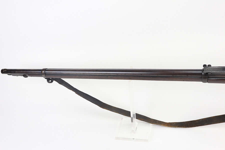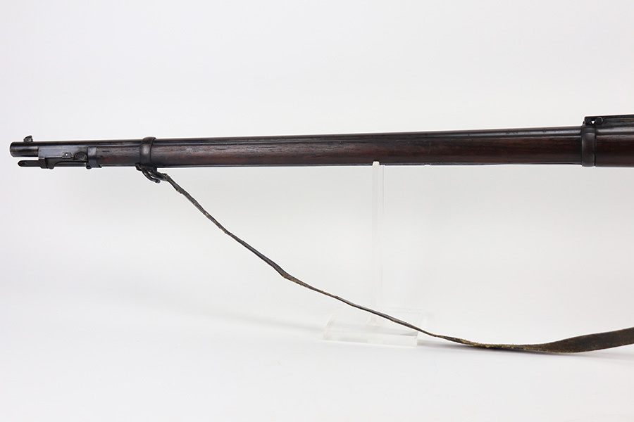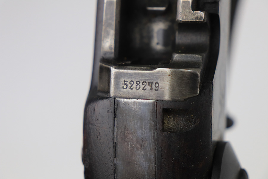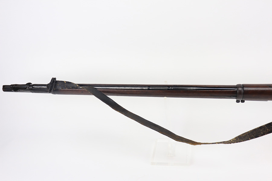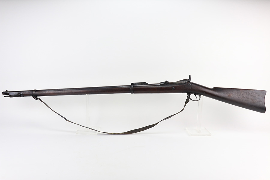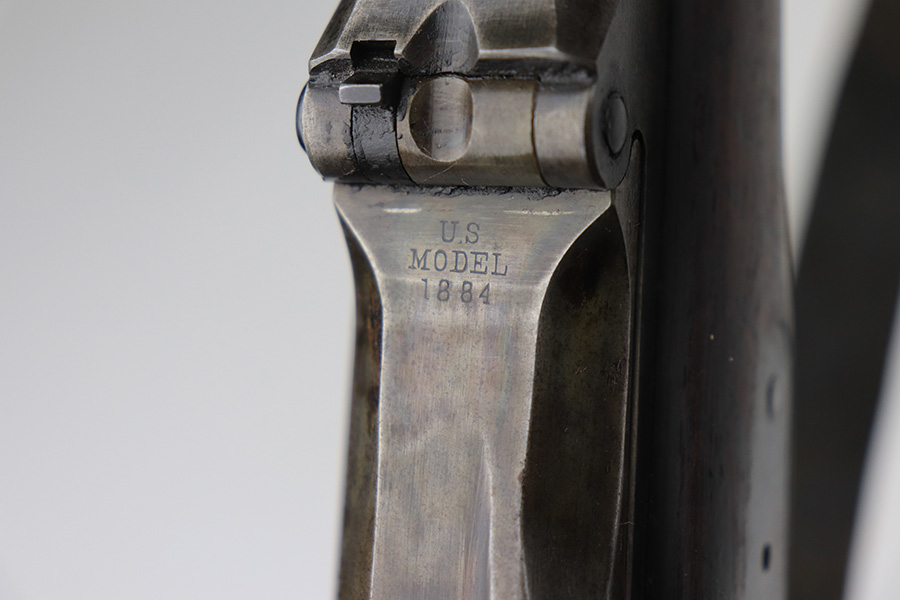 1/28/22 – This is a nice example of a Springfield Model 1884 “Trapdoor” Rifle, manufactured in 1891. The model 1884 traces its roots back to the design of the Springfield 1873. The model 1884 incorporated a significant number of improvements that had been made between 1878 and 1879. It also featured a serrated trigger that had been incorporated into the Springfield rifle design in 1883. This one has a rare experimental rod bayonet where the cleaning rod also serves as a bayonet. This one is not one of the original 2,000 made because it is not in the correct serial range, ~320000. So it was part of the later run. This gun is in nice condition. There isn’t a ton of actual finish loss, but there is noticeable brown patina throughout. Heavy oxidation on the trigger group and butt plate. There are light scratches and areas of splotchy discoloration along the whole barrel. There is a small area near the muzzle with some noticeable dings in the barrel. The stock is nice with minor dings and dents here and there. One noticeable gouge on the right side of the butt stock. The bore is shiny with strong rifling with just one small area of minor pitting. The gun comes with a worn leather sling.