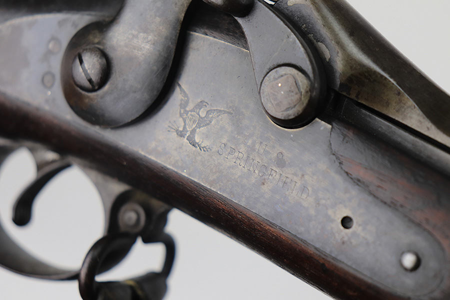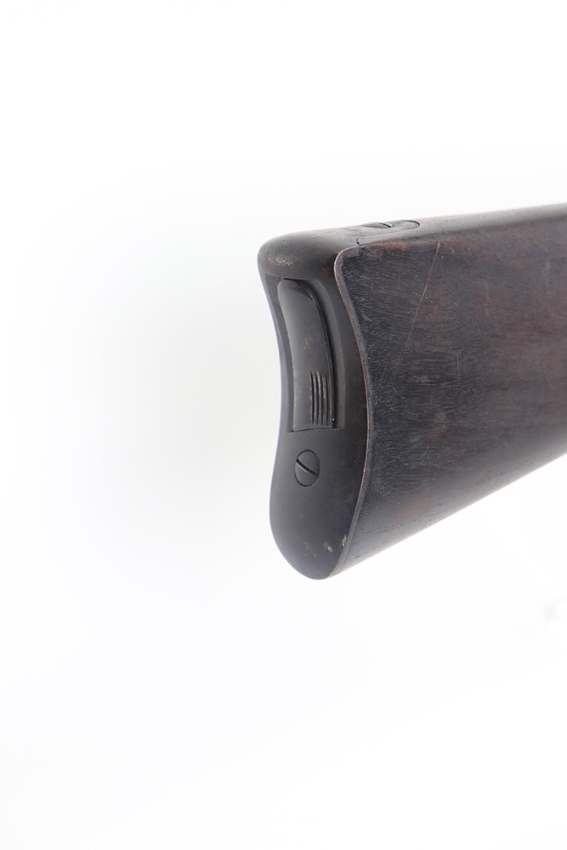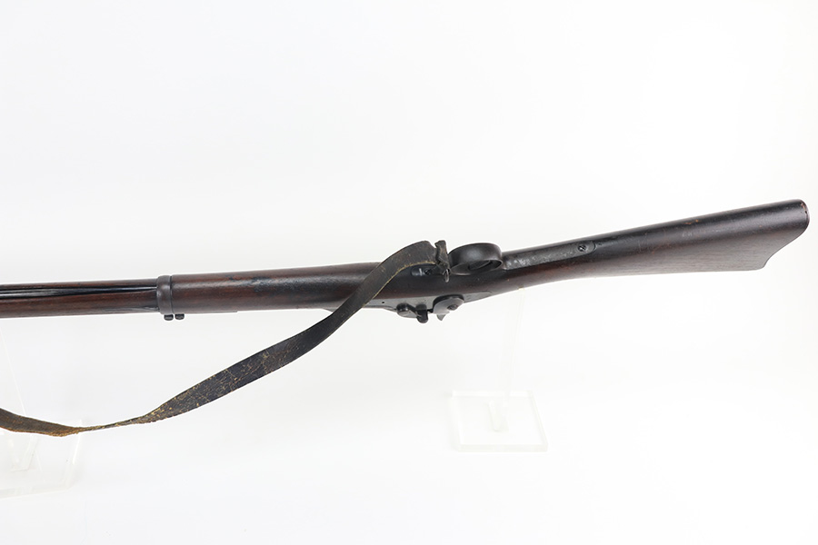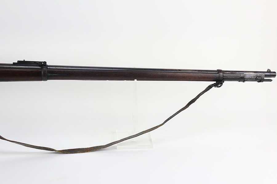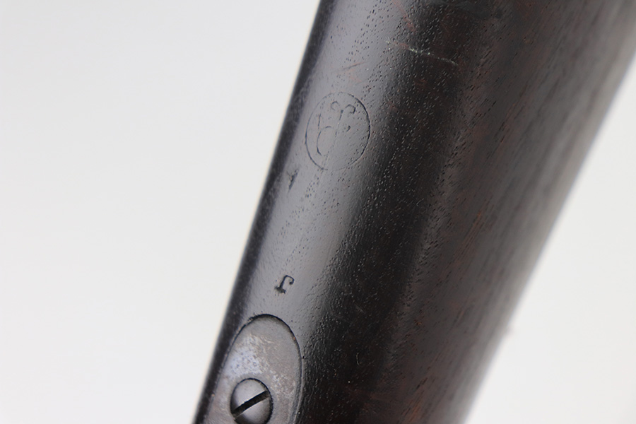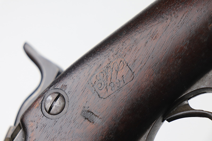 1/28/22 – This is a nice example of a Springfield Model 1884 “Trapdoor” Rifle, manufactured in 1891. The model 1884 traces its roots back to the design of the Springfield 1873. The model 1884 incorporated a significant number of improvements that had been made between 1878 and 1879. It also featured a serrated trigger that had been incorporated into the Springfield rifle design in 1883. This one has a rare experimental rod bayonet where the cleaning rod also serves as a bayonet. This one is not one of the original 2,000 made because it is not in the correct serial range, ~320000. So it was part of the later run. This gun is in nice condition. There isn’t a ton of actual finish loss, but there is noticeable brown patina throughout. Heavy oxidation on the trigger group and butt plate. There are light scratches and areas of splotchy discoloration along the whole barrel. There is a small area near the muzzle with some noticeable dings in the barrel. The stock is nice with minor dings and dents here and there. One noticeable gouge on the right side of the butt stock. The bore is shiny with strong rifling with just one small area of minor pitting. The gun comes with a worn leather sling.