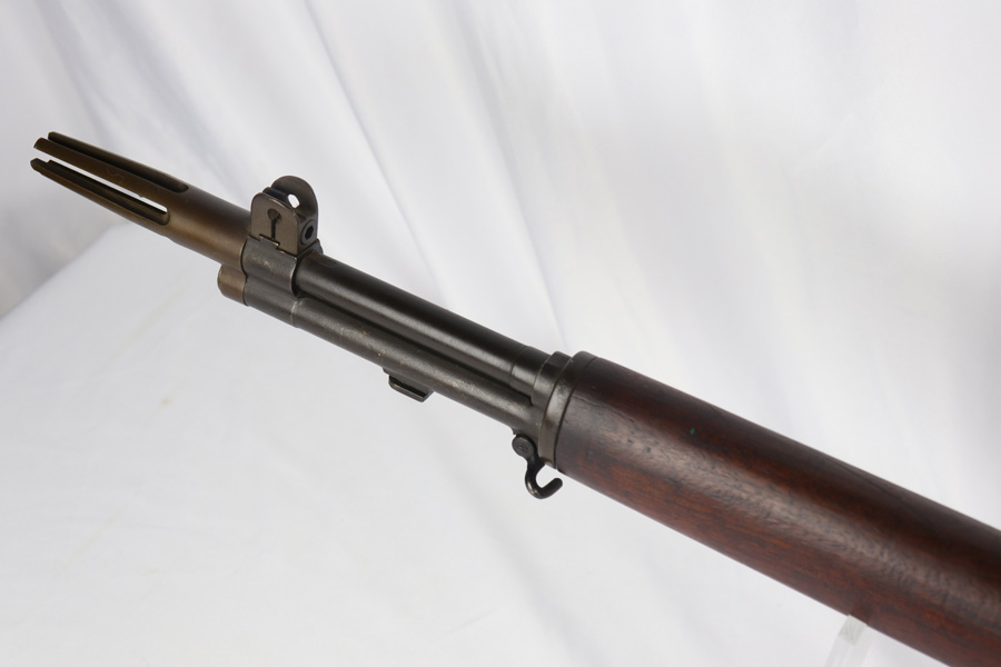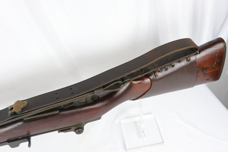 11/21/18 – The M1D Garand Sniper was designed so that troops in Korea could essentially turn the Garand into a sniper rifle with a field kit, rather than needing to drill mount the scope like the M1C. This particular gun was made in early 1945, then arsenal upgraded to the M1D in January of 1951(barrel date). The rifle is likely a put-together in the M1D styel and in excellent condition. The serial number is in the proper range but the gun was likely put together some time after the Korean War. It has clear Springfield cartouche and crossed cannons marks on the stock. The scope has clear optics and is marked “Telescope M84” with serial 6474. Nice, original sling and cheek pad, with the pad marked ‘MRT 8 51’, which is presumably the production date. Rifle has a period original five-prong flash hider. Bore is shiny with strong rifling but does have minor frost throughout. Stock is in great shape with signs of basic handling wear and one small chip along the top, but no cracks.