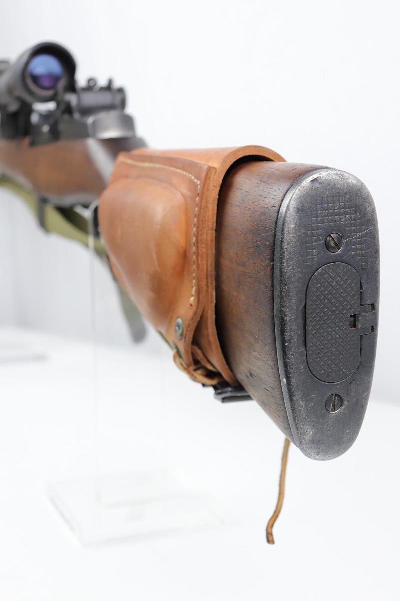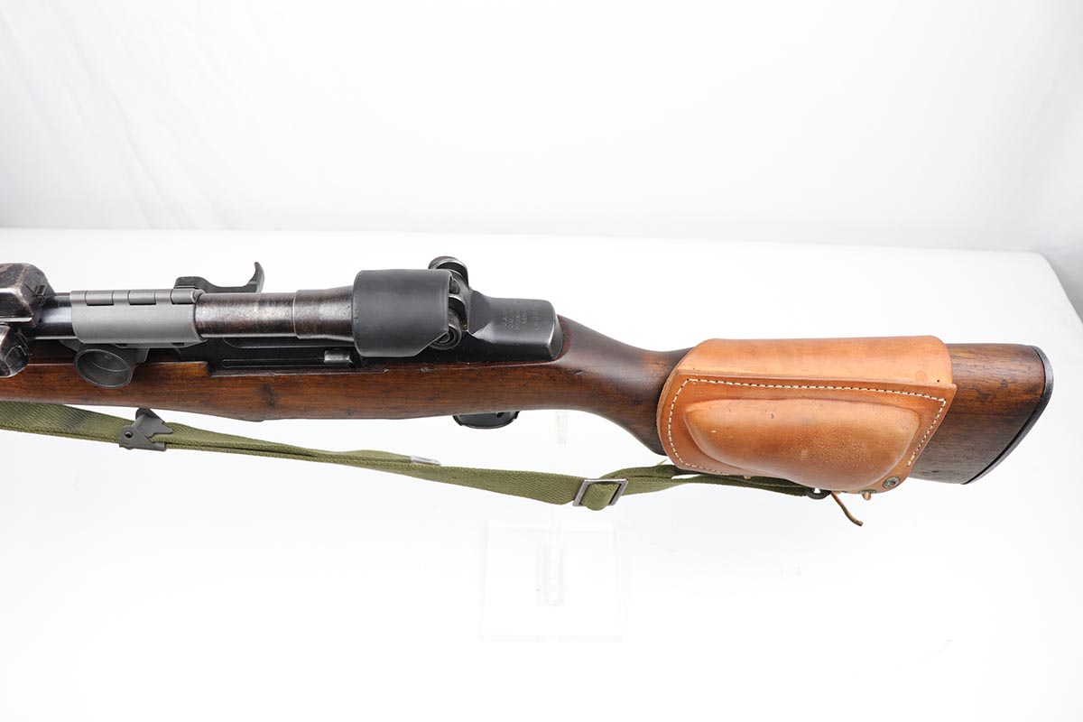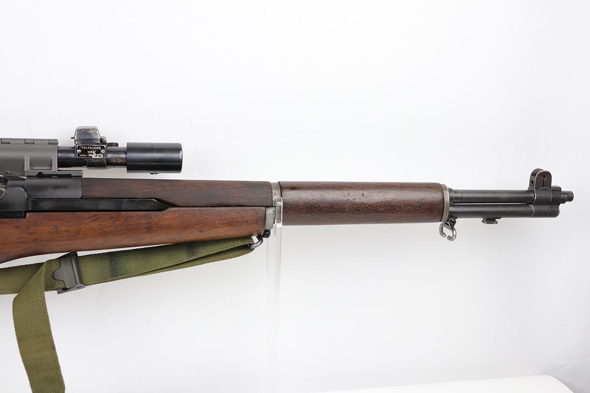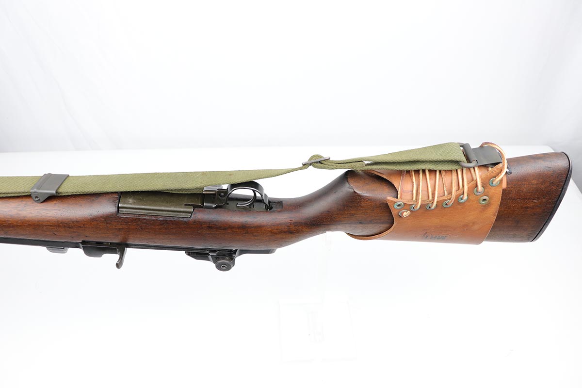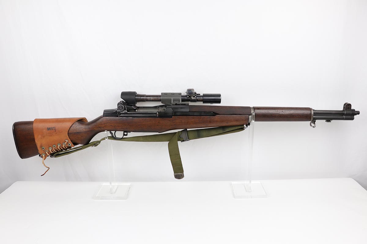 9/12/19 – The M1D Garand Sniper was designed so that troops in Korea could essentially turn the Garand into a sniper rifle with a field kit, rather than needing to drill mount the scope like the M1C. This particular gun was made in 1943, then arsenal upgraded to the M1D in April of 1952 (barrel date). The rifle is likely a put-together in the M1D style and in excellent condition. The stock is unmarked but in excellent shape with no major defects. The scope has clear optics and is marked “Telescope M84” with serial 23096. While the optics are clear, there is a little moisture inside the scope – it doesn’t obstruct view but buyer may want to try removing it. Nice, original sling and cheek pad, with the pad marked ‘MRT’. Bore is shiny with strong rifling but does have minor frost throughout. Gun comes with the CMP hard case.
