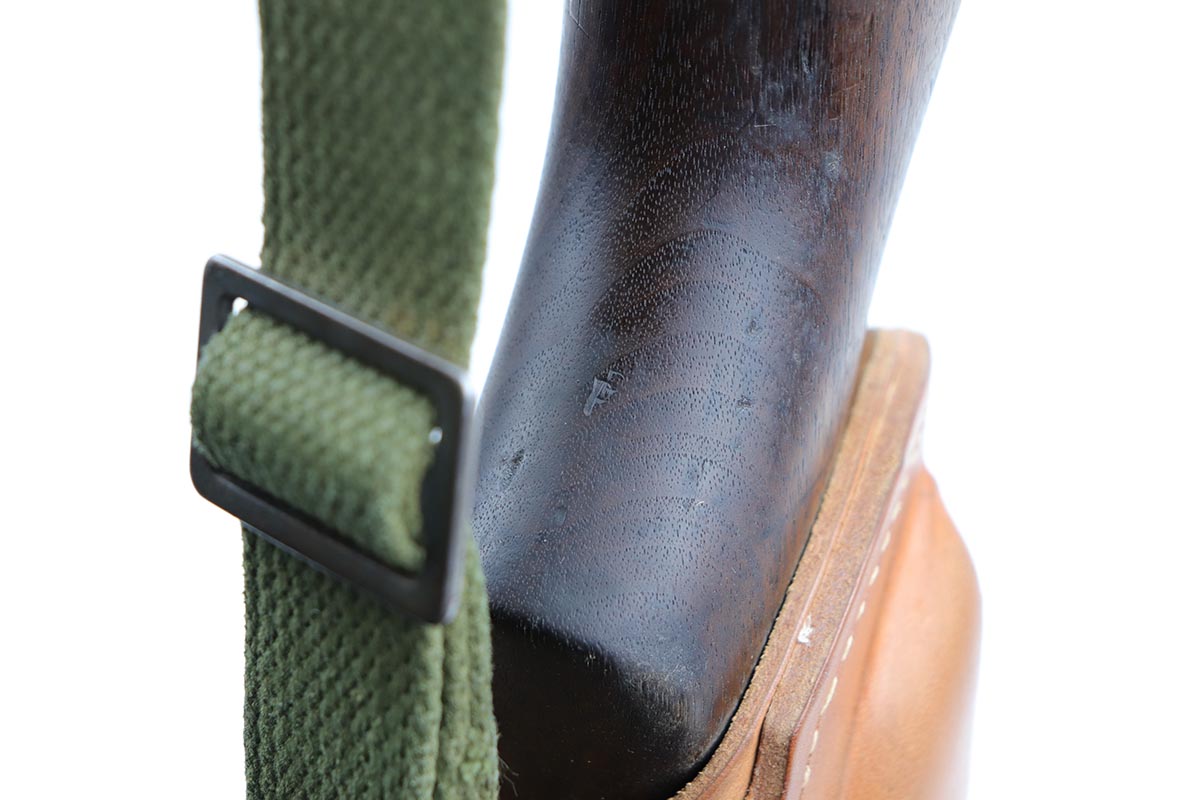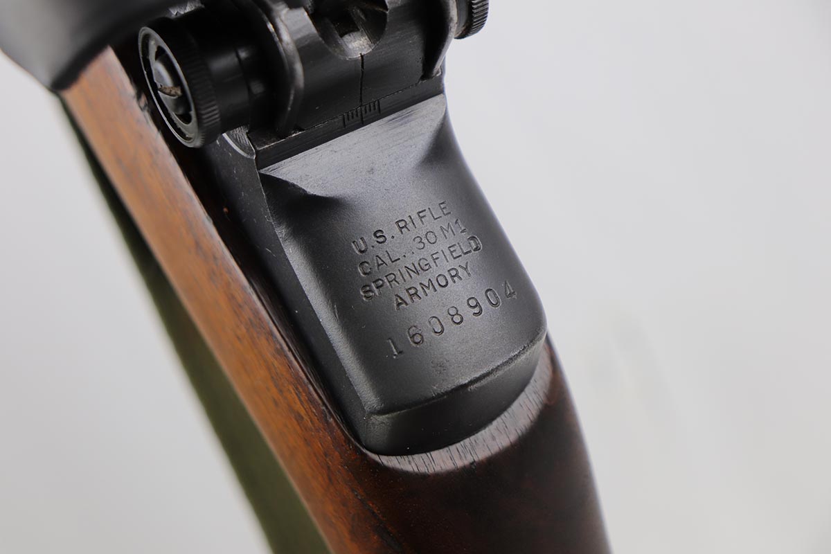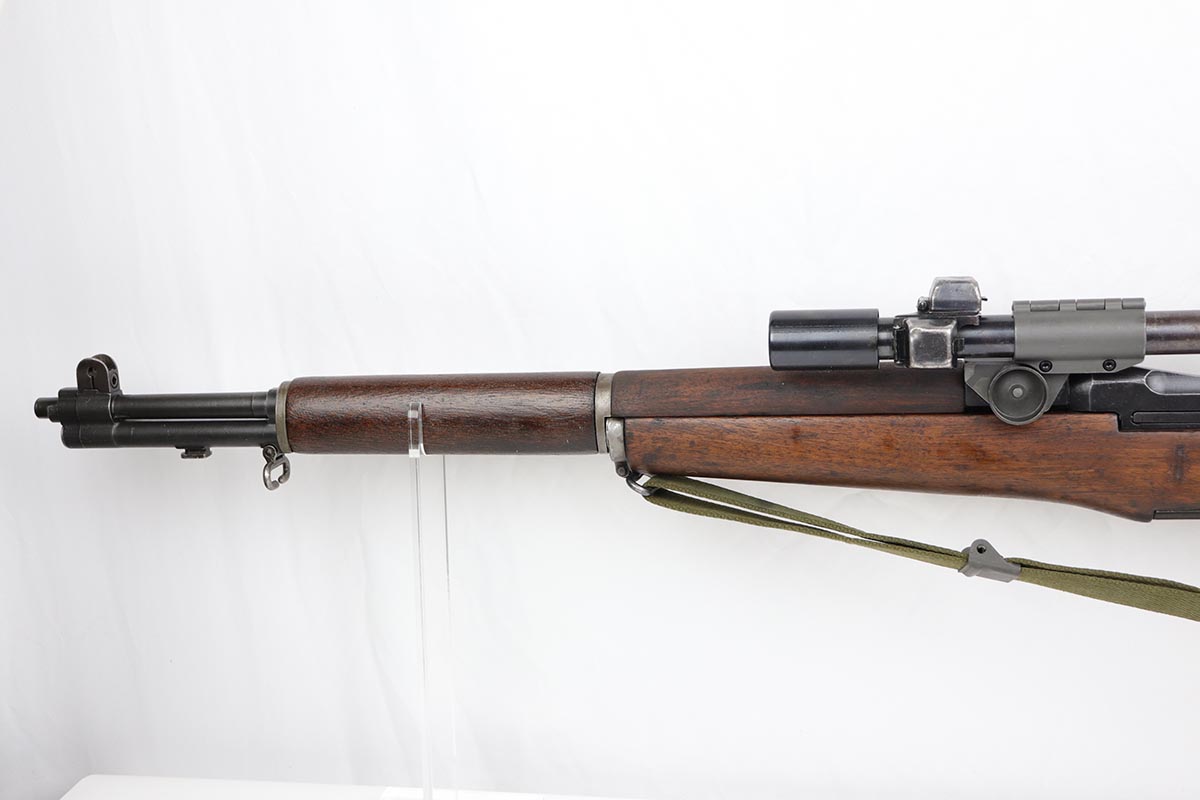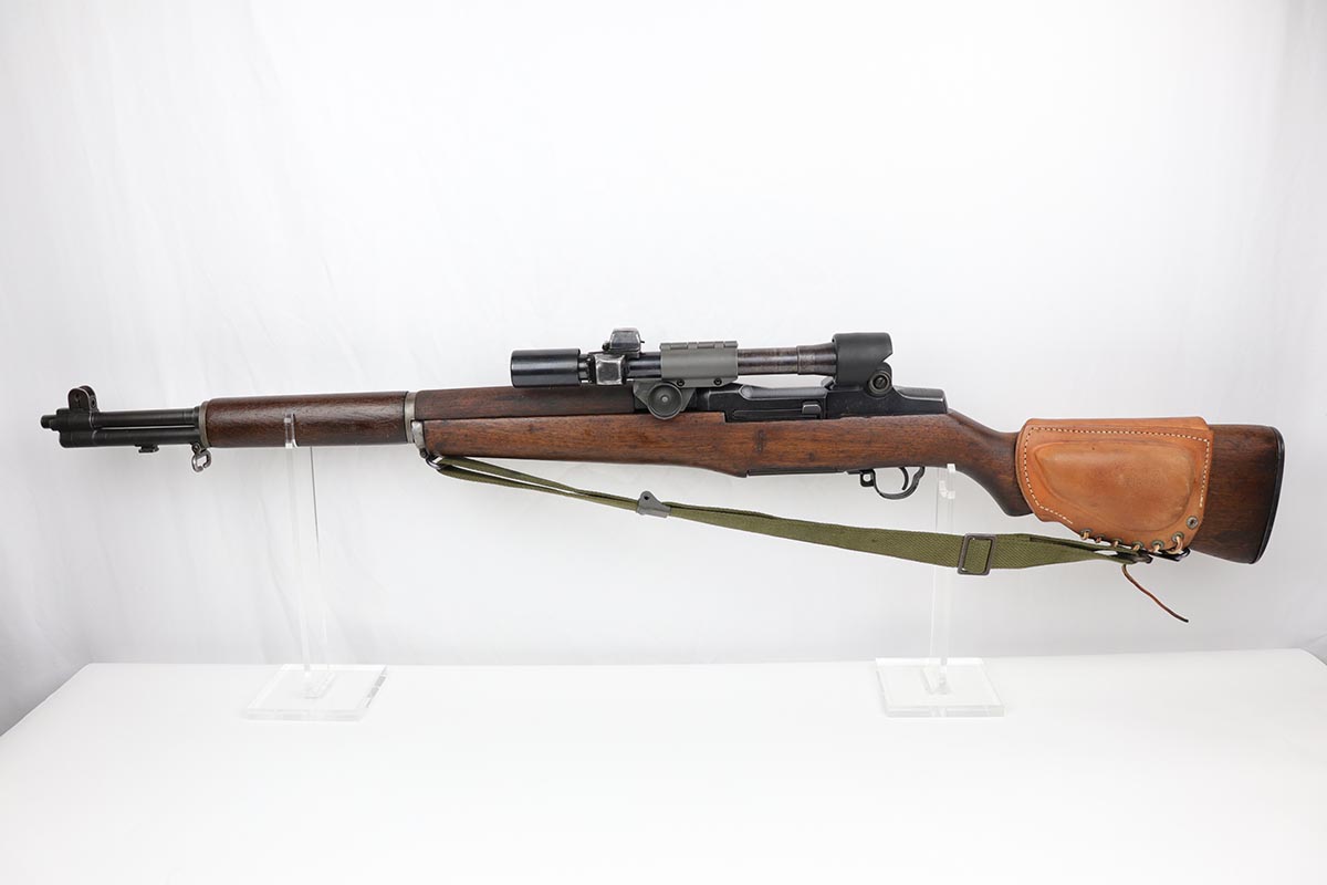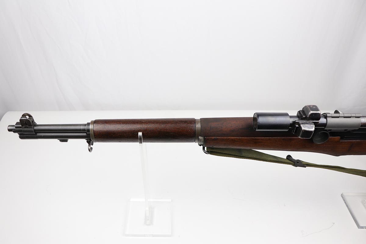 9/12/19 – The M1D Garand Sniper was designed so that troops in Korea could essentially turn the Garand into a sniper rifle with a field kit, rather than needing to drill mount the scope like the M1C. This particular gun was made in 1943, then arsenal upgraded to the M1D in April of 1952 (barrel date). The rifle is likely a put-together in the M1D style and in excellent condition. The stock is unmarked but in excellent shape with no major defects. The scope has clear optics and is marked “Telescope M84” with serial 23096. While the optics are clear, there is a little moisture inside the scope – it doesn’t obstruct view but buyer may want to try removing it. Nice, original sling and cheek pad, with the pad marked ‘MRT’. Bore is shiny with strong rifling but does have minor frost throughout. Gun comes with the CMP hard case.