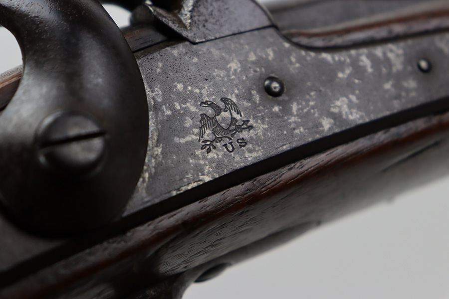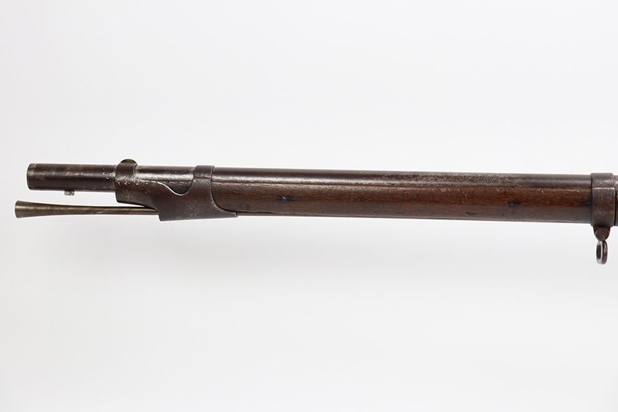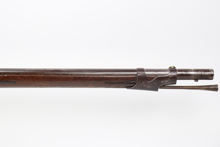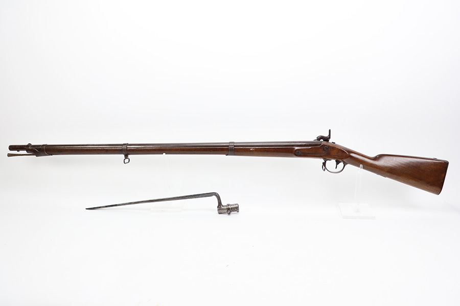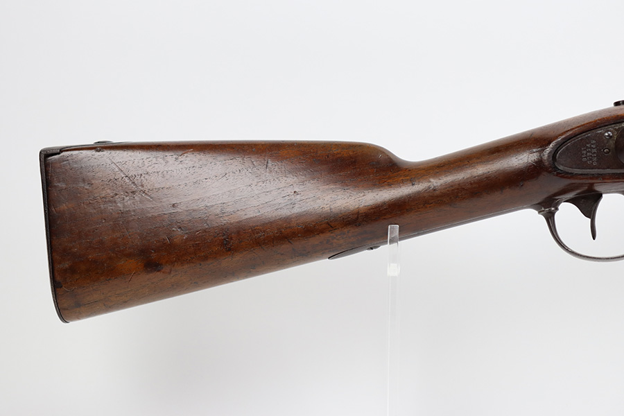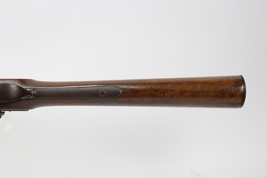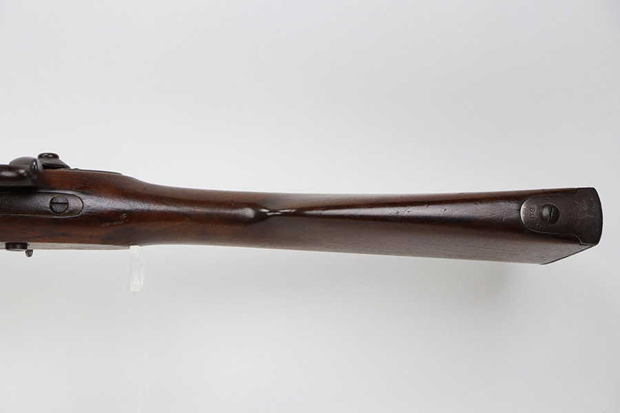 9/12/23 – This is a Springfield Model 1842 Musket, manufactured in 1848 and chambered in .69 caliber. The Model 1842 was the first US musket made at Springfield and Harper’s Ferry with completely interchangeable parts, and it was used in both the Mexican-American and Civil War. The metal has retained about 70% of its finish, with very fine pitting in a few areas, but nothing deep. While there is still a lot of finish remaining, the entire musket is covered in a layer of patina. The receiver is marked “Springfield 1848” with the US eagle. The stock looks great for its age, with no major damage. Some small dings here and there, but it is in very good condition otherwise. Bore is smooth by design, and this one does have some frost throughout. The musket comes with a socket bayonet and original ramrod.