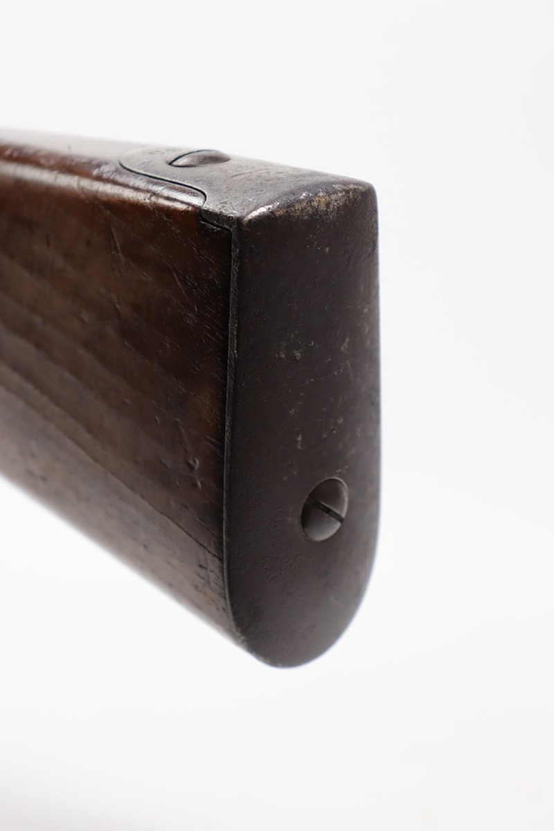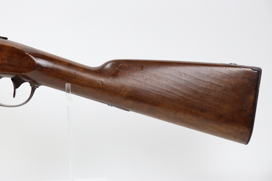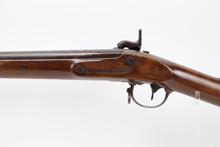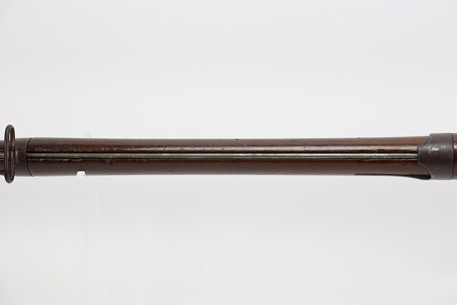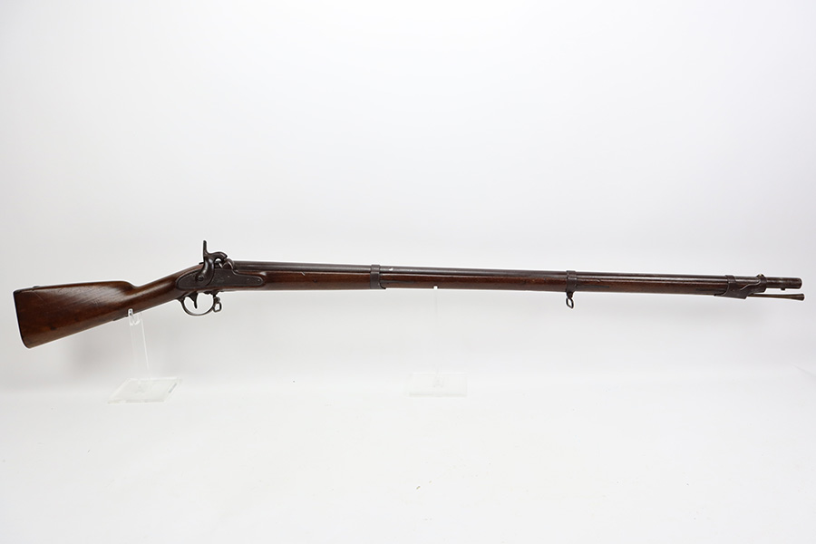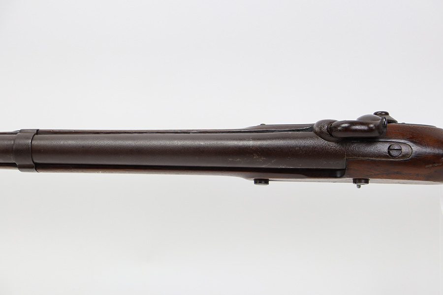 9/12/23 – This is a Springfield Model 1842 Musket, manufactured in 1848 and chambered in .69 caliber. The Model 1842 was the first US musket made at Springfield and Harper’s Ferry with completely interchangeable parts, and it was used in both the Mexican-American and Civil War. The metal has retained about 70% of its finish, with very fine pitting in a few areas, but nothing deep. While there is still a lot of finish remaining, the entire musket is covered in a layer of patina. The receiver is marked “Springfield 1848” with the US eagle. The stock looks great for its age, with no major damage. Some small dings here and there, but it is in very good condition otherwise. Bore is smooth by design, and this one does have some frost throughout. The musket comes with a socket bayonet and original ramrod.