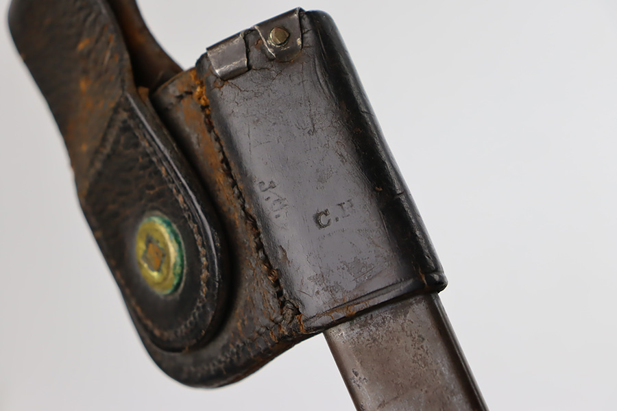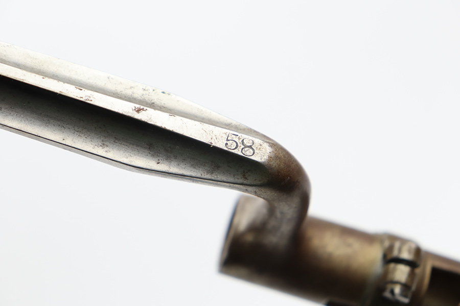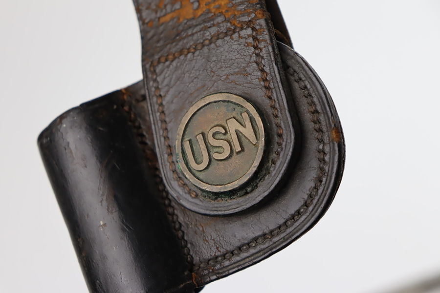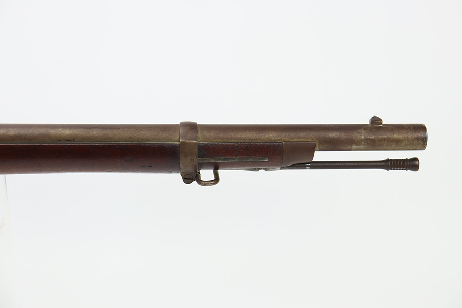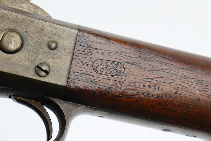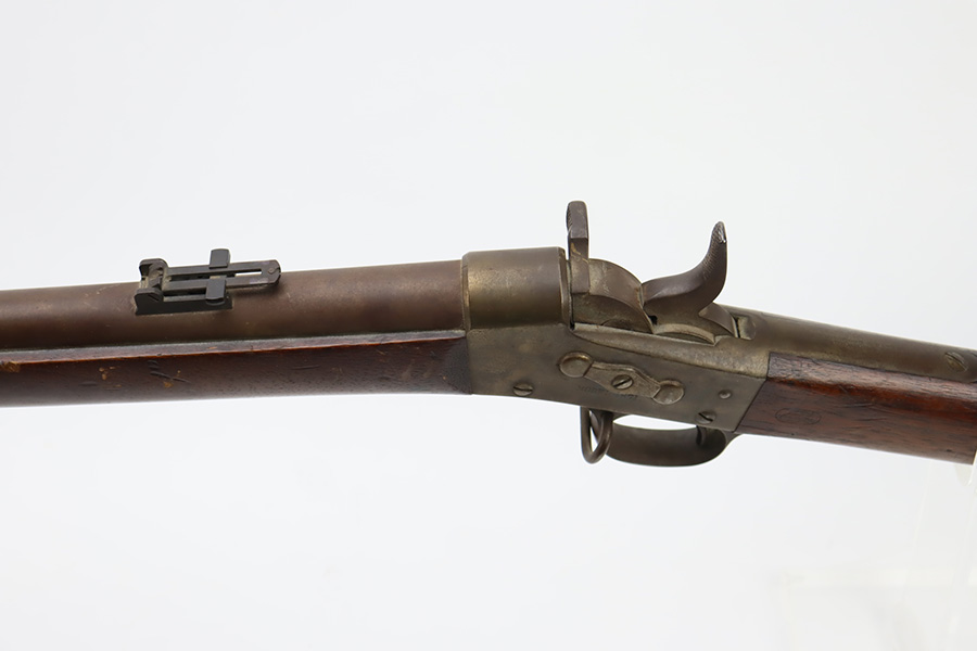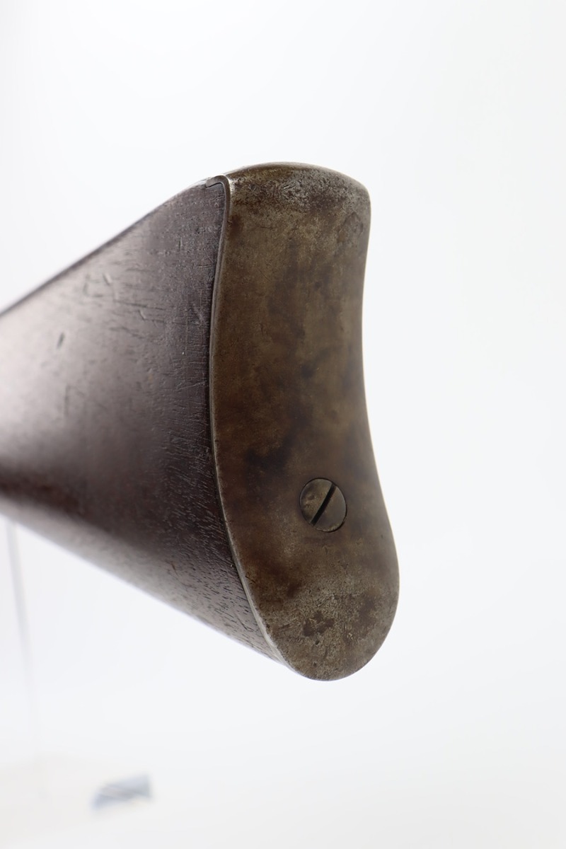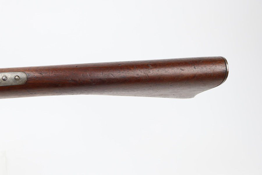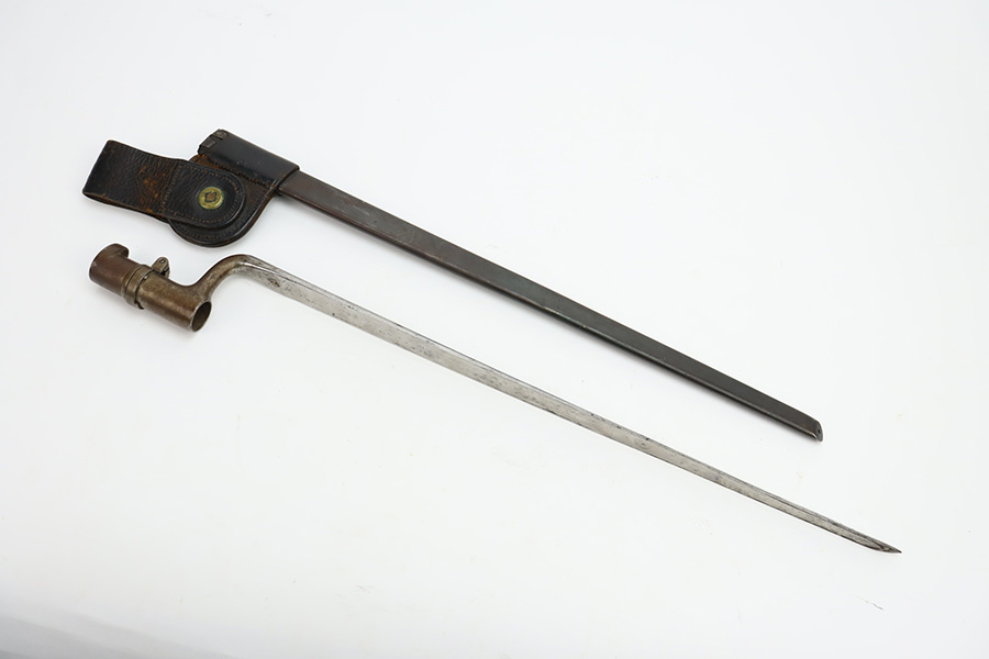 11/28/23 – This is a nice example of a scarce Springfield Model 1871 Rolling Block Rifle manufactured in 1872. Approximately 10,000 U.S. Army Rolling Block rifles were manufactured c. 1871-1872 by Springfield Armory under a royalty agreement with E. Remington & Sons. “MODEL 1871” marked on the left side of the receiver and an eagle and shield over “U.S./SPRINGFIELD/1872” marked on the right side. Crisp military cartouche on the left side of the stock. Comes with a cleaning rod, as well as a bayonet with a USN marked scabbard. Overall, the gun is in nice condition. Notable patina throughout, with some wear around the muzzle due to the bayonet attachment. Areas of light spotty oxidation throughout. Excellent wood stock with only minor dings and scratches here and there. The bore is very nice with strong rifling. Buttplate is also ‘U.S’ marked.