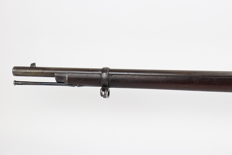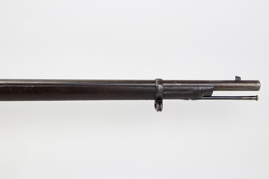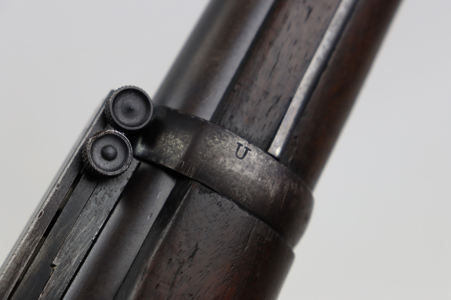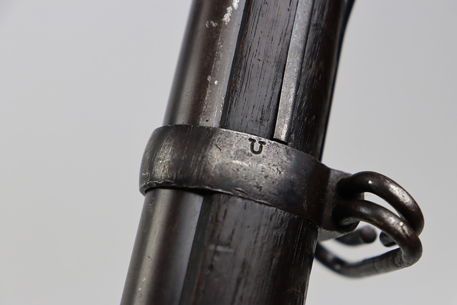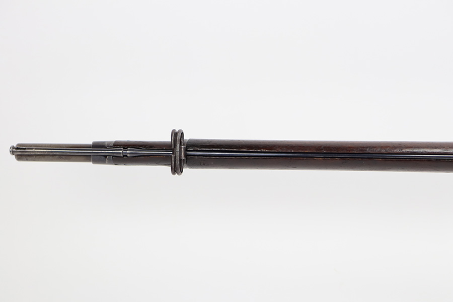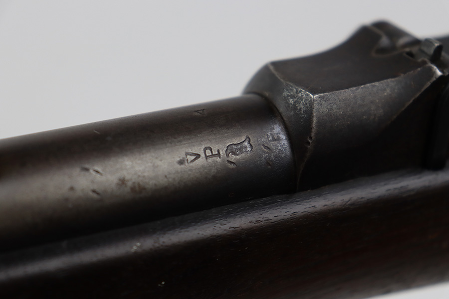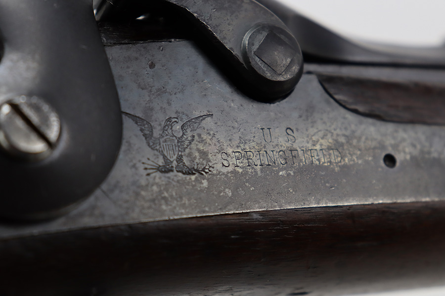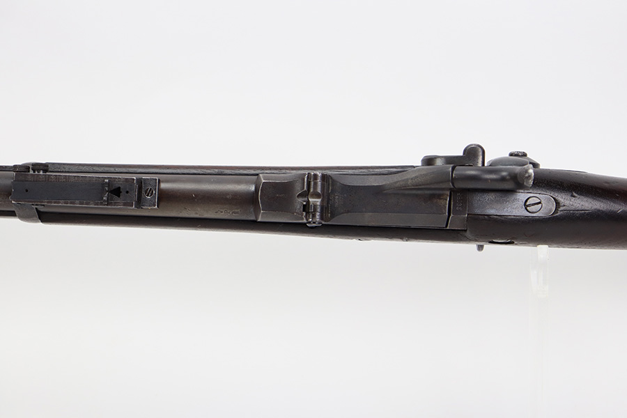 7/24/23 – This is a nice example of a Springfield Model 1873 Trapdoor rifle, chambered in .45-70. The serial number is 320856, which dates the receiver to about 1886. There are US military inspection proofs on the breech and the barrel and a military cartouche on the stock that appears to be dated 1883. Overall, the gun is in fair condition. There isn’t much actual finish loss, but there is heavy brown patina and spotty oxidation throughout. Very nice wood stock for its age with only minor bruising and scratching here and there. Near-mint bore.