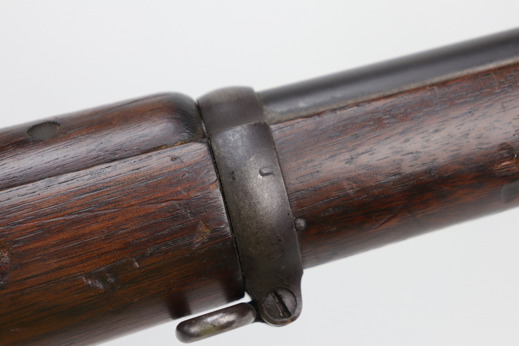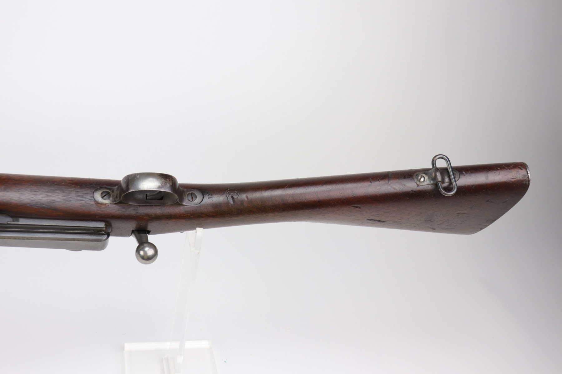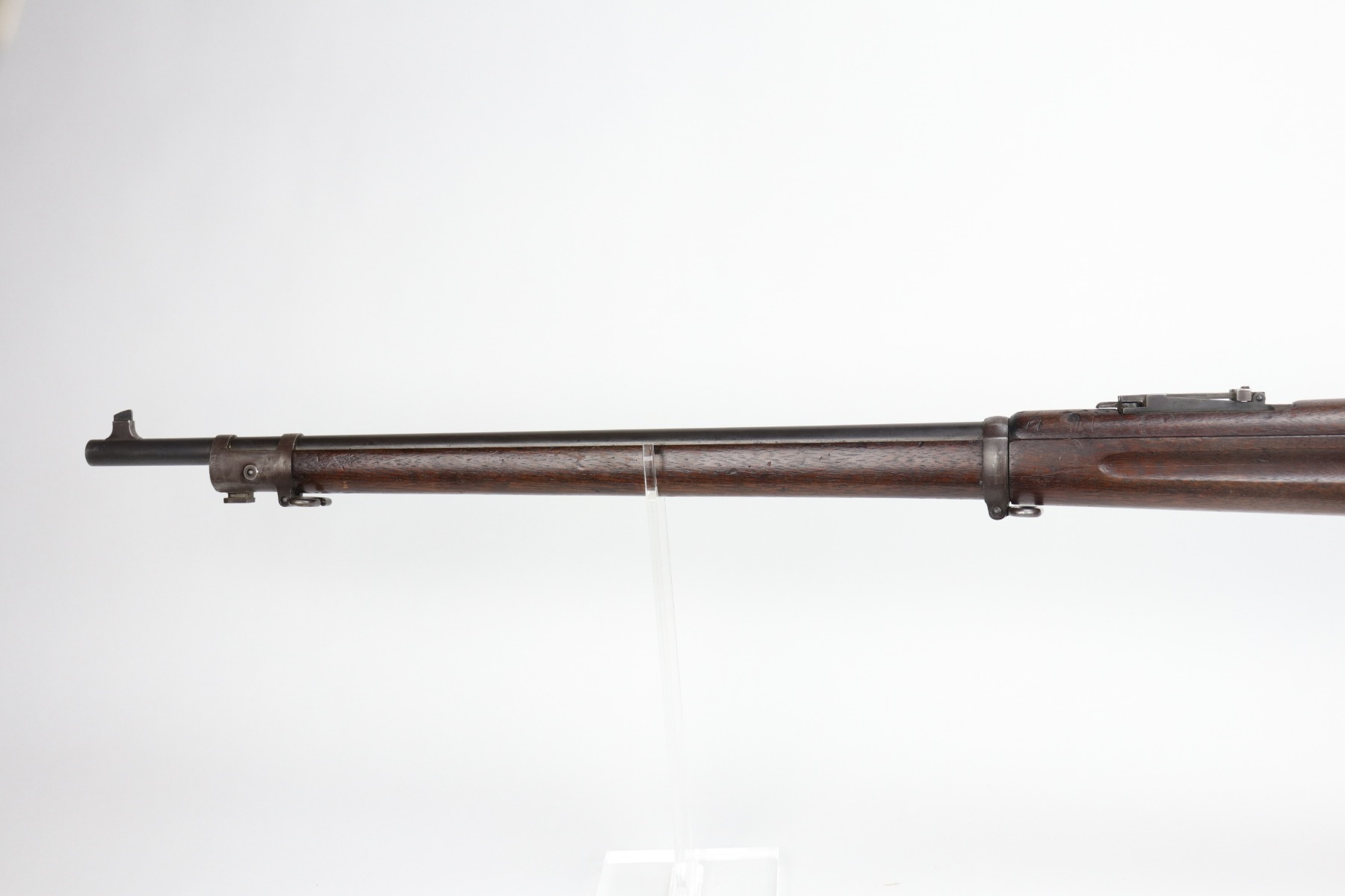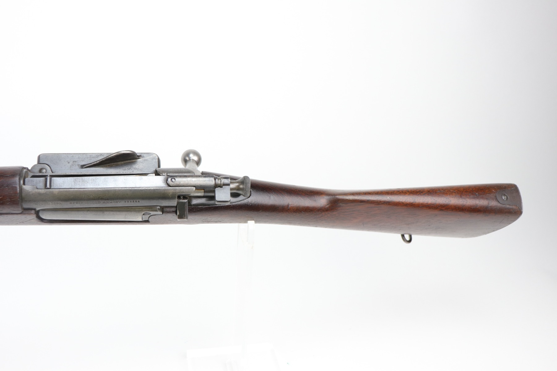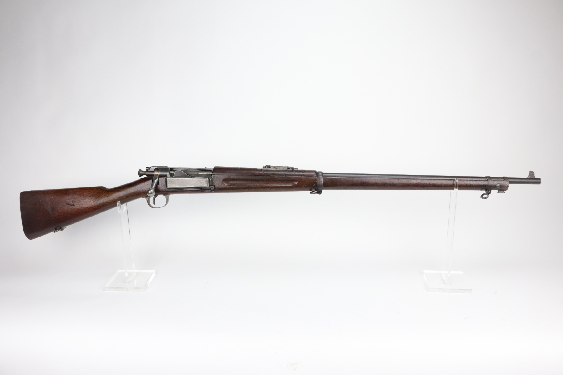 10/8/20 – This is a nice example of a Springfield “Krag” Model 1898, manufactured in 1901. Overall, it is in nice condition. The original bluing is mostly worn throughout, except for on the barrel. There is spotty oxidation and discoloration throughout. The stock is excellent condition, just a few bruises and minor dings. The stock is dated 1901 and has inspectors initials on the left side. There is a “P” proof on the wrist. The gun is fully functional and the action is smooth. The bore has decent rifling, but there are areas of minor pitting throughout.