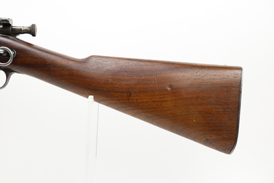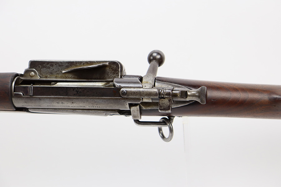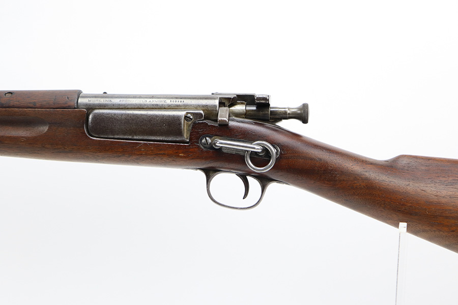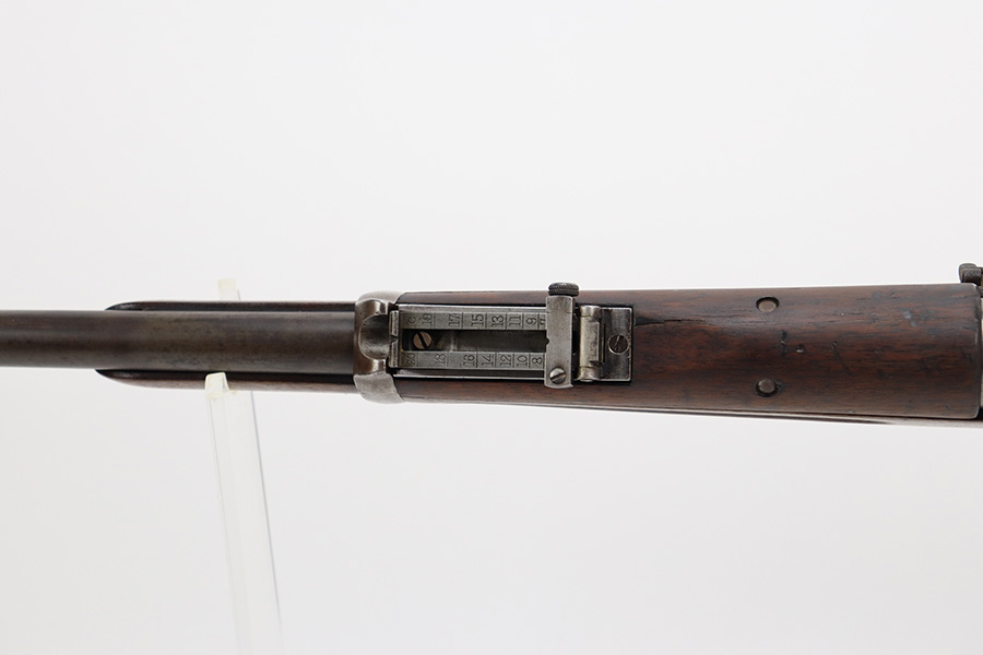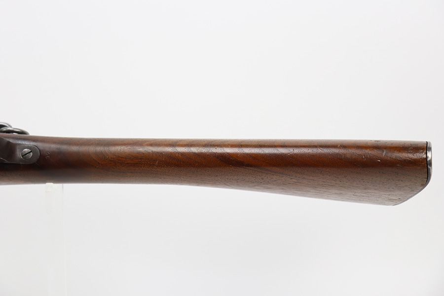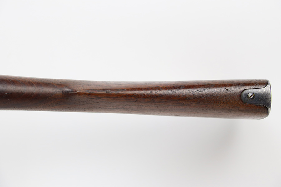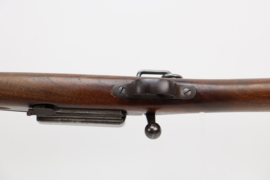 6/26/23 – This is a nice example of an original Springfield Model 1898 Krag Carbine issued to the US military in 1899. This particular gun is the accepted Krag carbine serial range, 118,894 to 134,256. It is “US” Property marked but has no visible military cartouche on the stock – likely lightly sanded. Original saddle ring is intact. The metal parts have lost nearly all of their original finish with spotty oxidation and “attic patina” throughout. Some very minor pitting on the trigger guard. Excellent wood furniture with only minor scratches and bruises here and there. The bore has pretty good rifling with very minor pin-pricking throughout.