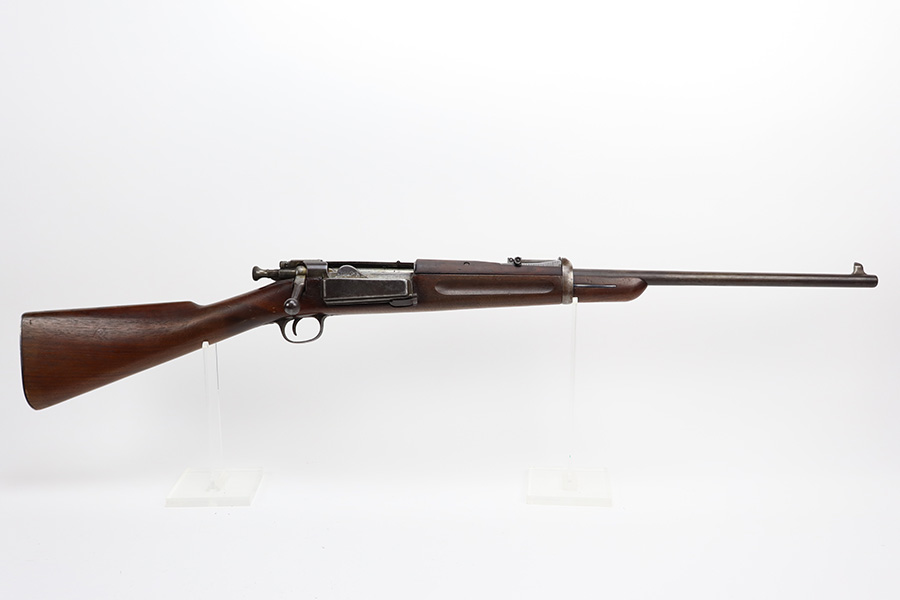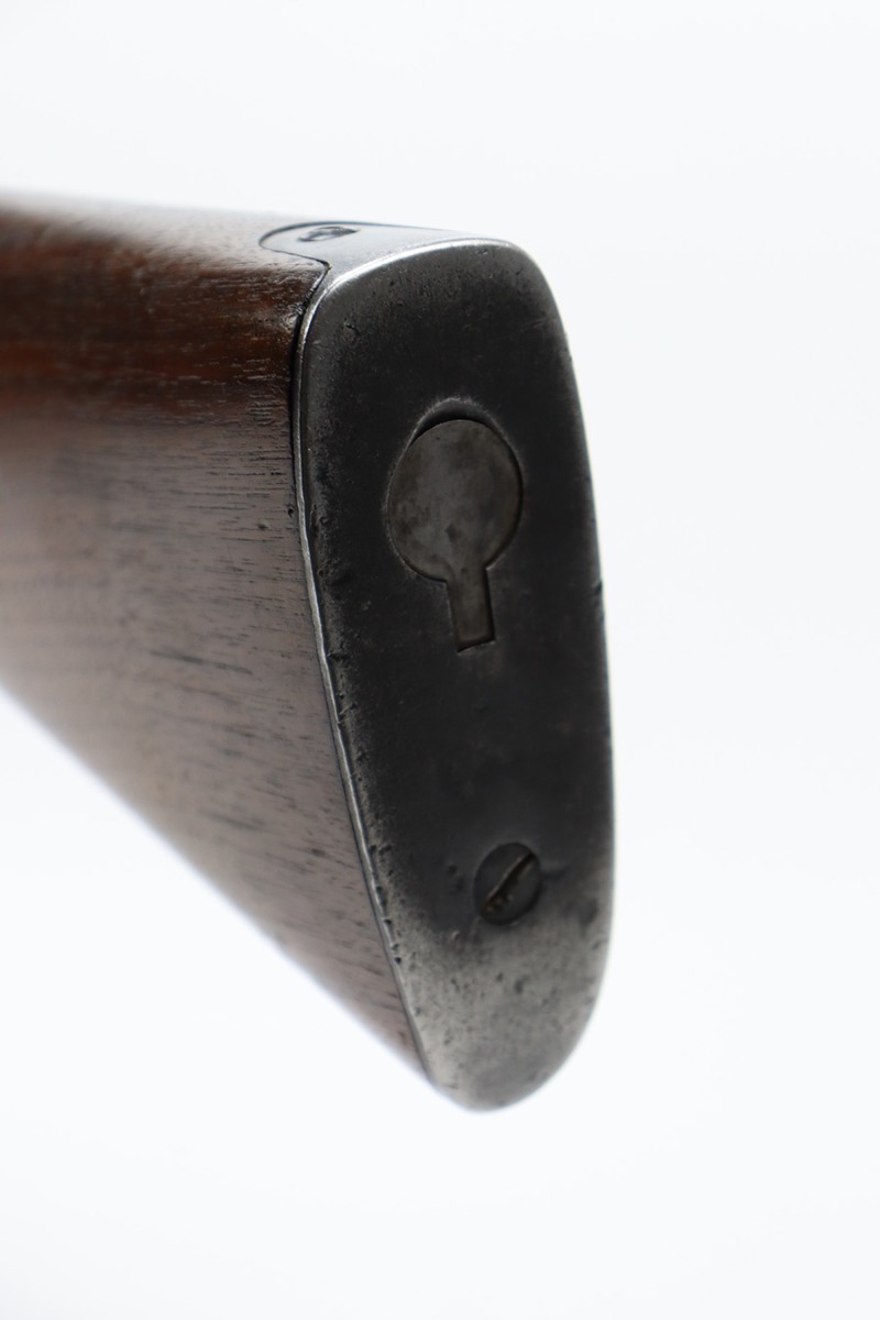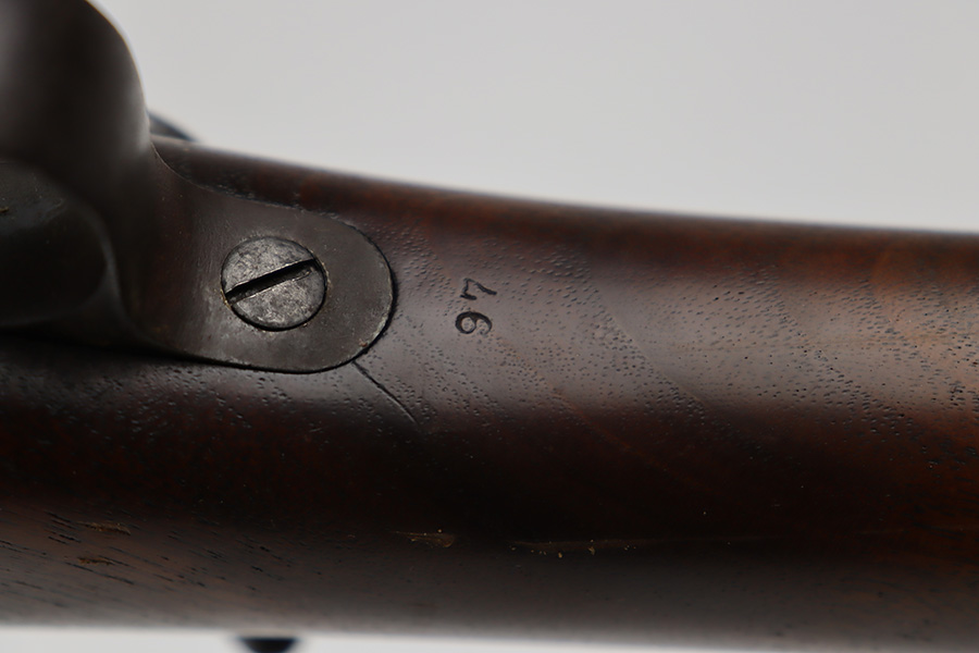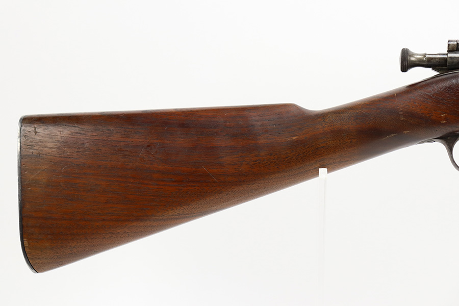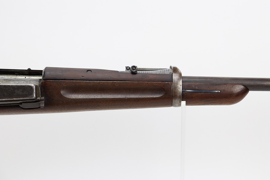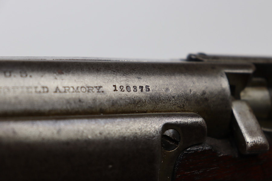 6/26/23 – This is a nice example of an original Springfield Model 1898 Krag Carbine issued to the US military in 1899. This particular gun is the accepted Krag carbine serial range, 118,894 to 134,256. It is “US” Property marked but has no visible military cartouche on the stock – likely lightly sanded. Original saddle ring is intact. The metal parts have lost nearly all of their original finish with spotty oxidation and “attic patina” throughout. Some very minor pitting on the trigger guard. Excellent wood furniture with only minor scratches and bruises here and there. The bore has pretty good rifling with very minor pin-pricking throughout.