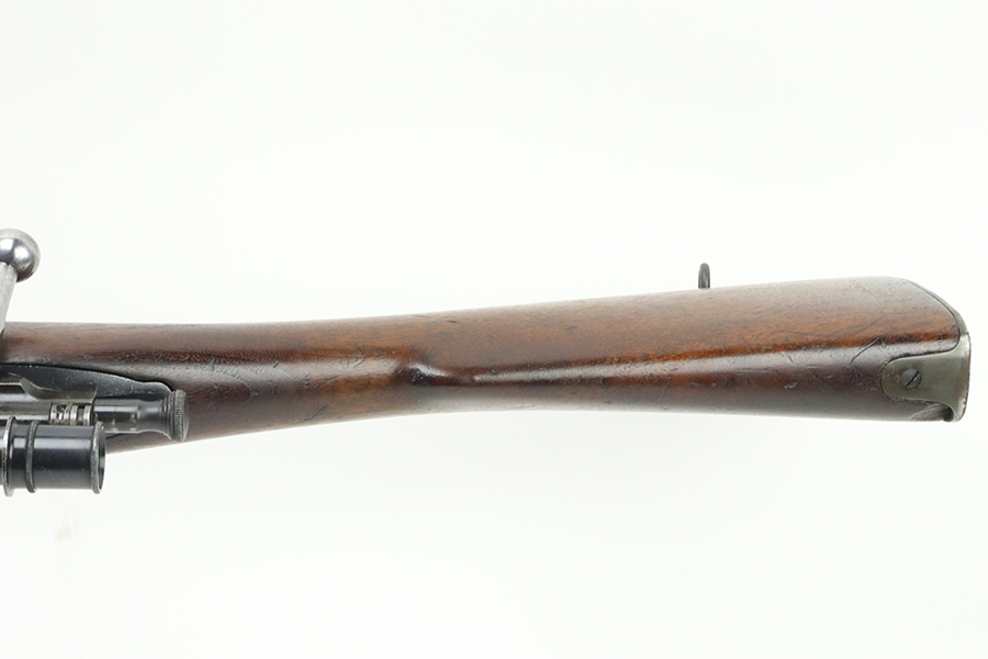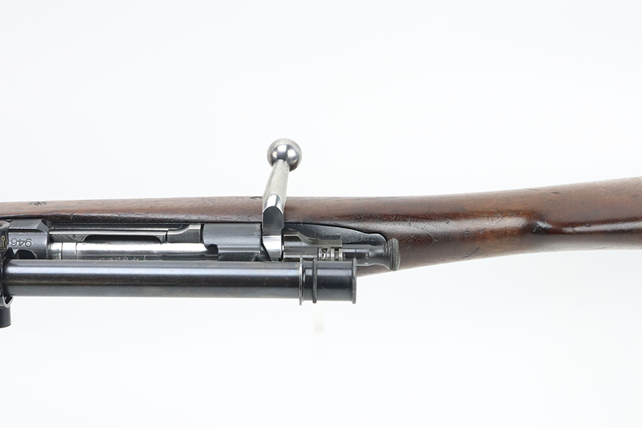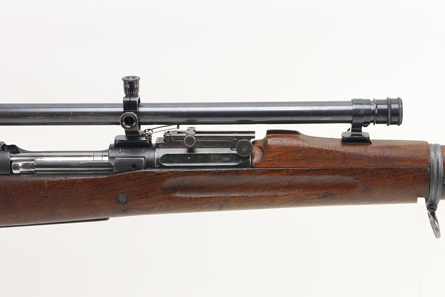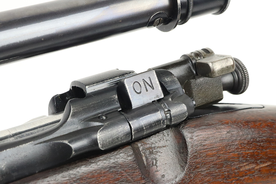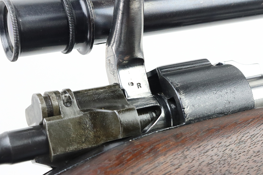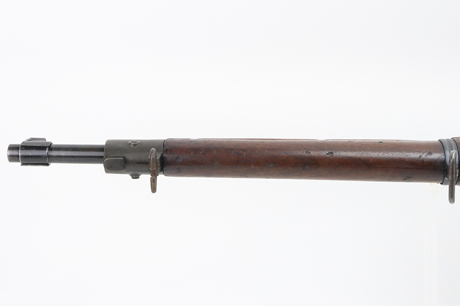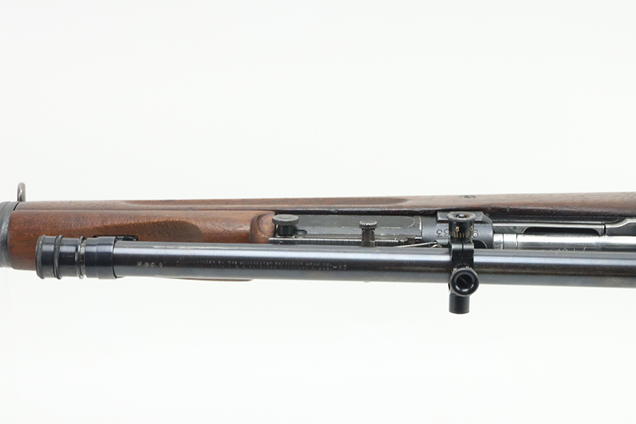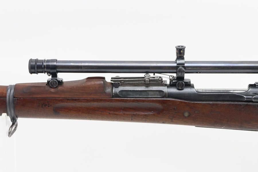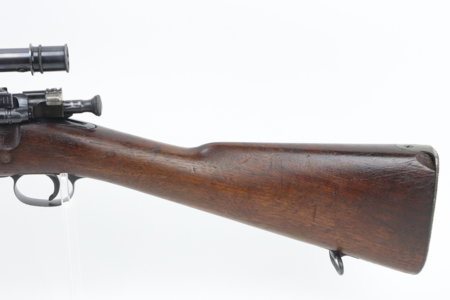 4/4/24 – This is a very cool Springfield 1903 from 1918 in USMC sniper configuration. It comes with DCM paperwork from the 1950s stating it was sold to USAF Technical Sergeant William Robert Lane (later Master Sergeant). The barrel was made by Springfield in September of 1927. The stock is a Springfield stock and is likely original to the rifle. The rebuild proof behind the trigger guard is visible, with the original script proof mark barely visible just behind it. No other stampings are visible on the stock except the small letter “s” on the front tip. The rifle was reparkerized and rebarreled during a rebuild. The handguard is a Remington WWII handguard that looks like it was cut by the DCM post war. The bolt is a Remington 03-A3 bolt that has been polished and electro penciled with the rifle’s serial number. The bolt closes on a Forester Go gauge and does not close on a Forester No-Go or Field gauge. The rifling is excellent, but there is a lot of finish wear at the muzzle with a fake star gauge stamp at 6 O’clock on the muzzle. The muzzle erosion measures at 0. The rifle has the national match buttplate and serrated trigger. There is a small chip in the stock by the top of the butt plate. The Winchester scope mount bases have a post-WWI black oxide finish. They’re 7.2 inches apart from center to center, meaning the adjustments on the Type 2 mount are 0.5 MOA. The Type 2 mounts both have the November 5, 1907 patent date and have the white enamel markings that the military mounts had. There are no visible British or Canadian proof markings on the mounts. The scope still has the locking ring. The optics of the scope are perfect and the focus adjustment works well. The markings “75 feet” and “200 yards or greater” on the scope also have the white enamel, rather than the commercial-only red. The scope is stamped “H.G.C.1” which has unknown meaning. The scope has many characteristics of a military scope and functions well. The bore is shiny with strong rifling but some minor patches of freckling. Scope has nice, clear optics.