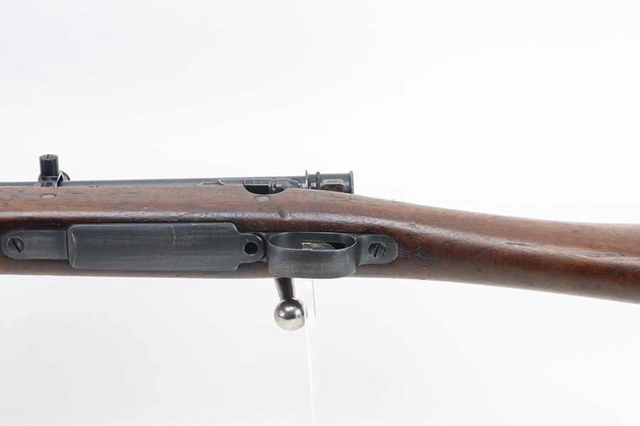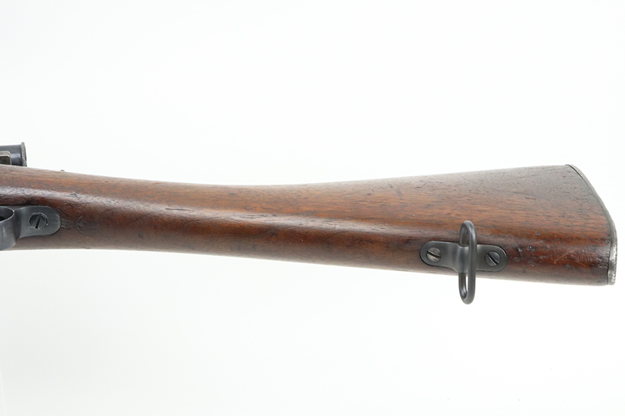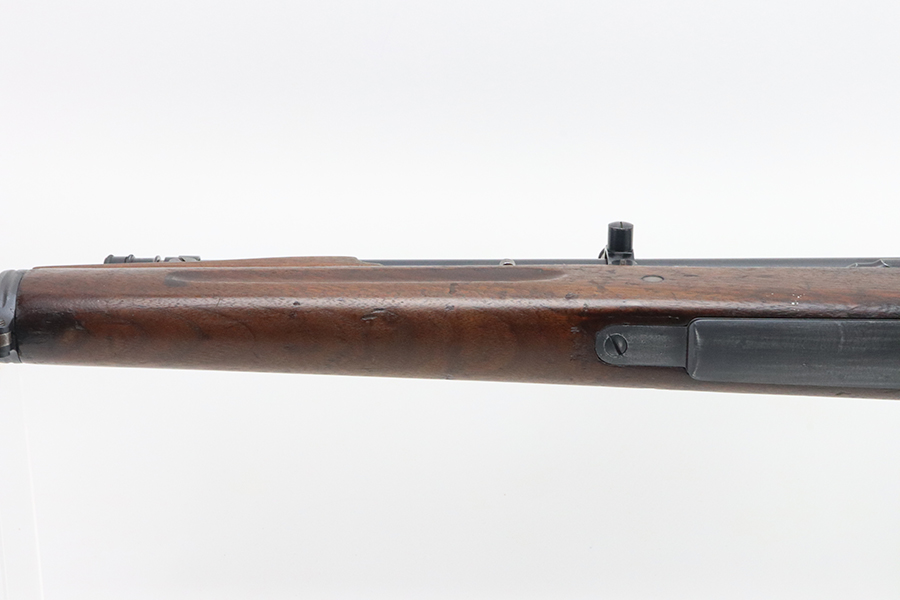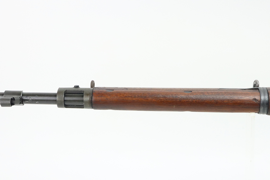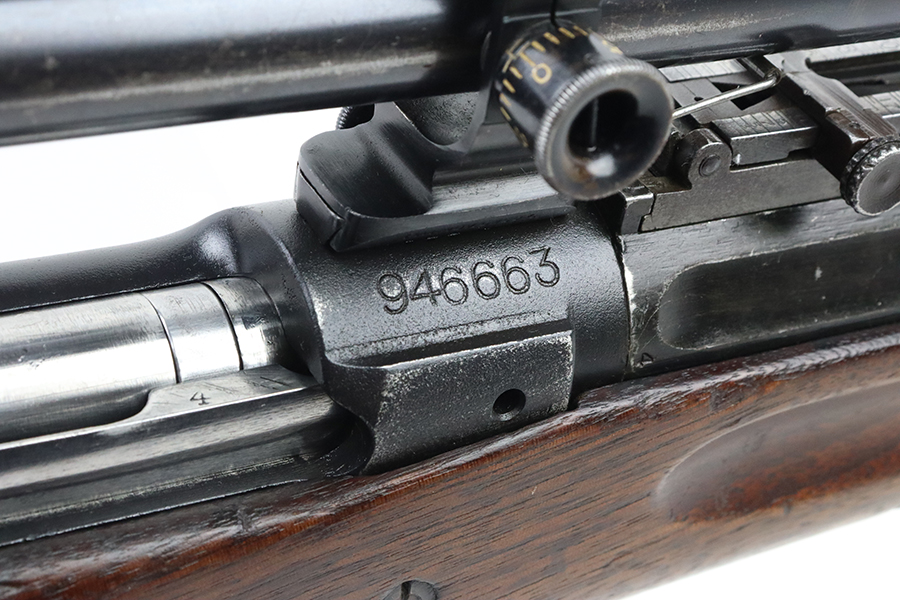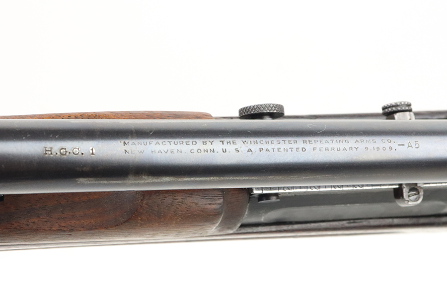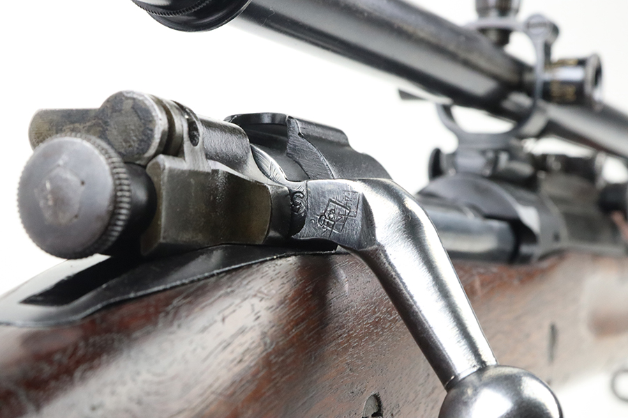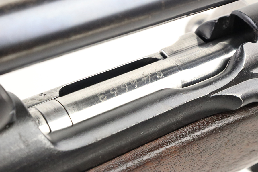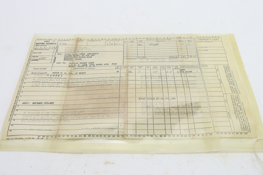 4/4/24 – This is a very cool Springfield 1903 from 1918 in USMC sniper configuration. It comes with DCM paperwork from the 1950s stating it was sold to USAF Technical Sergeant William Robert Lane (later Master Sergeant). The barrel was made by Springfield in September of 1927. The stock is a Springfield stock and is likely original to the rifle. The rebuild proof behind the trigger guard is visible, with the original script proof mark barely visible just behind it. No other stampings are visible on the stock except the small letter “s” on the front tip. The rifle was reparkerized and rebarreled during a rebuild. The handguard is a Remington WWII handguard that looks like it was cut by the DCM post war. The bolt is a Remington 03-A3 bolt that has been polished and electro penciled with the rifle’s serial number. The bolt closes on a Forester Go gauge and does not close on a Forester No-Go or Field gauge. The rifling is excellent, but there is a lot of finish wear at the muzzle with a fake star gauge stamp at 6 O’clock on the muzzle. The muzzle erosion measures at 0. The rifle has the national match buttplate and serrated trigger. There is a small chip in the stock by the top of the butt plate. The Winchester scope mount bases have a post-WWI black oxide finish. They’re 7.2 inches apart from center to center, meaning the adjustments on the Type 2 mount are 0.5 MOA. The Type 2 mounts both have the November 5, 1907 patent date and have the white enamel markings that the military mounts had. There are no visible British or Canadian proof markings on the mounts. The scope still has the locking ring. The optics of the scope are perfect and the focus adjustment works well. The markings “75 feet” and “200 yards or greater” on the scope also have the white enamel, rather than the commercial-only red. The scope is stamped “H.G.C.1” which has unknown meaning. The scope has many characteristics of a military scope and functions well. The bore is shiny with strong rifling but some minor patches of freckling. Scope has nice, clear optics.