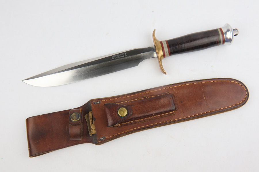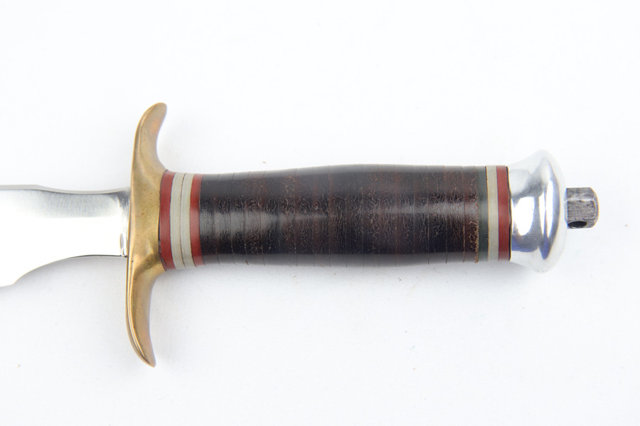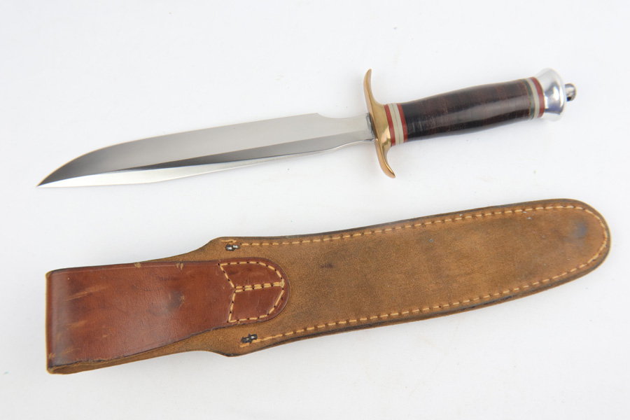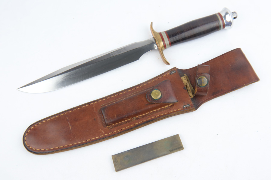 3/18/19 – This is an extremely scarce Randall Model 1 knife made in Springfield, MA. These were made for use during WW2 by Springfield, subcontracted by Randall to meet the military demand. These are very desirable as a result, especially in this condition. The blade is in minty condition as shown in photos. Excellent handle as well. The leather scabbard is similarly excellent and all original. Guaranteed original and authentic.
