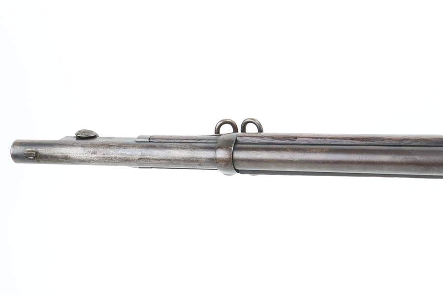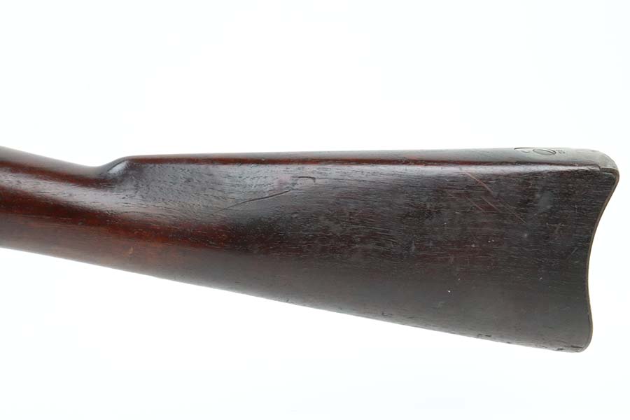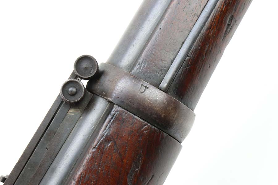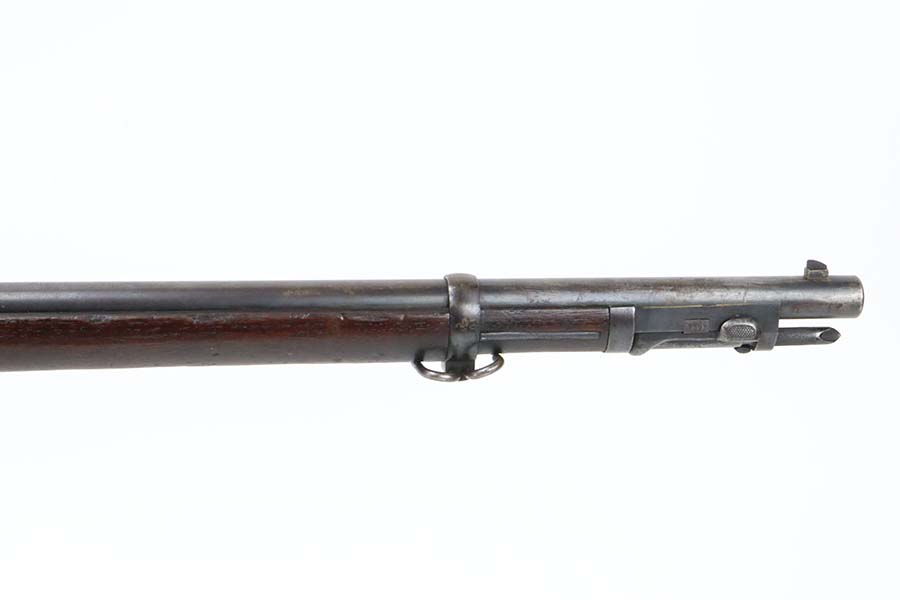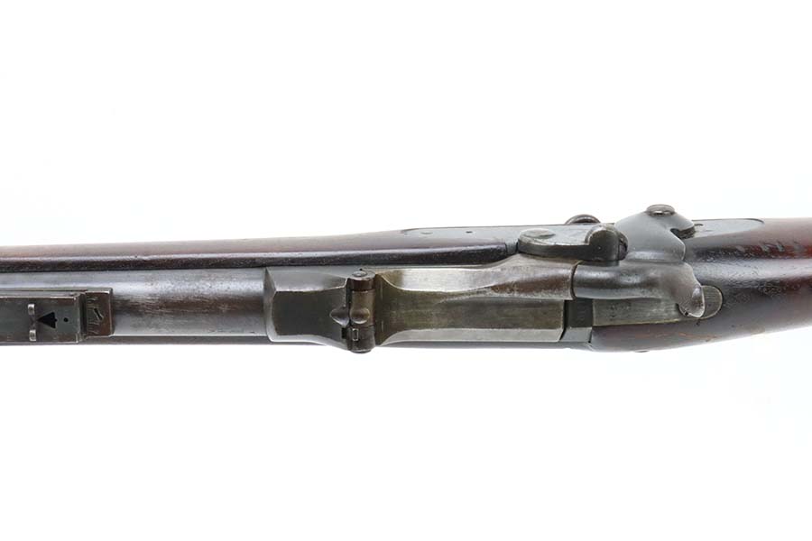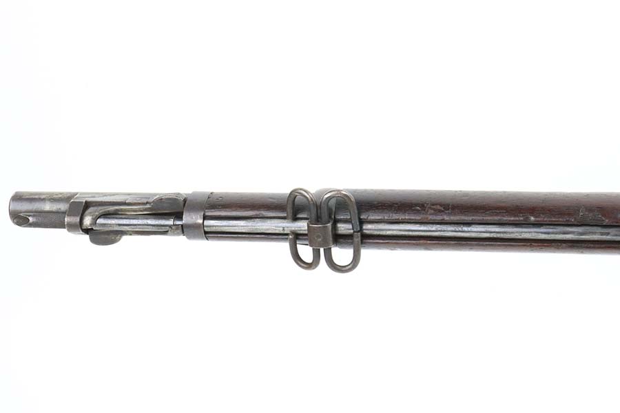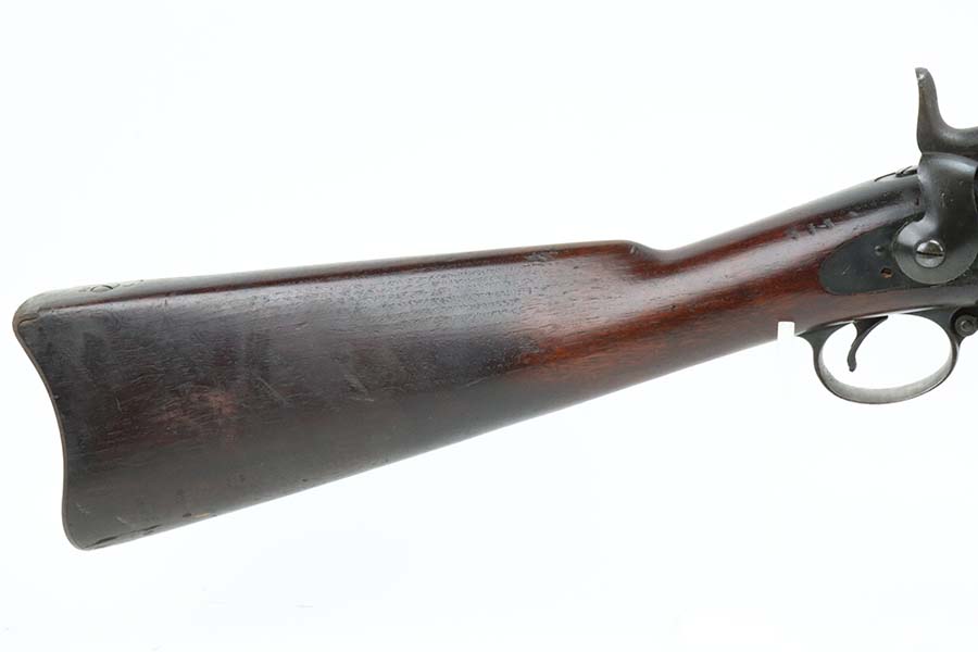 03/04/2024 – For sale is a great condition Springfield trapdoor Model 1884 made in 1892. The rifle has the rare rod bayonet where the cleaning rod can be extended and locked as a bayonet. The finish on the rifle is clean and free of rusting or active pitting. The bluing on the metal has faded away and been replaced with patina. The wood stock is clean and free of any major breaks. The toe of the stock has some small cracks. The bore is mirror bright and excellent for its age.