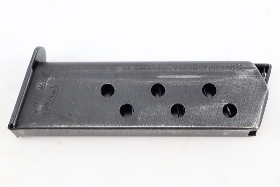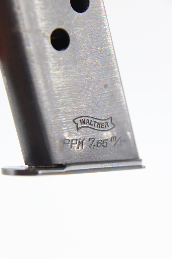 1/18/24 – This is a magazine for an SS-contract Walther PPK from 1940. It is numbered “281518k” and “1” under the serial number. Overall in excellent condition with great bluing. Strong, functional spring.