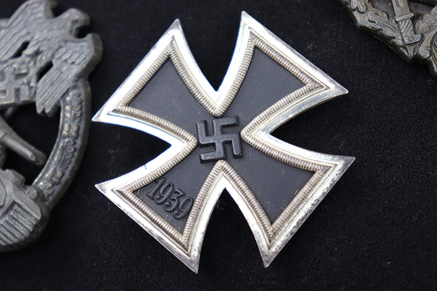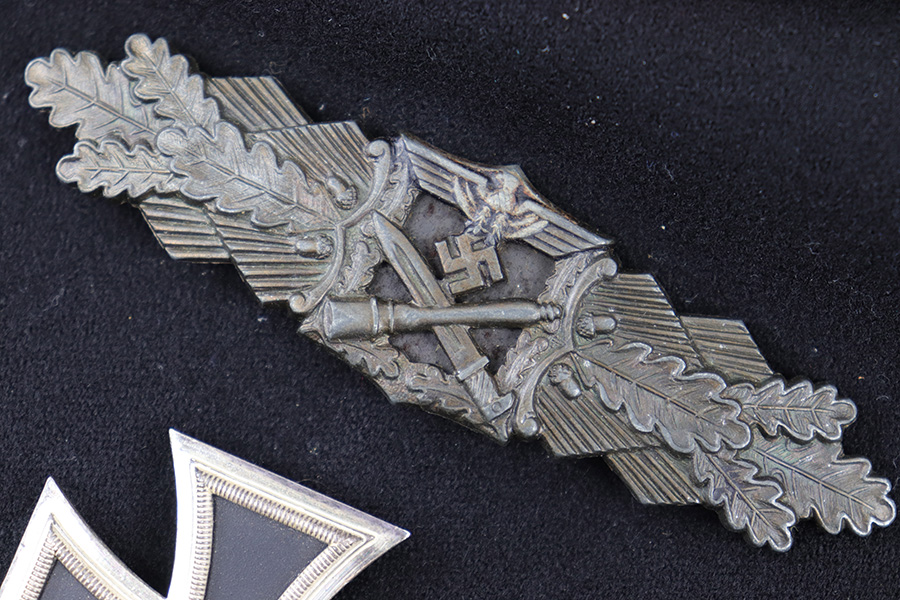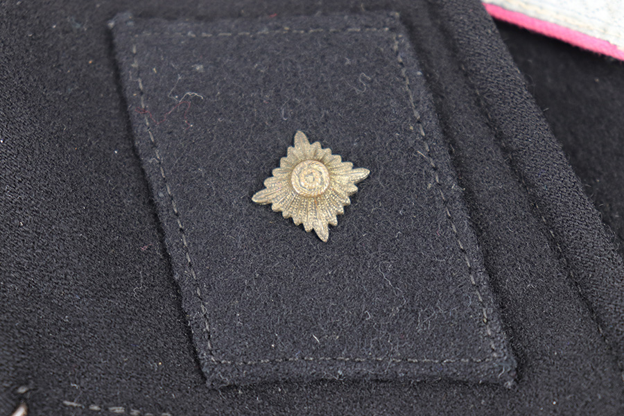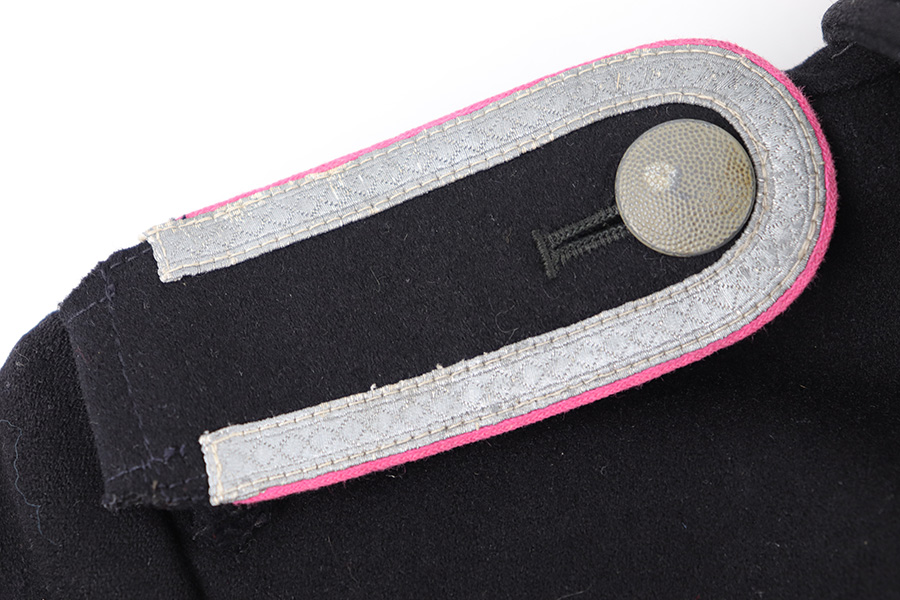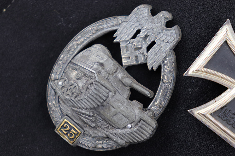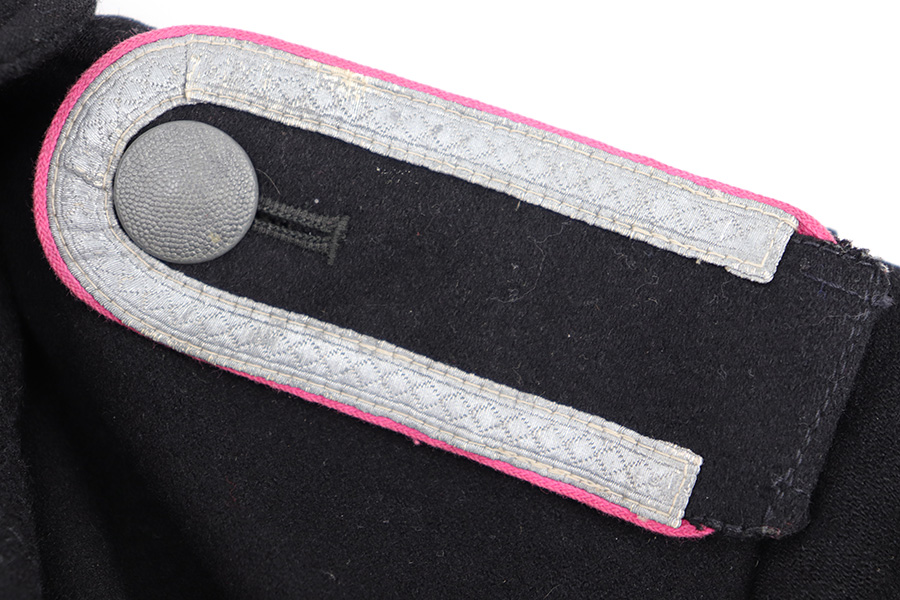 5/24/23 – This is an original Waffen SS Panzer Officer’s “Wrapper” Tunic, complete with attached medals and RZM pattern Wiking Division Cuff Title. The tunic is in near-excellent overall condition with no major issues in the cloth and all original stitching throughout. The back of the tunic, near the central spine of stitching, has a few small scuffs that have been repaired with stitching (shown in photos). There’s also one small hole near the cuff sleeve, but this is small and very minor. The cuff title appears machine-sewn and is in excellent condition. The epaulet / collar tabs and shoulder boards are also machine sewn and excellent. The left sleeve eagle patch is zig-zag machine sewn. The attached medals are a close combat badge, a black wound badge, 25 engagement bronze panzer badge, and a merit cross. All of the attached awards are original and in great condition. No interior wear or damage on the tunic, and all buttons intact. The 5th SS Panzer Division “Wiking” was one of the elite Panzer divisions of the thirty-eight Waffen-SS divisions of Nazi Germany during World War II. It was among the first divisions of the Waffen-SS to be formed, and its members were recruited from foreign volunteers, predominantly from Scandinavia, the Netherlands, and Belgium, under the command of German officers.