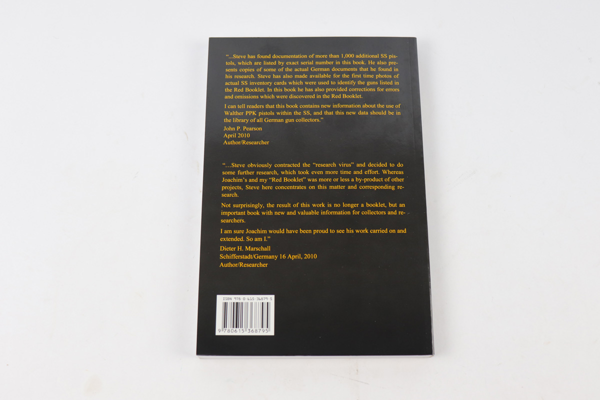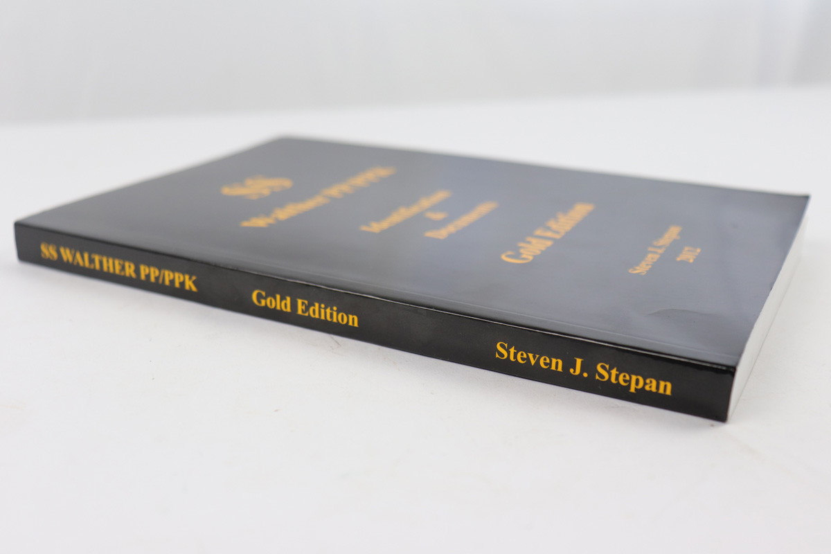 4/23/21 – This is a copy of Stepan’s book on SS Walther PP/PPK pistols: Identification & Documents, Gold Edition (revised edition). The book is signed by the author on the interior page. 228 pages total – paperback copy has minimal damage to the outer cover, but all interior pages are excellent. The book shown in photos is not the book you will receive, but is in very similar condition.