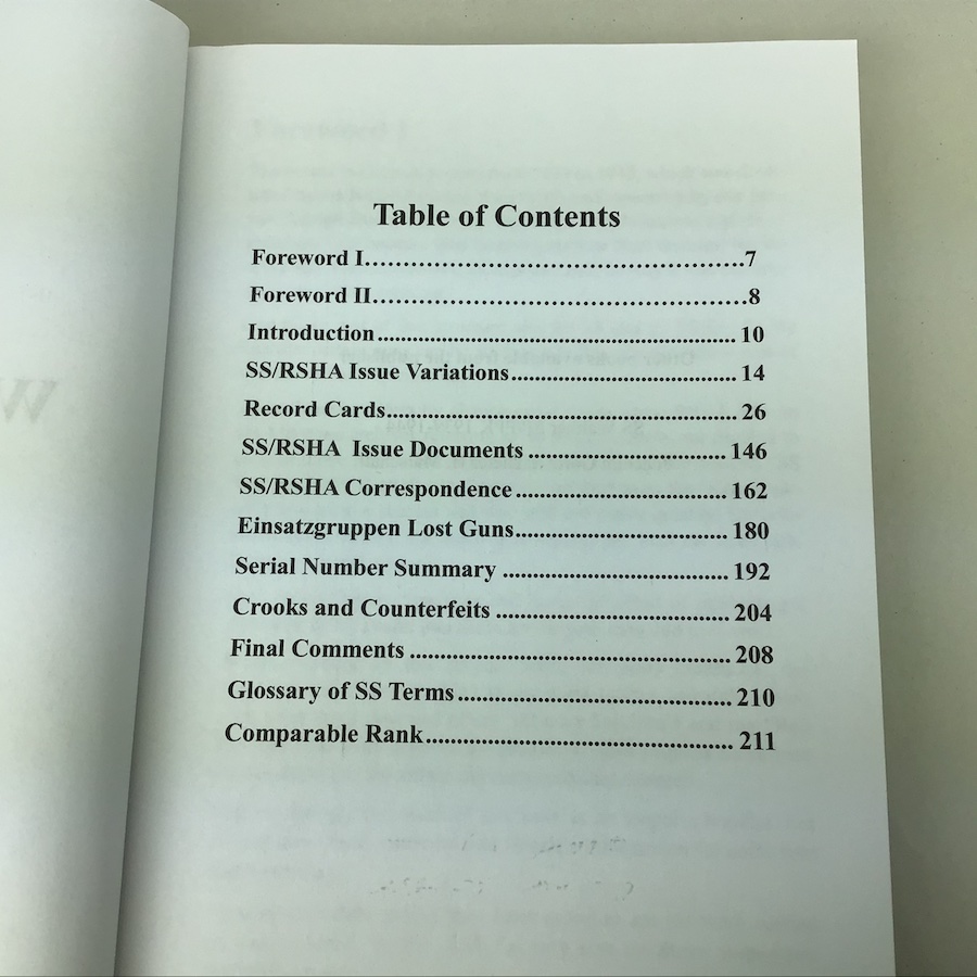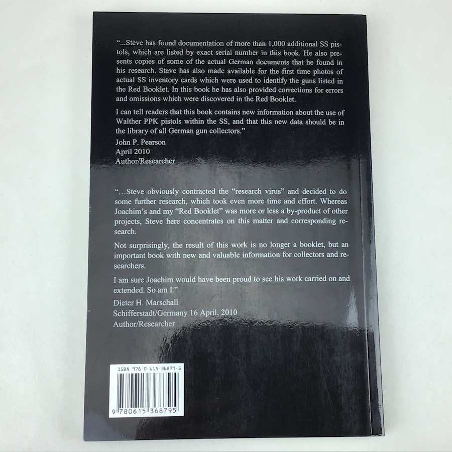 1/8/20 – SS Walther PP/PPK Identification & Documents by Steven J. Stepan is in excellent condition. This book is numbered 194 out of 500 printed and accompanied by a signature from the author. There is minor shelf wear on the shiny exterior. There are 211 pages all in pristine condition with several pages dedicated to note taking.