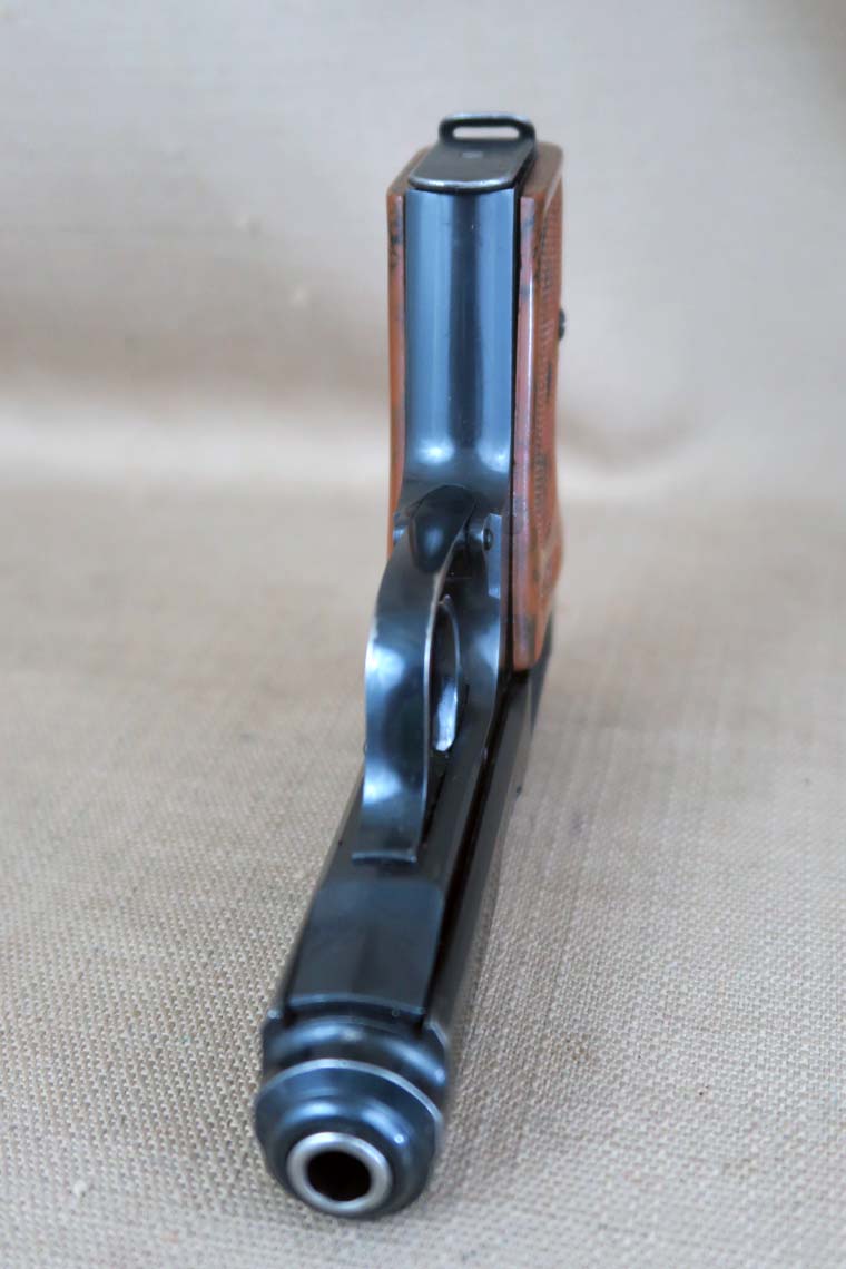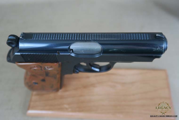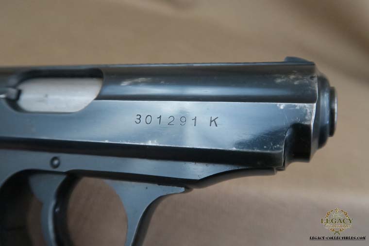 4/13/16 – This is a SS Walther PPK with a matching magazine from World War II. It is a Type 5 variation with the magazine numbered on the spine. The original finish is about 93-95% with most of the wear on the muzzle. Very nice front strap. All parts are matching including the magazine. Mirror bore. These SS pistols are getting harder and harder to find!